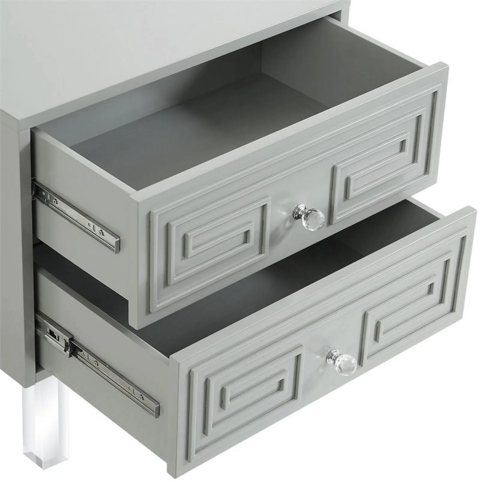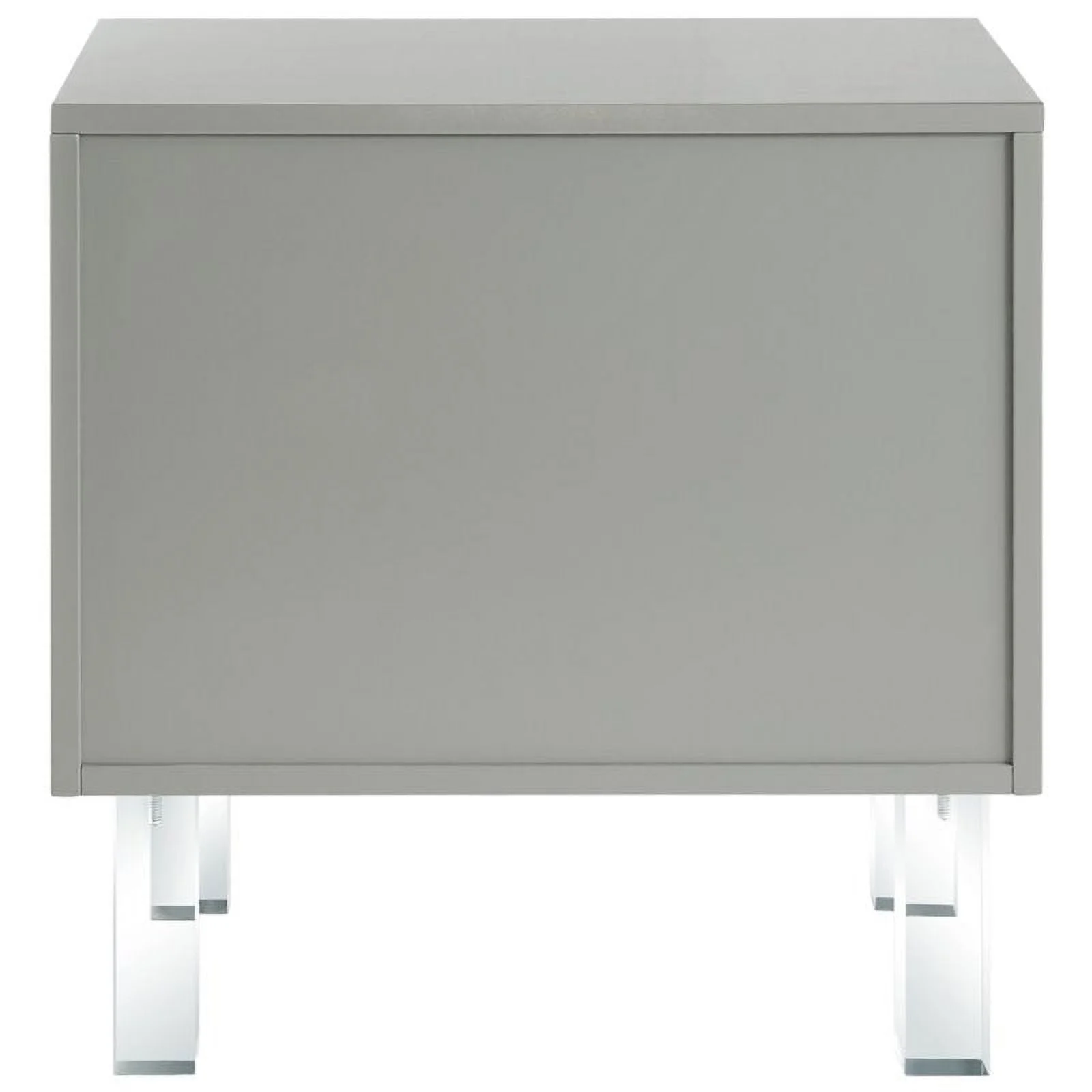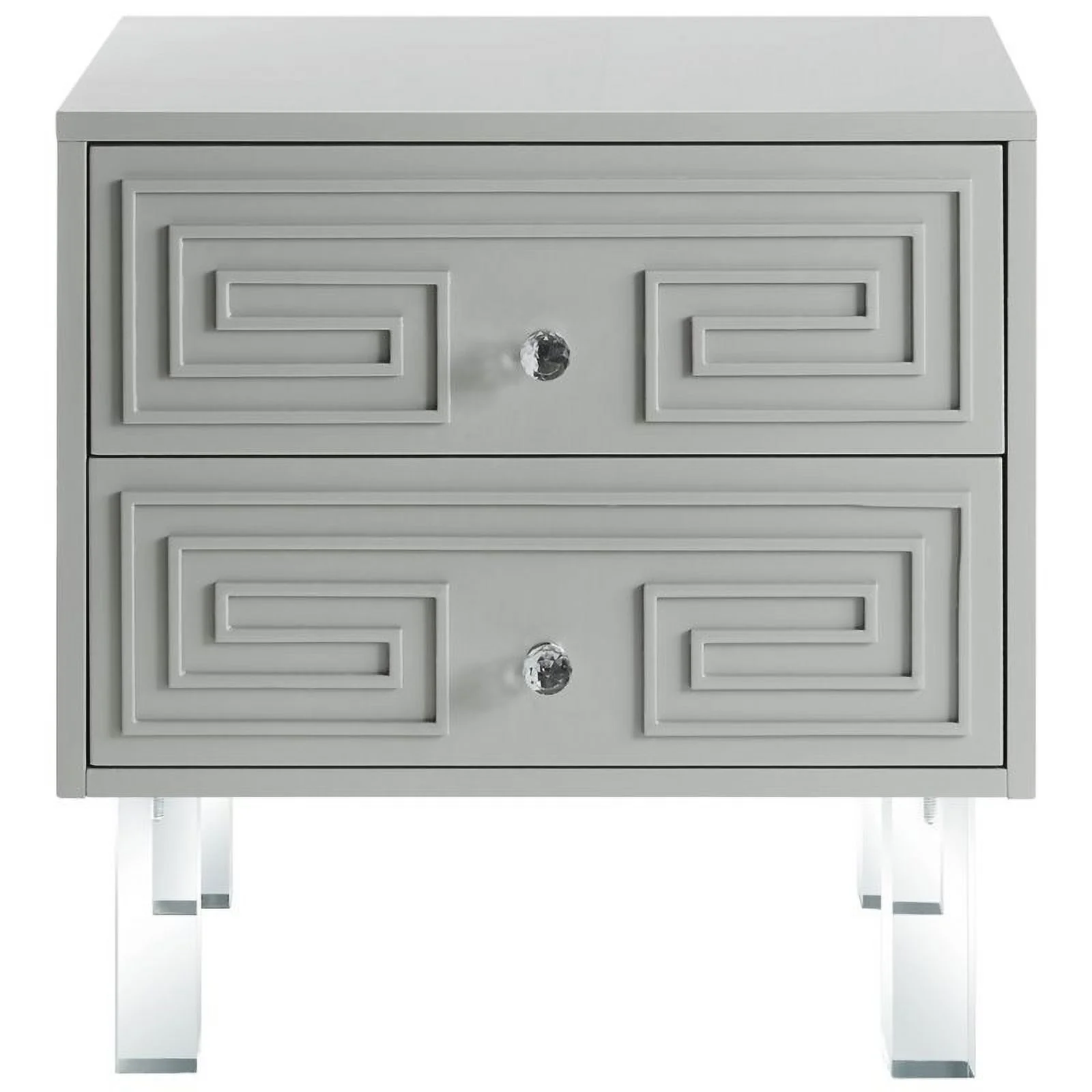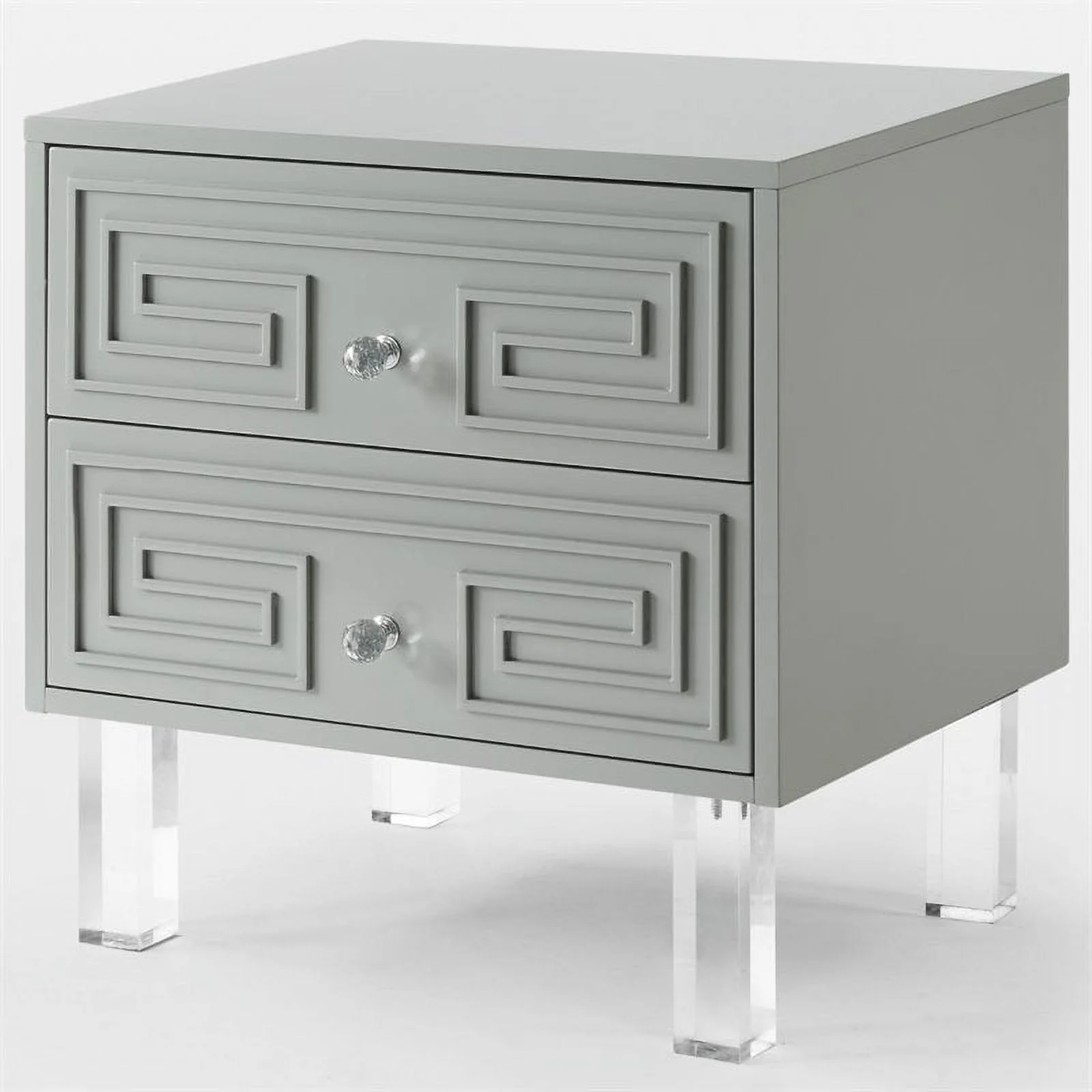 Posh Living Melanie MDF Wood Modern Greek Key Lacquer- Lucite Leg Side Table Accent Table & Nightstand - Light Grey