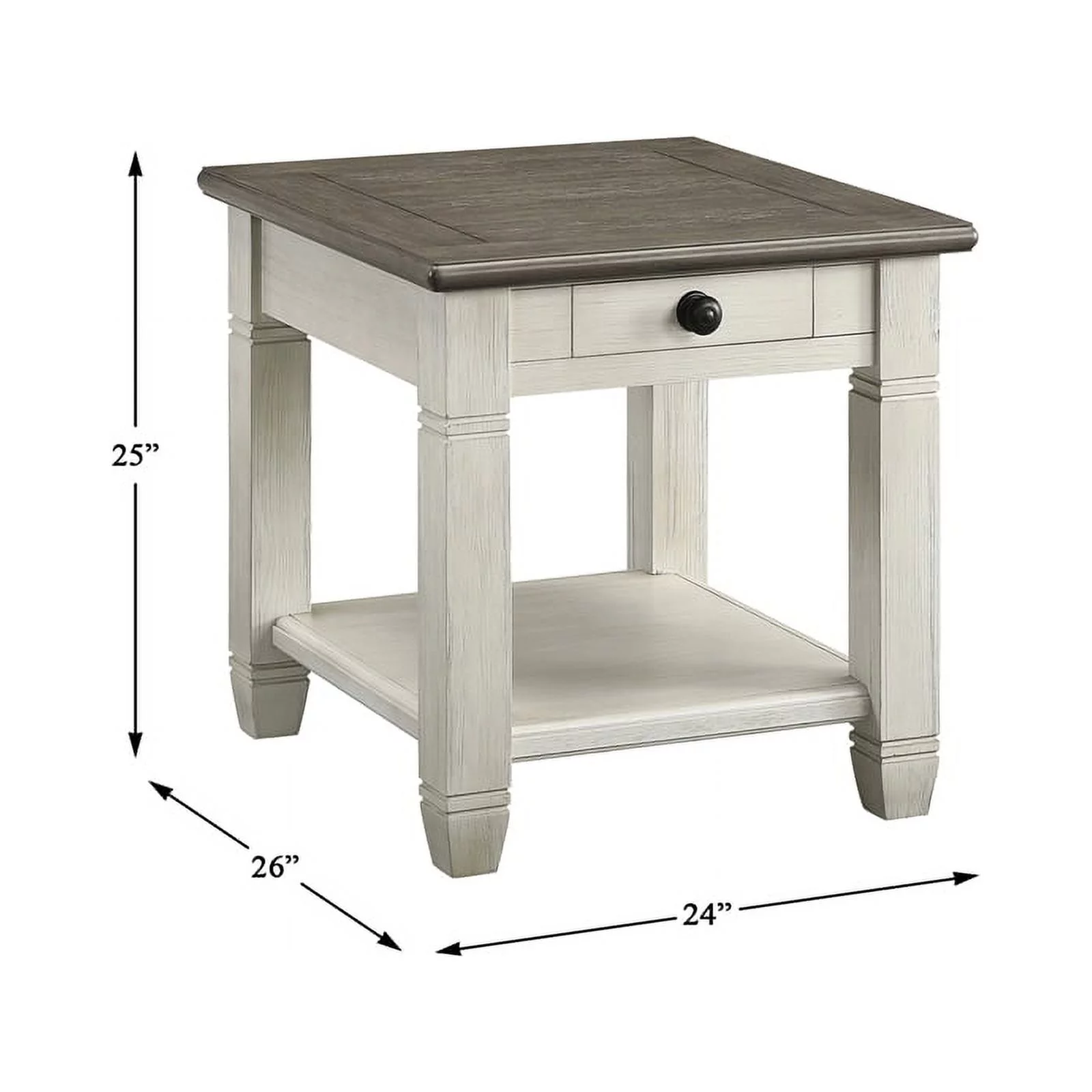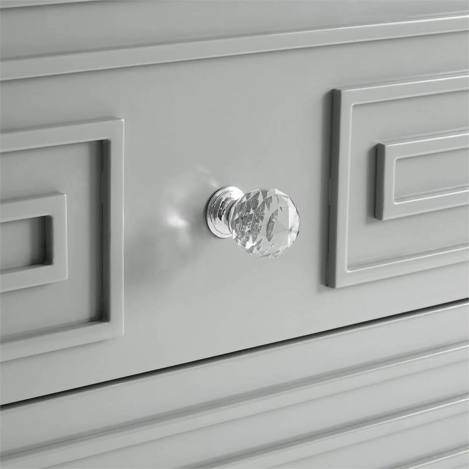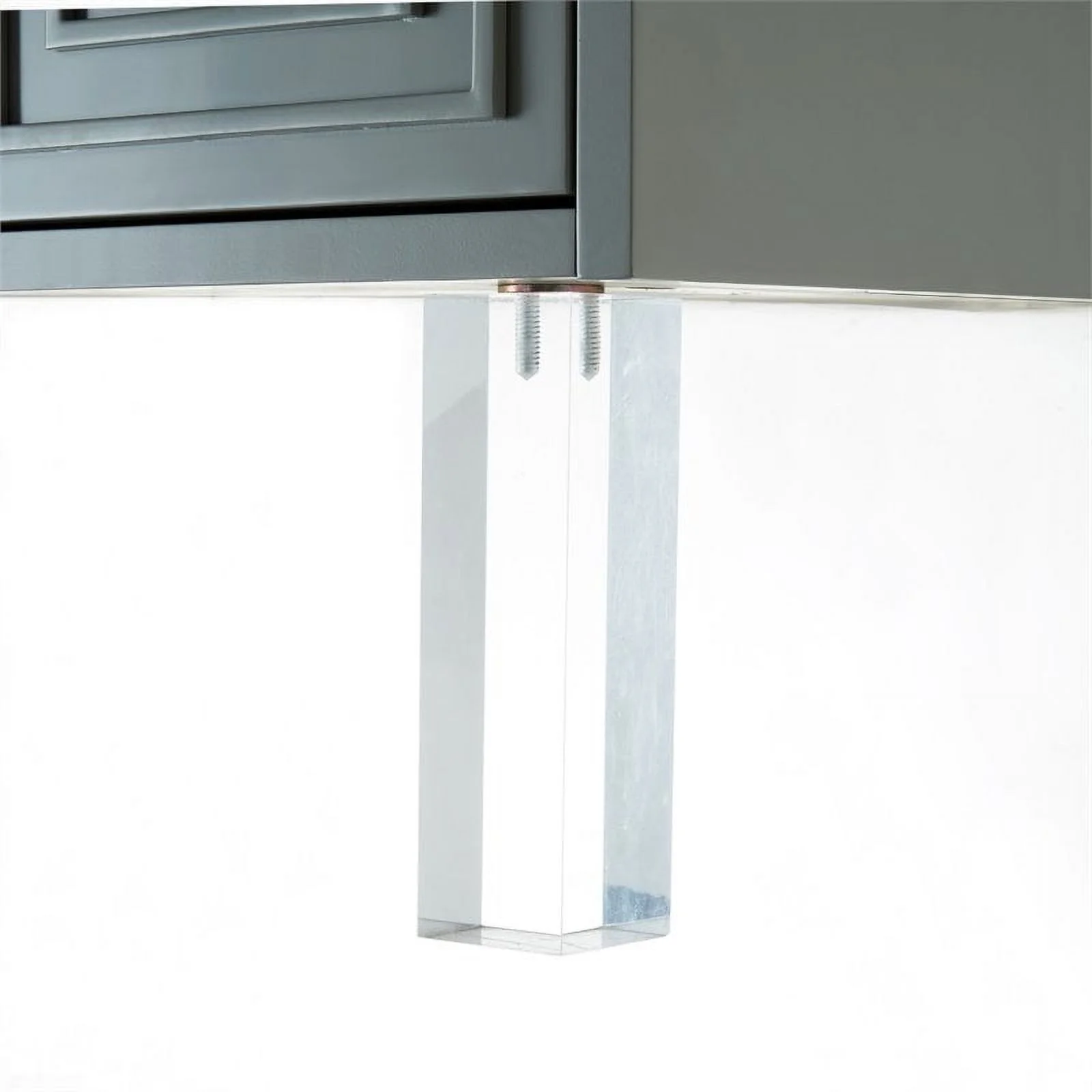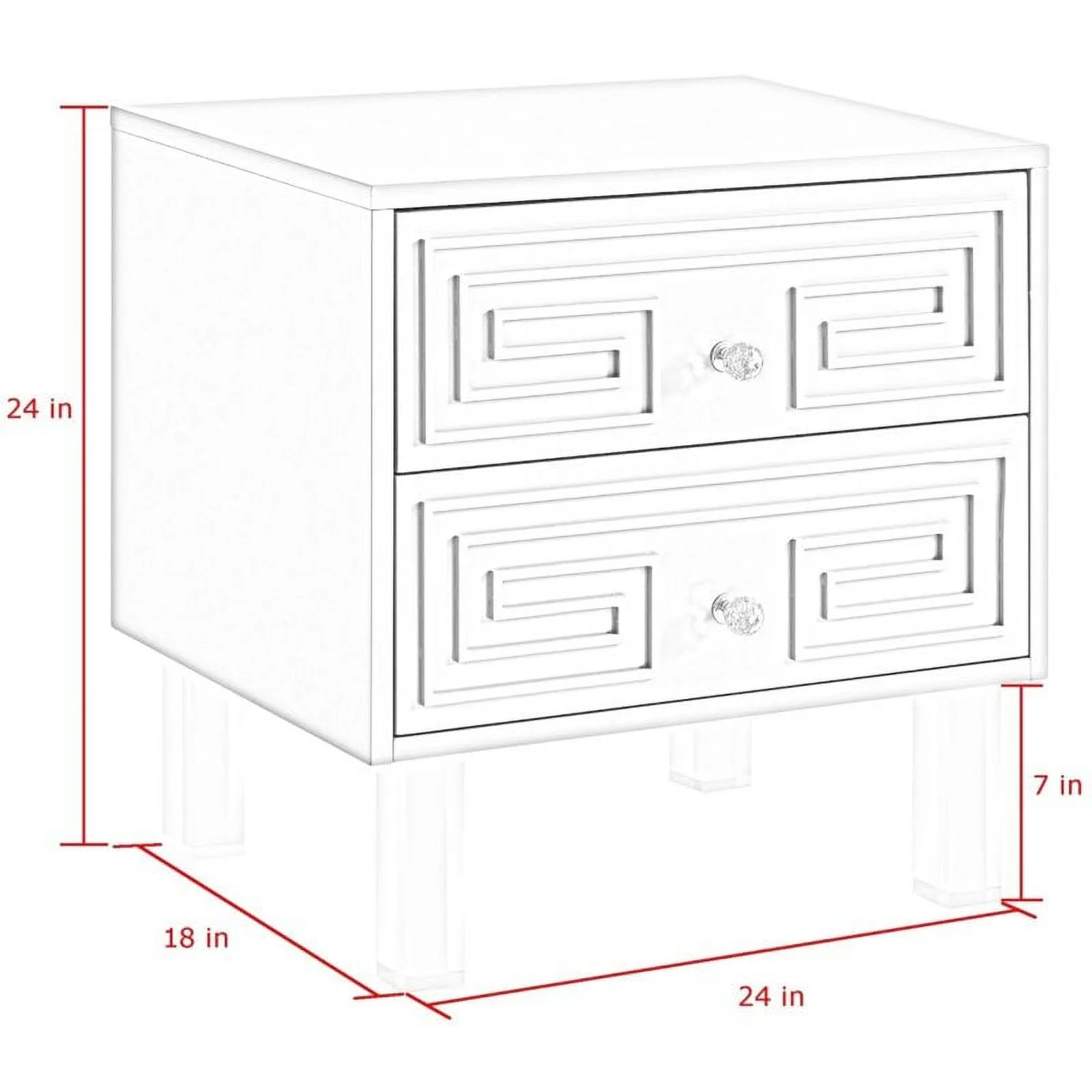 Posh Living Melanie MDF Wood Modern Greek Key Lacquer- Lucite Leg Side Table Accent Table & Nightstand - Light Grey