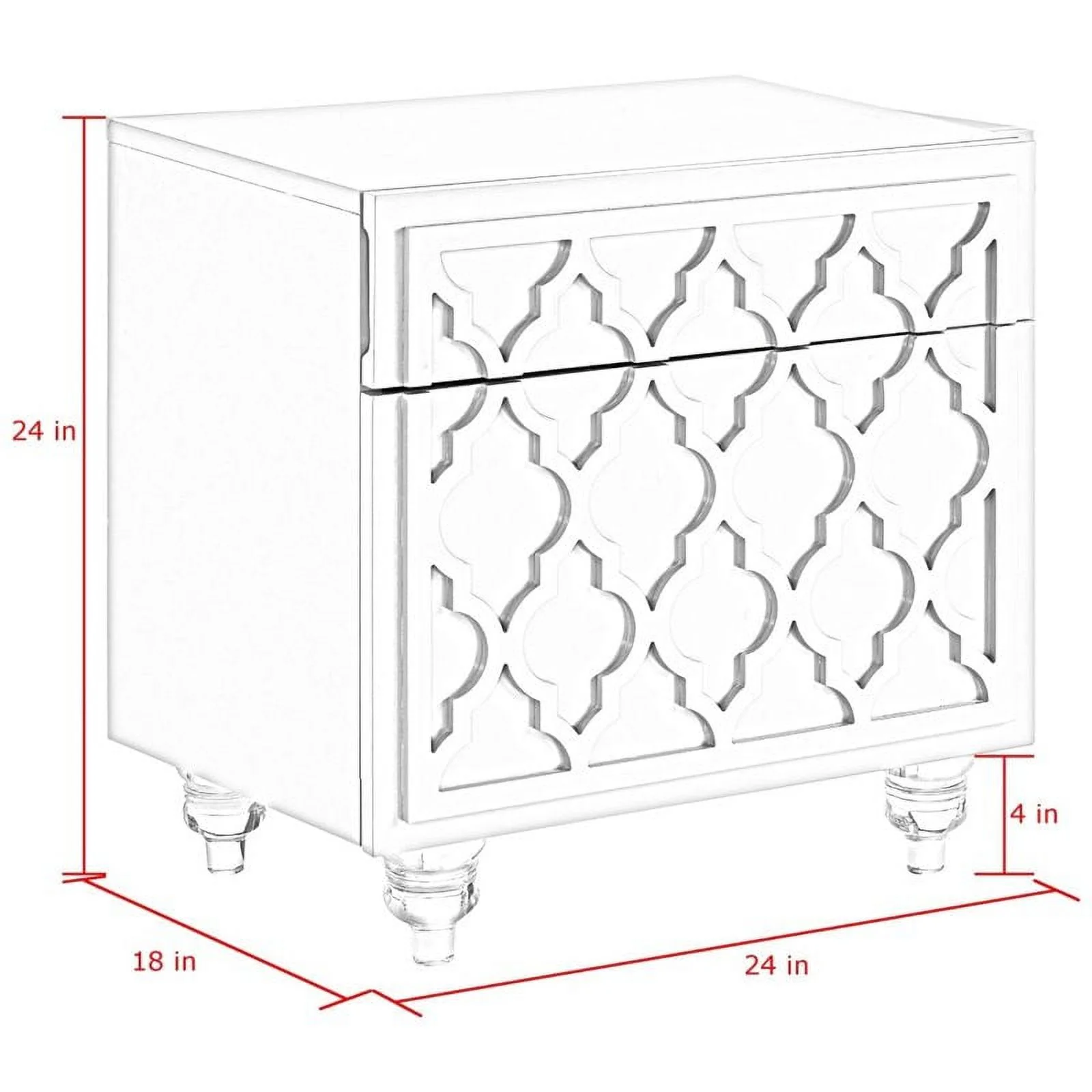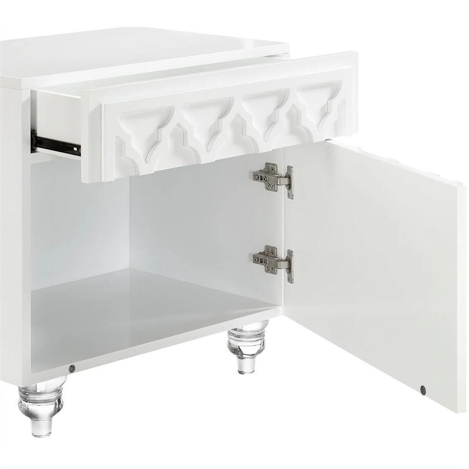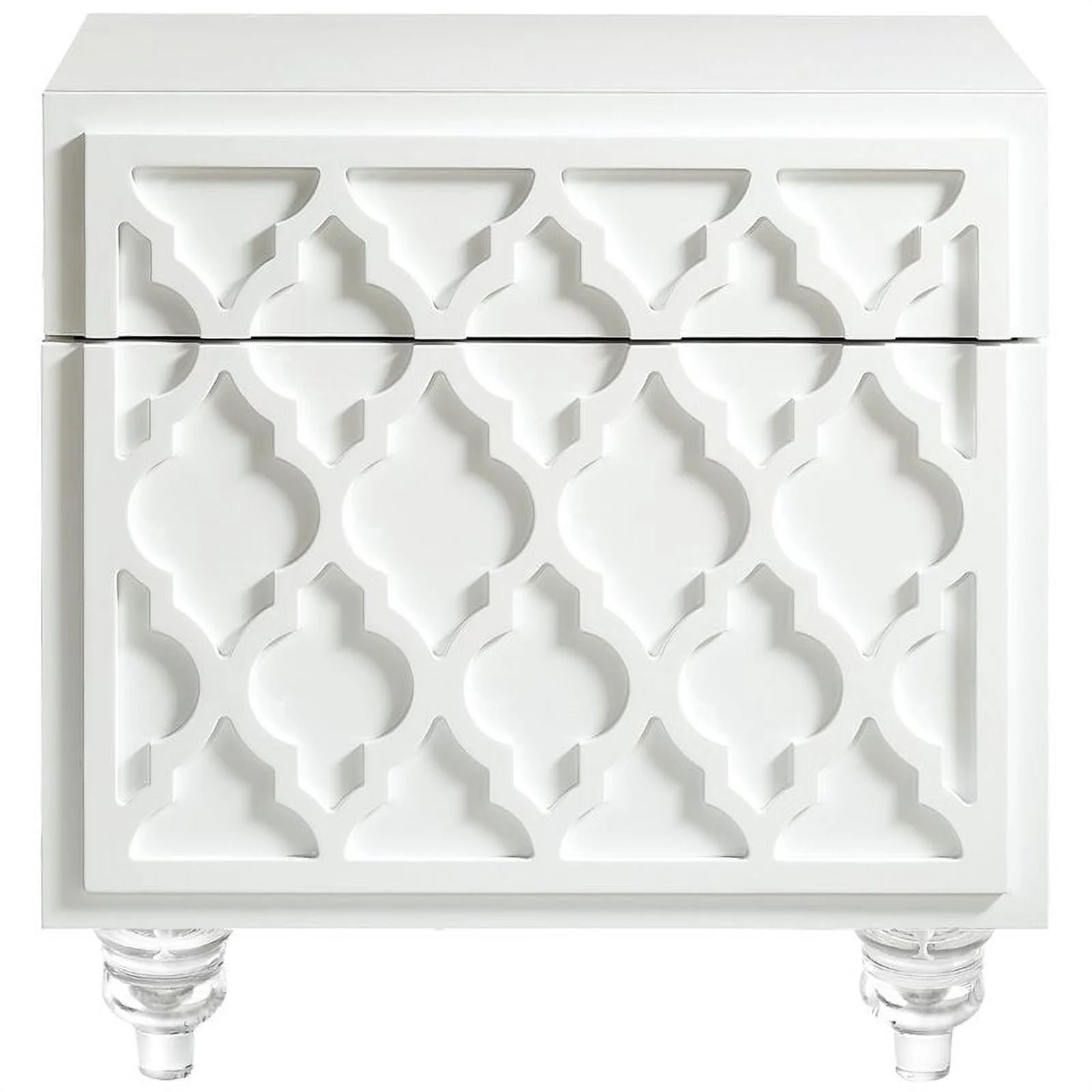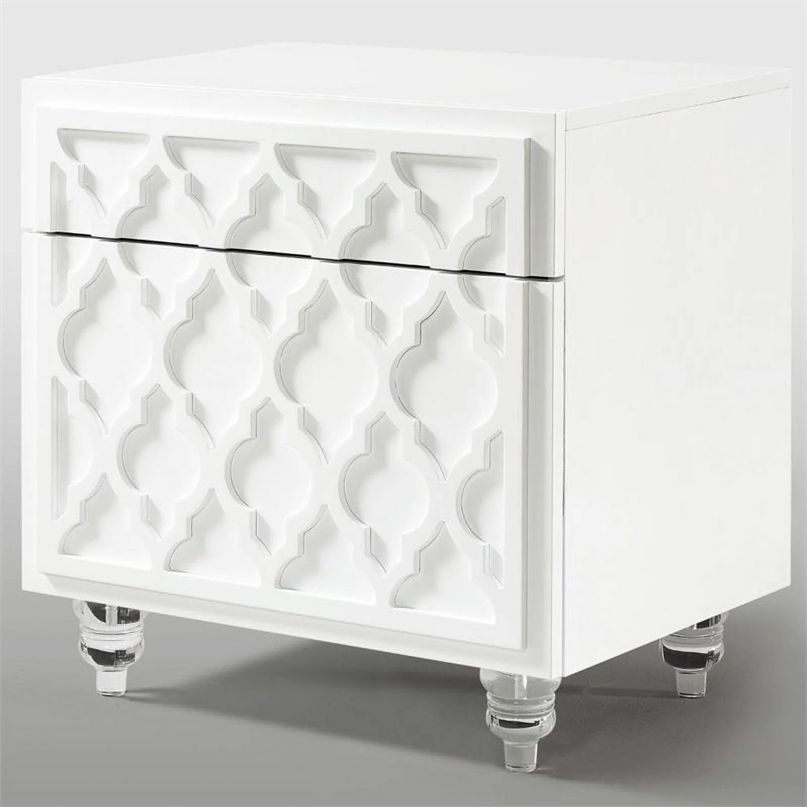 Posh Living Lydia MDF Wood Modern Trellis Lacquer Lucite Leg Side Table Accent Table & Nightstand - White