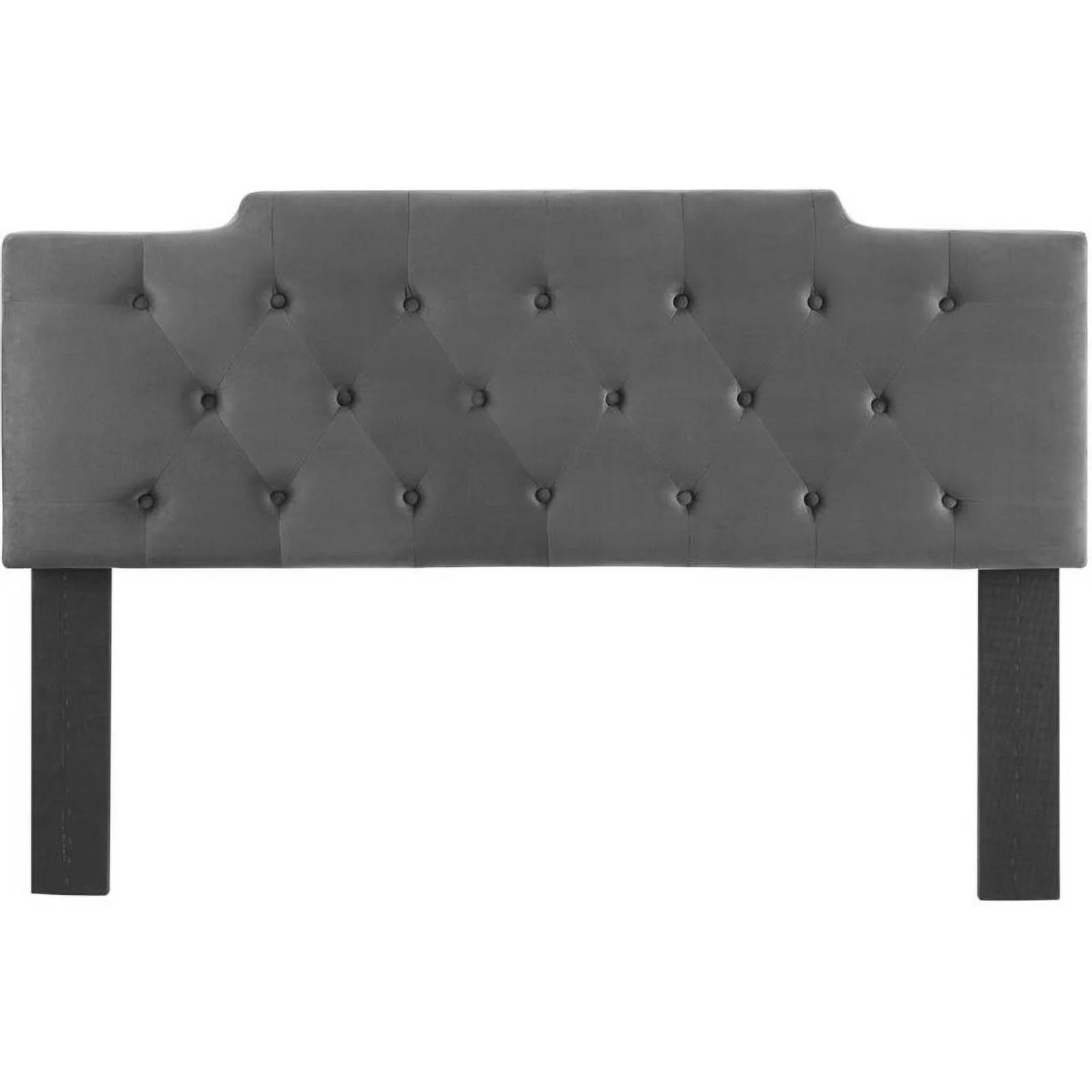 Pemberly Row Modern Velvet Tufted Full/Queen Performance Headboard in Charcoal