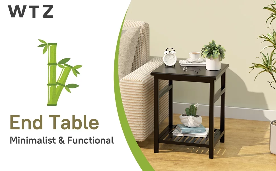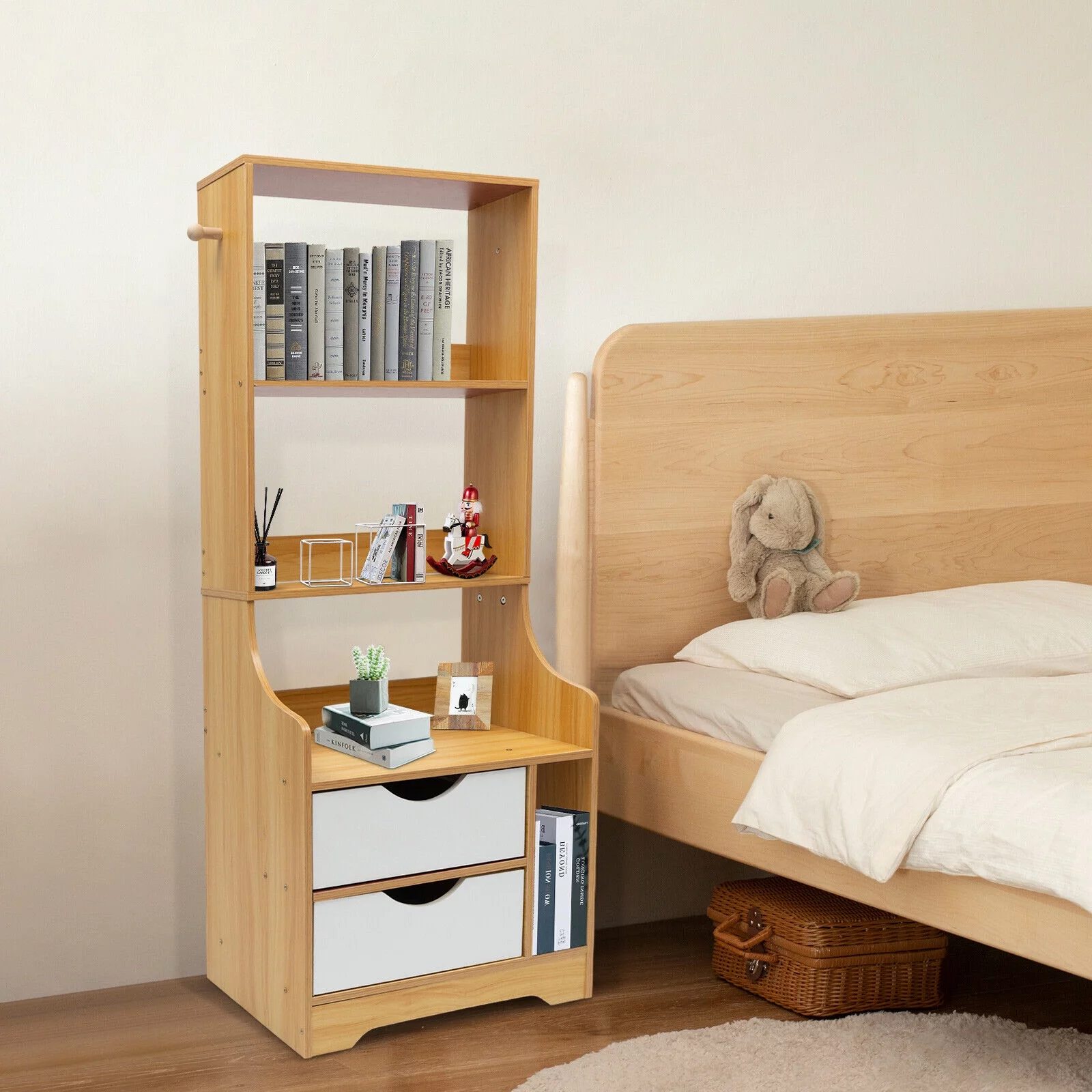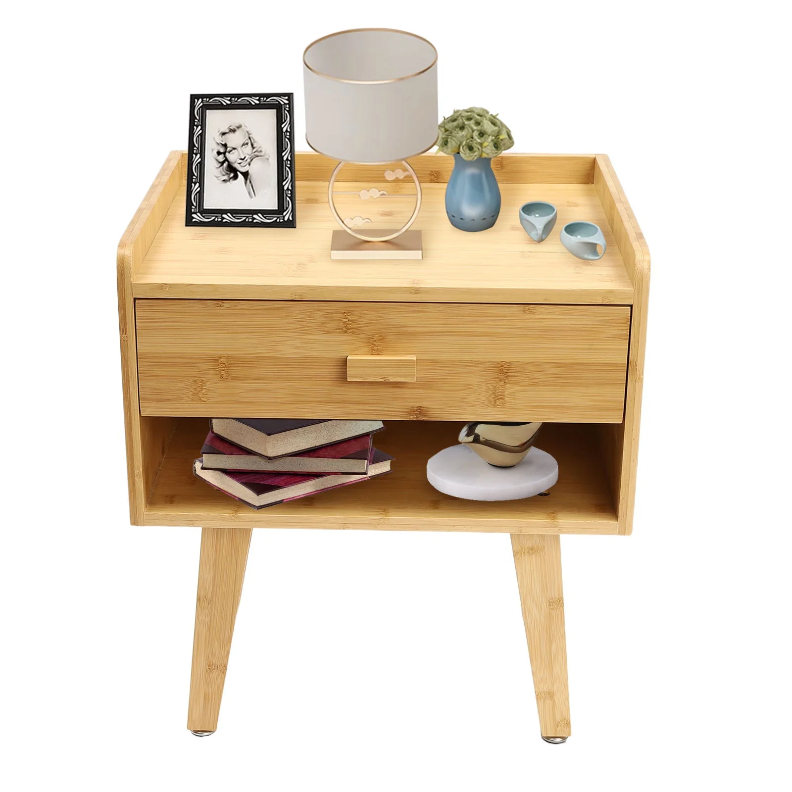 YIYIBYUS Bamboo Nightstand Sofa Table End Table with Storage Drawer and Open Shelf
