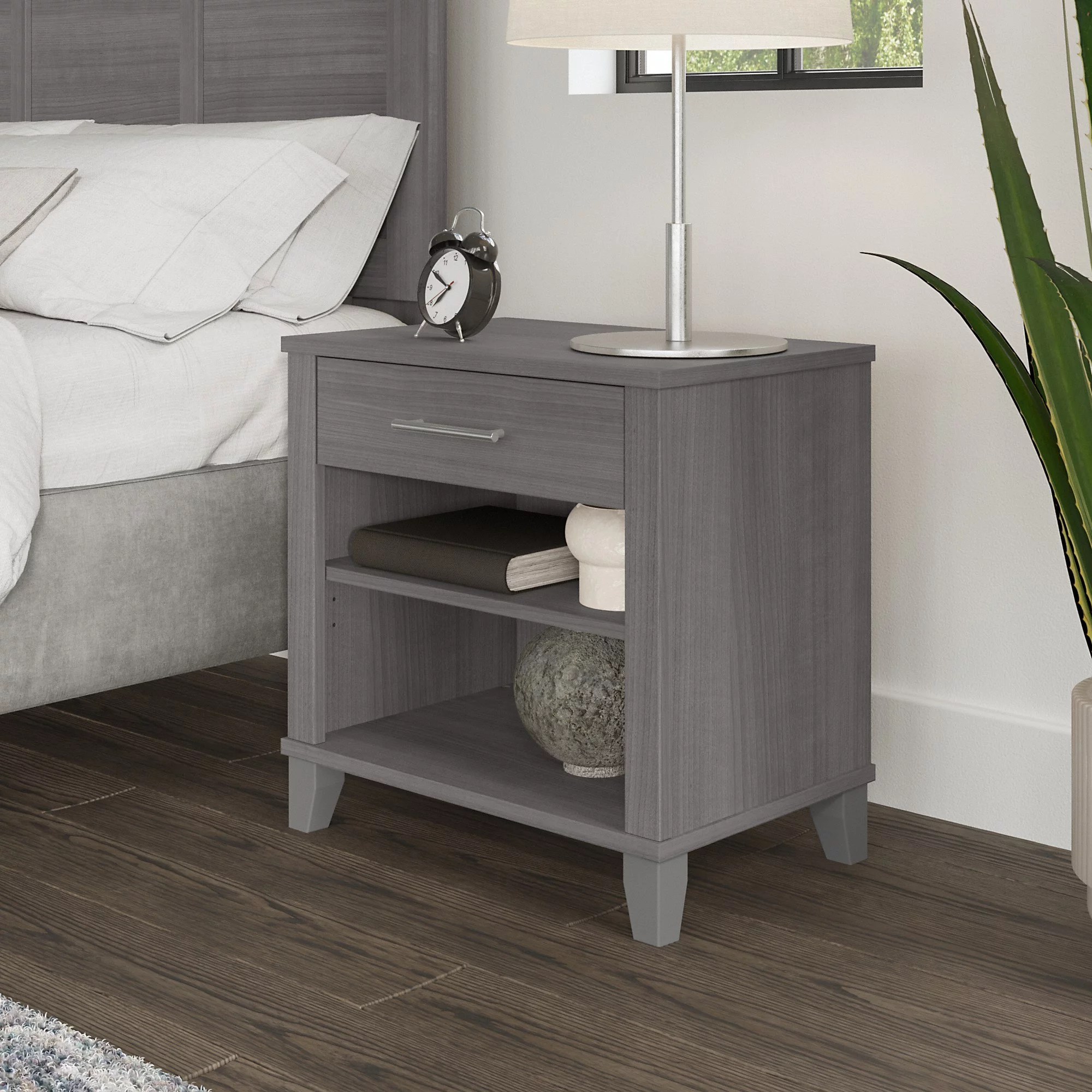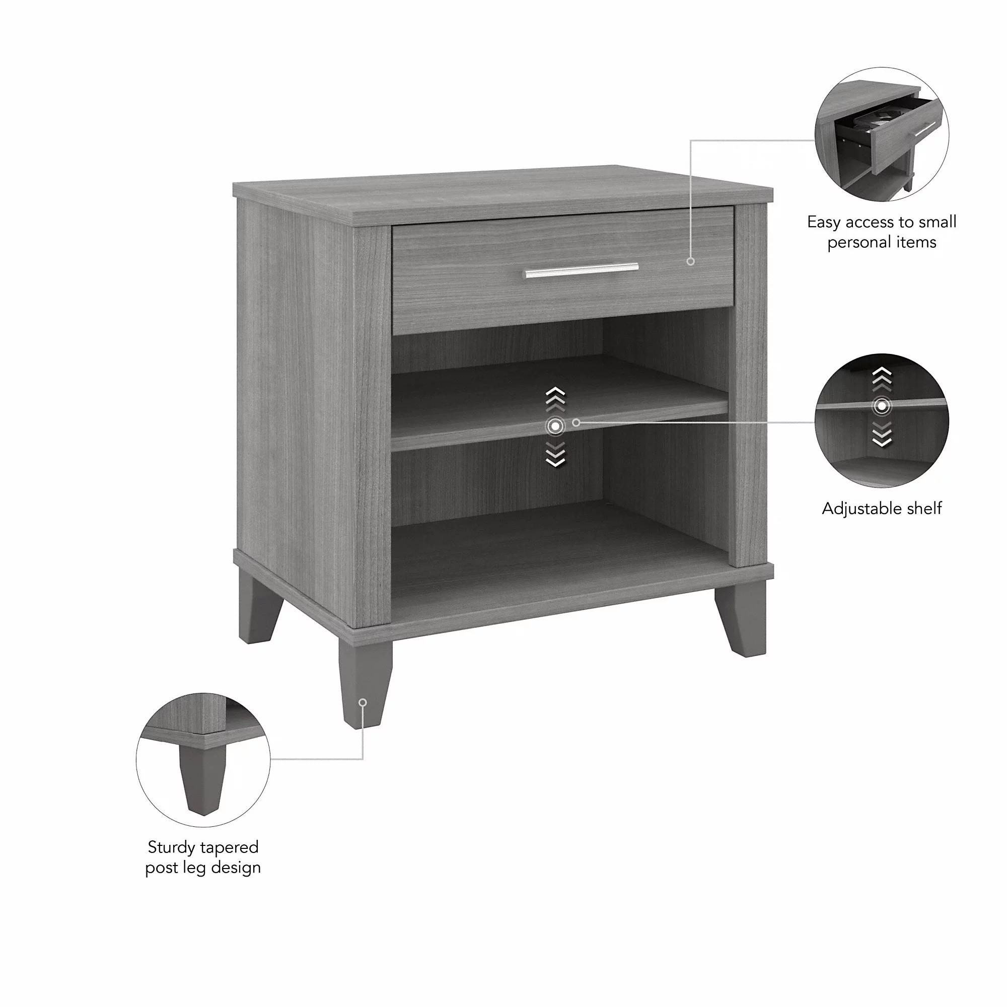 Bush Furniture Somerset Nightstand with Drawer and Shelves in Platinum Gray