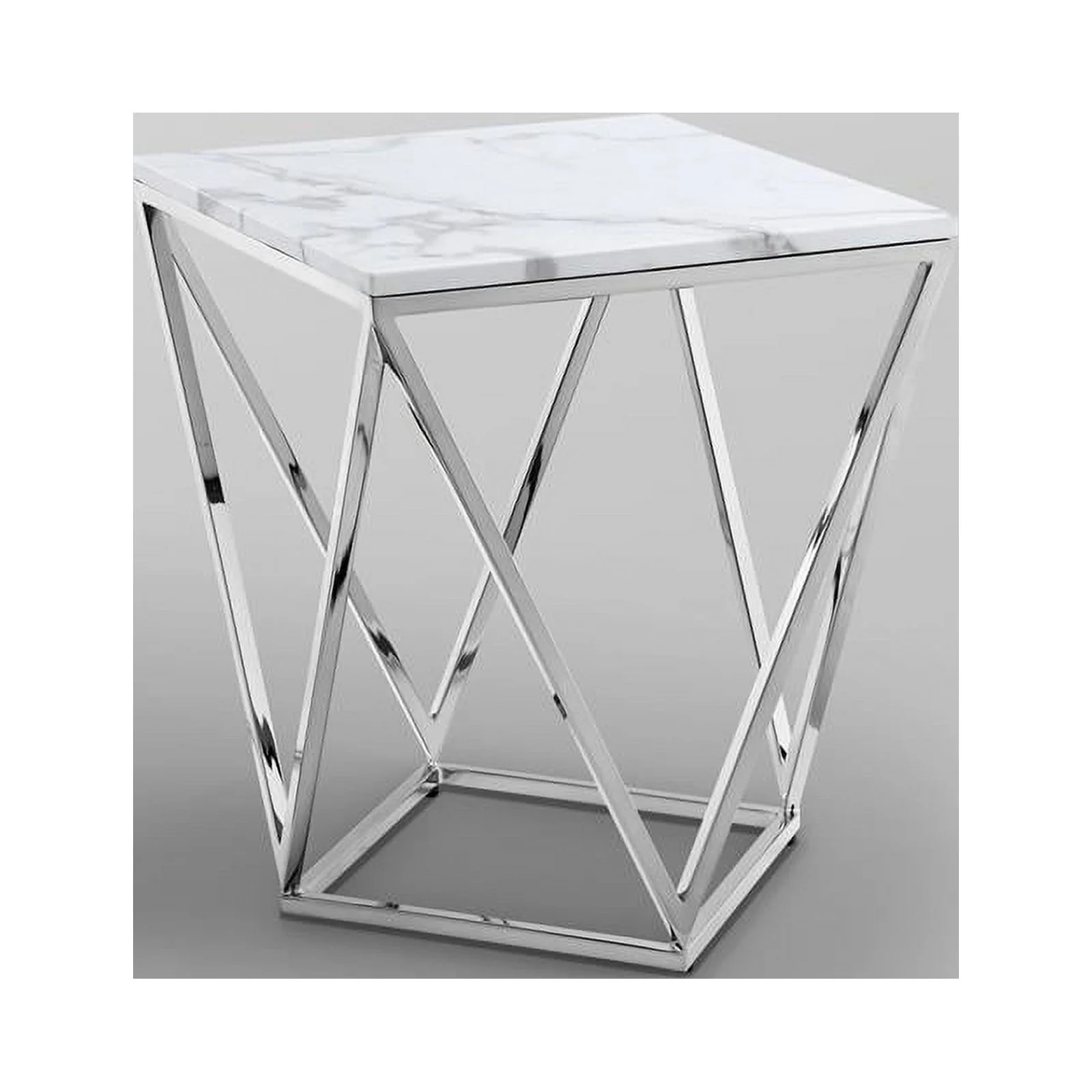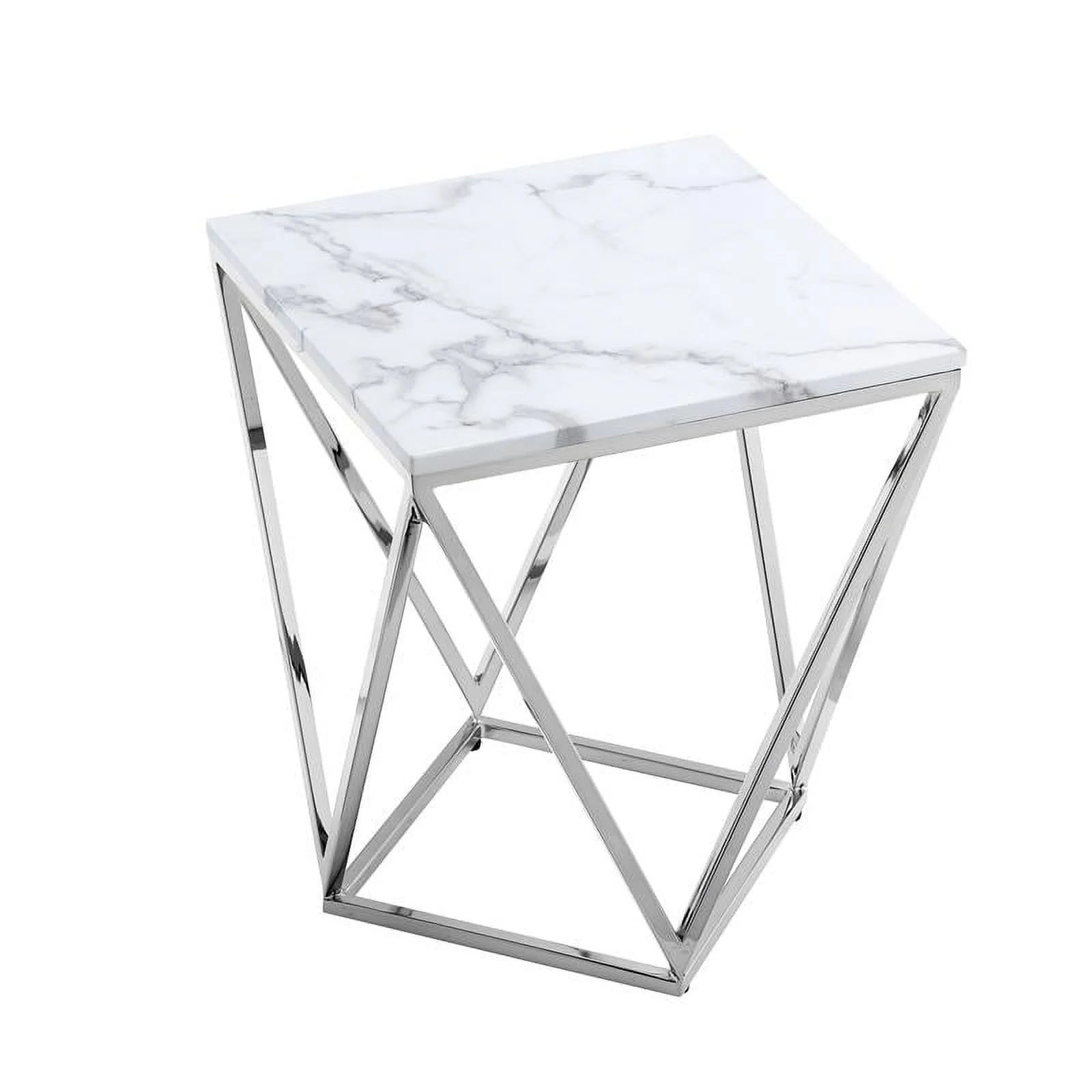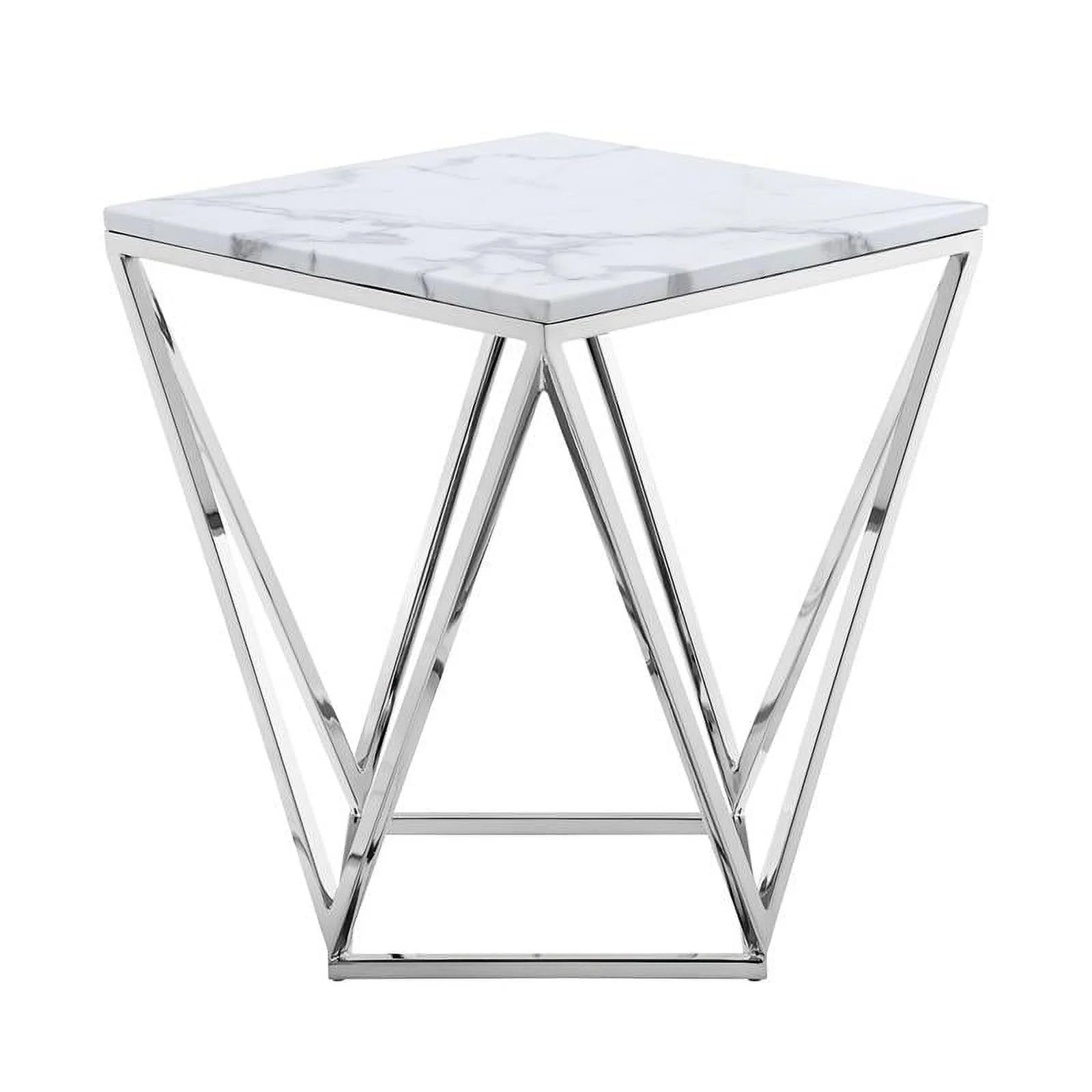 Posh Living Eason Marble Top End Table with Metal Base in White/Chrome