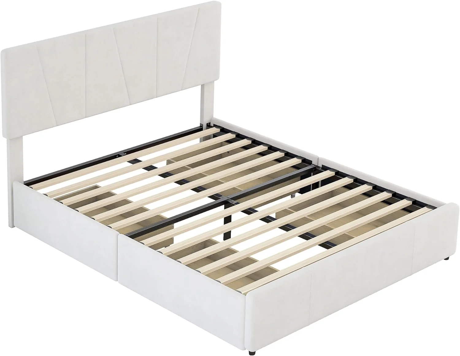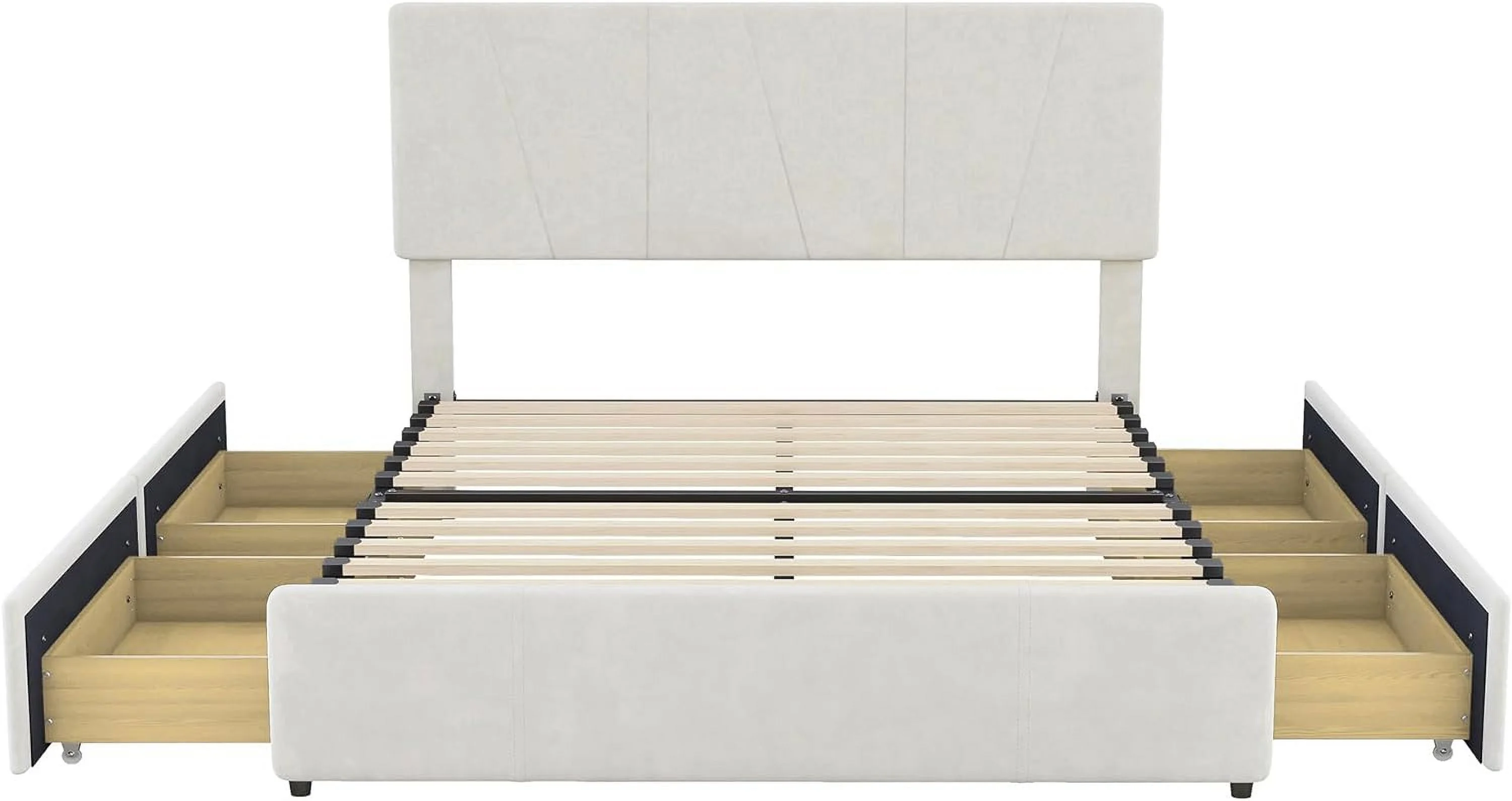 Queen Size Upholstery Platform Bed with Four Drawers on Two Sides, Adjustable Headboard, Beige(Old SKU: WF291774AAA)