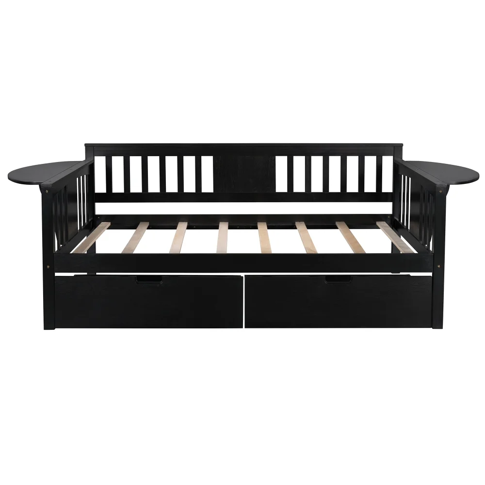 Teledu Twin Size Daybed With Two Drawers, Wood Slat Support, Espresso Plywood 79.50in