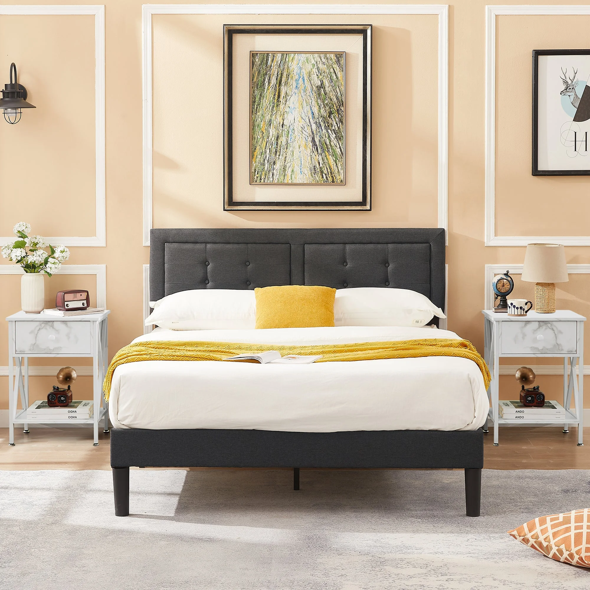 VECELO 3-Piece Full Bedroom Sets, Upholstered Platform Bed Frame with Adjustable Headboard and 2 Nightstands, Gray+White