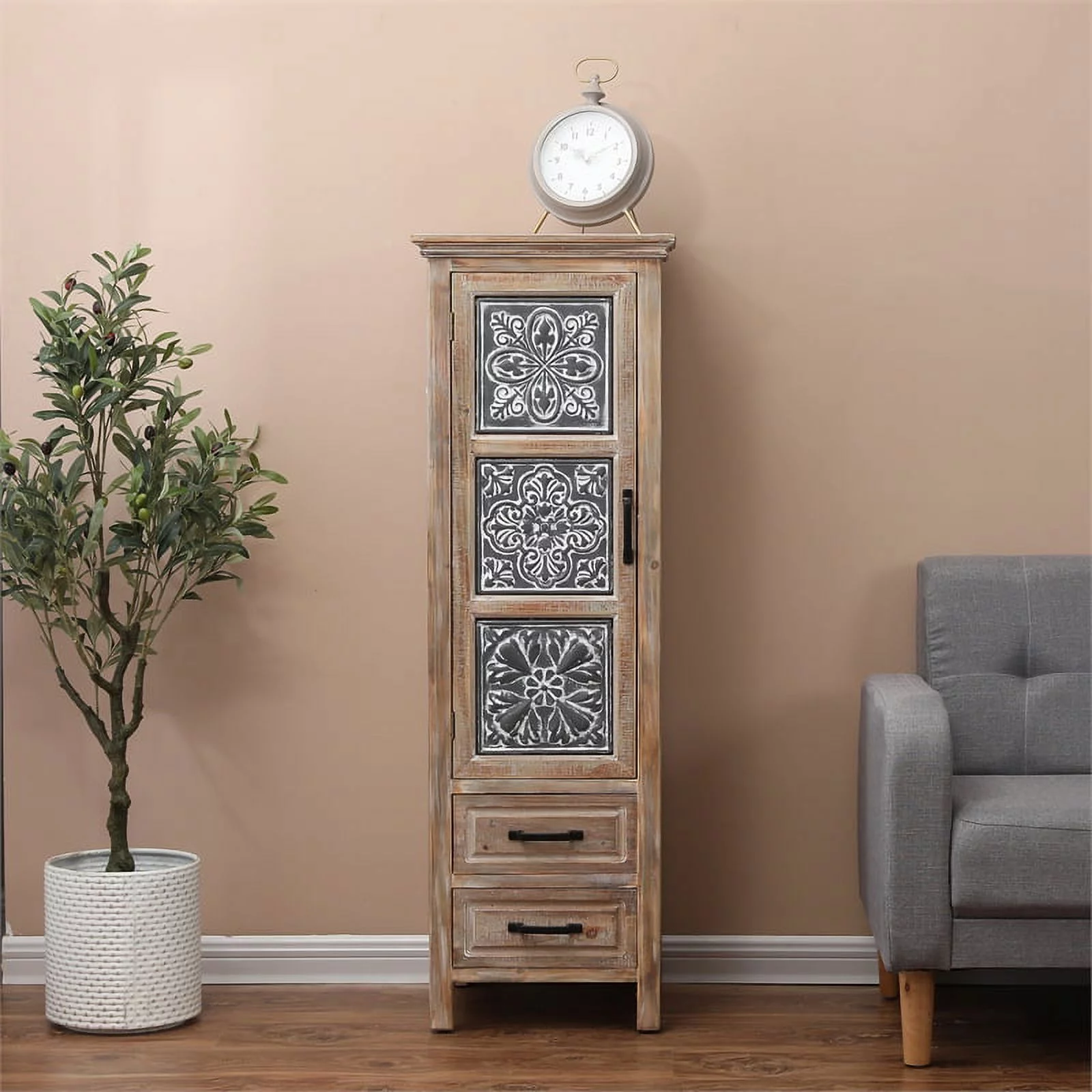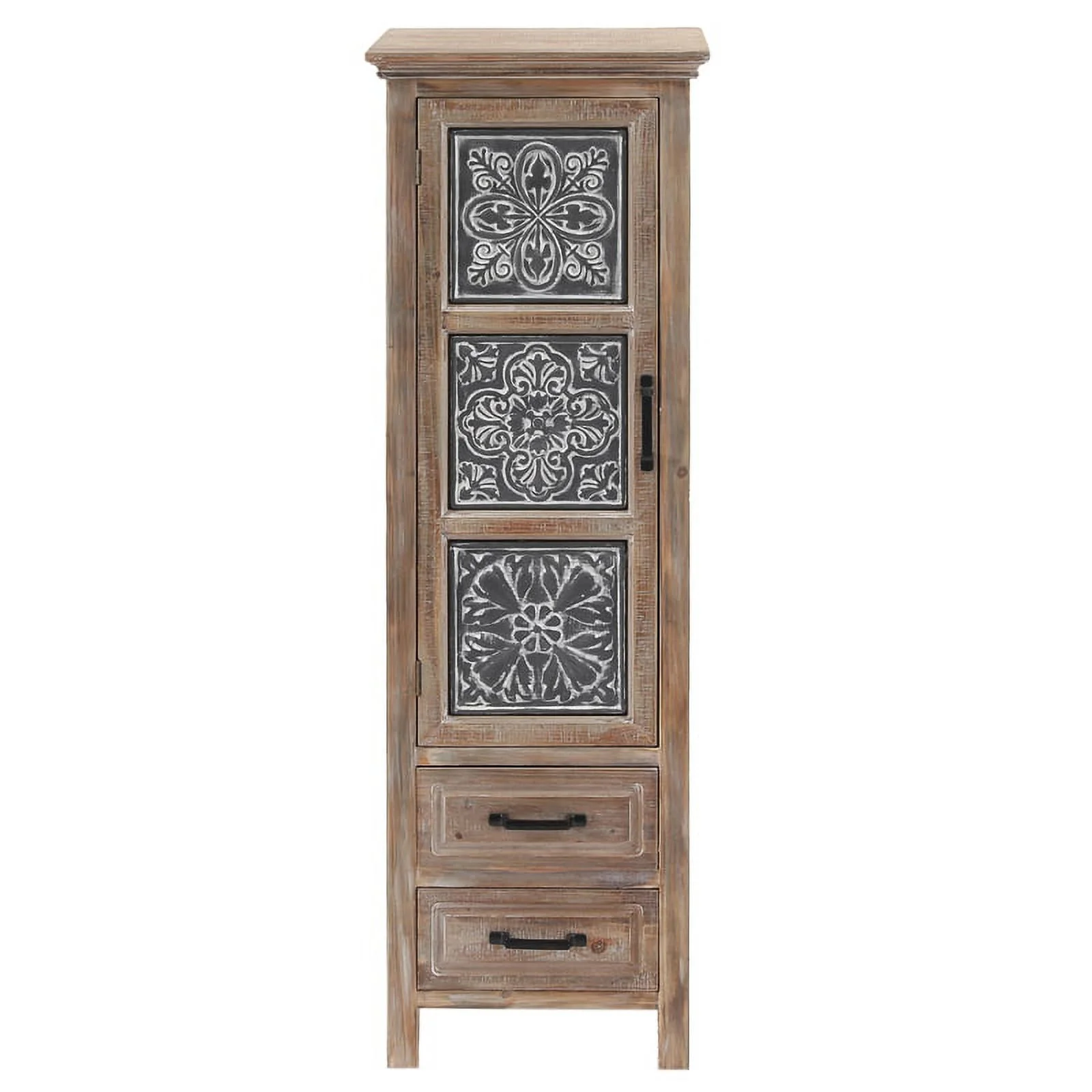 Home Square 2 Drawer Wood Tall Tower Cabinet Set in Brown (Set of 2)