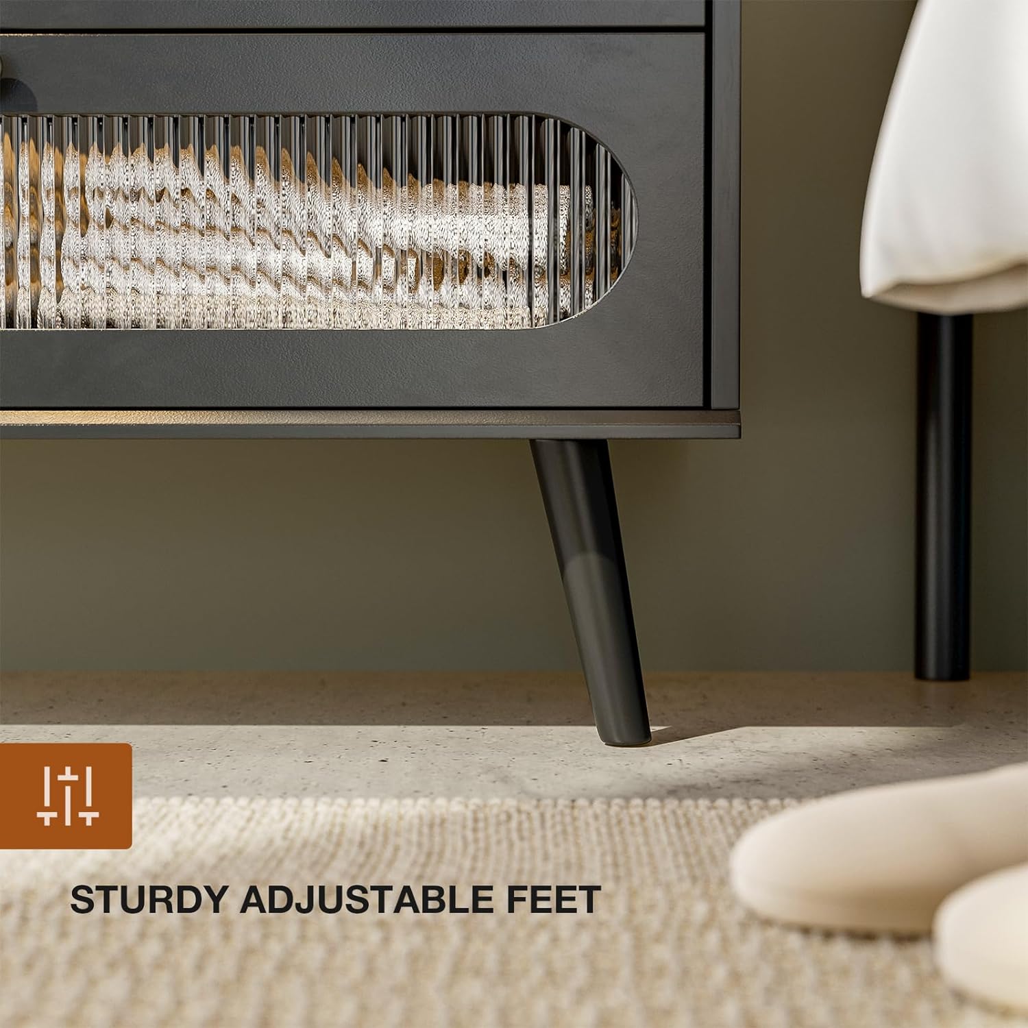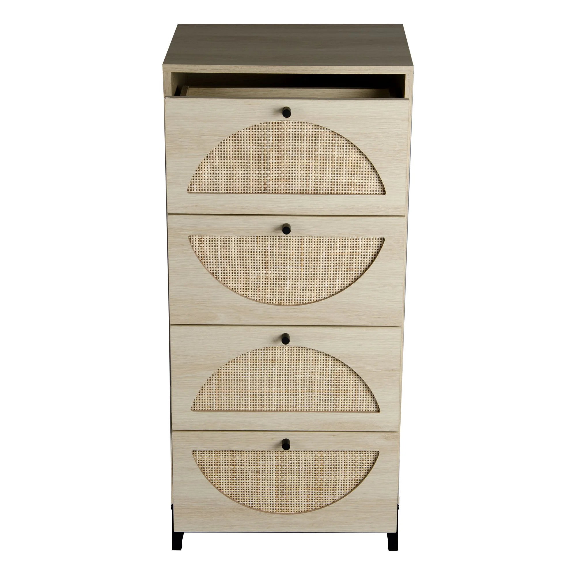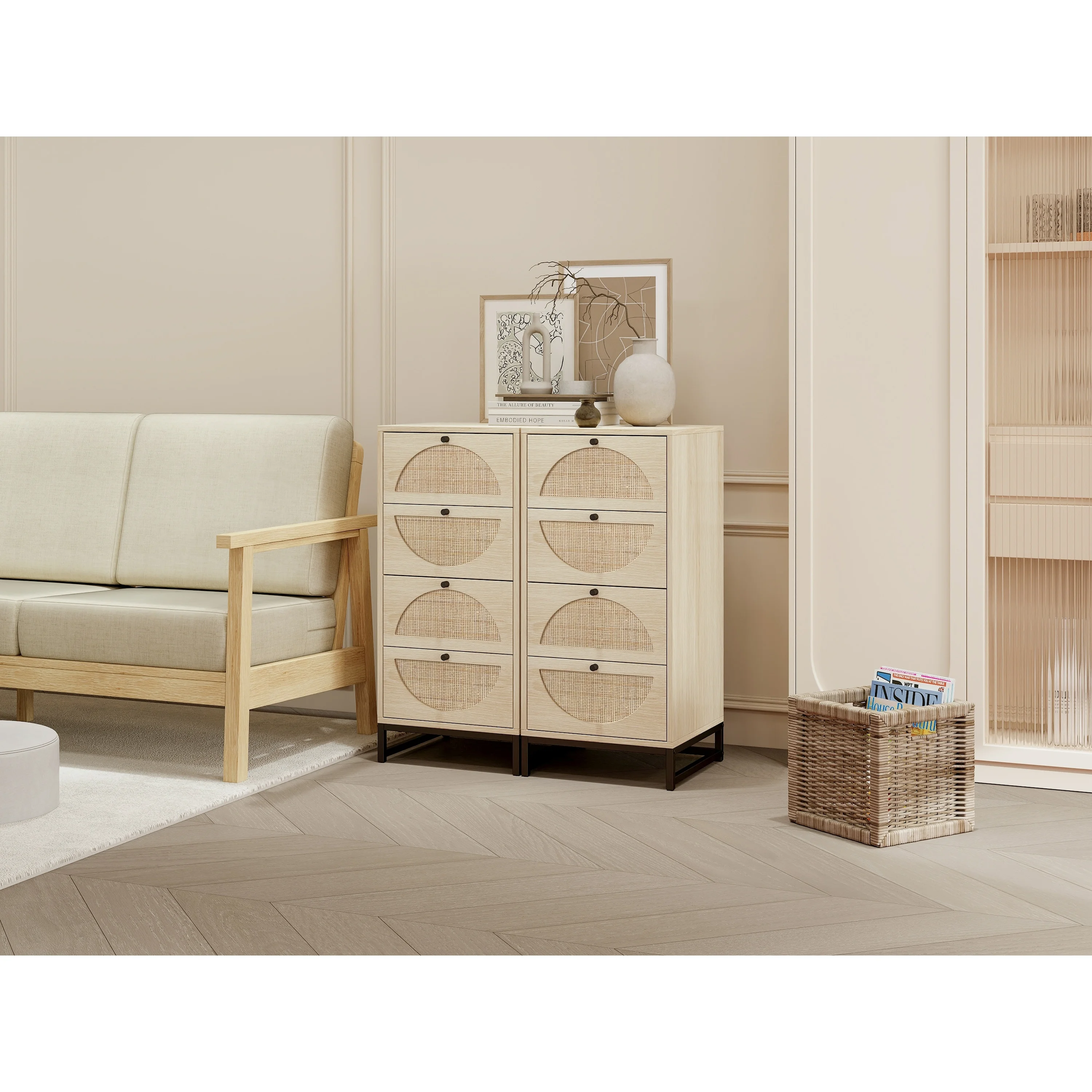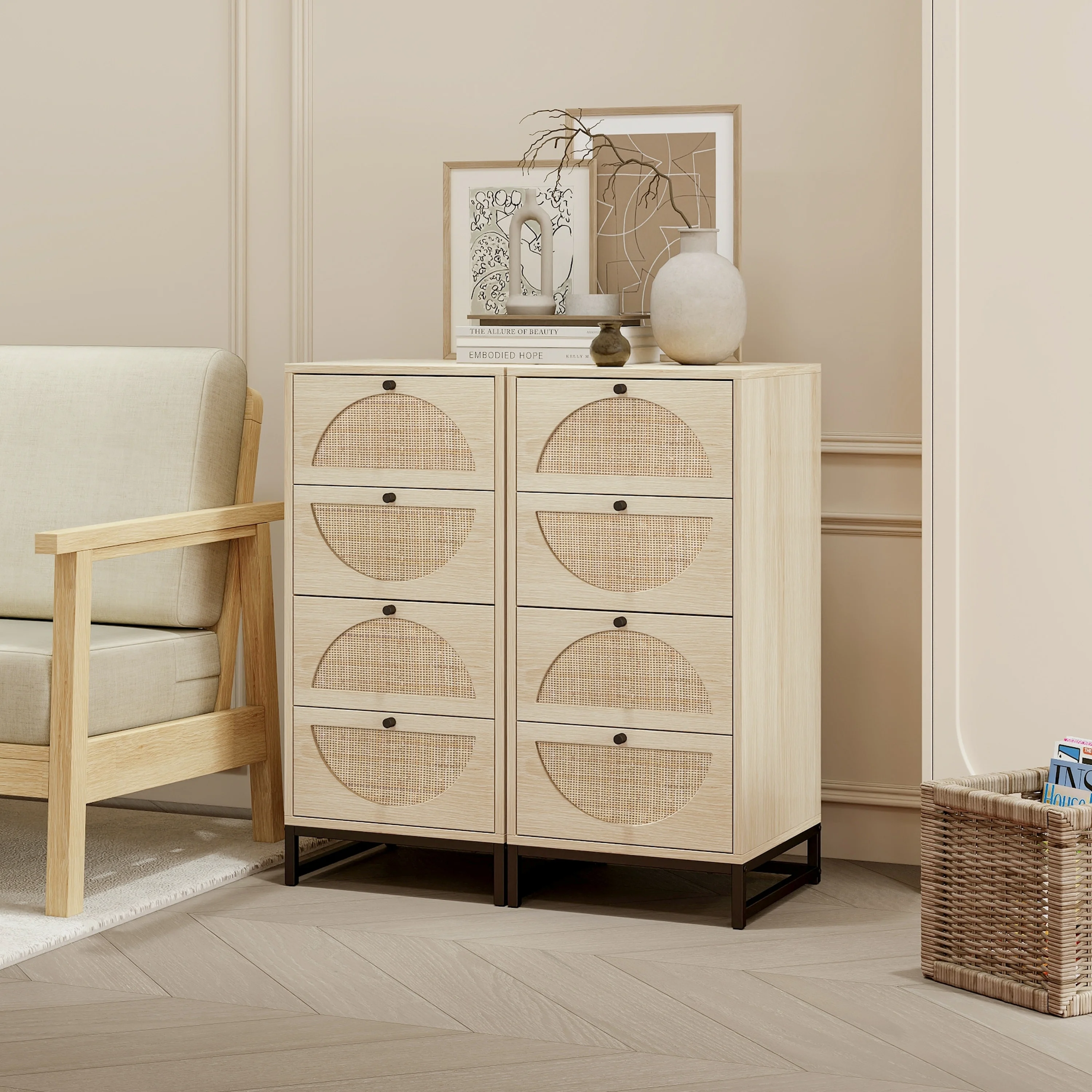 CoSoTower Set of 2, Natural Rattan, Cabinet with 4 Drawers, Suitable for Living Room, Bedroom and Study, Diversified Storage