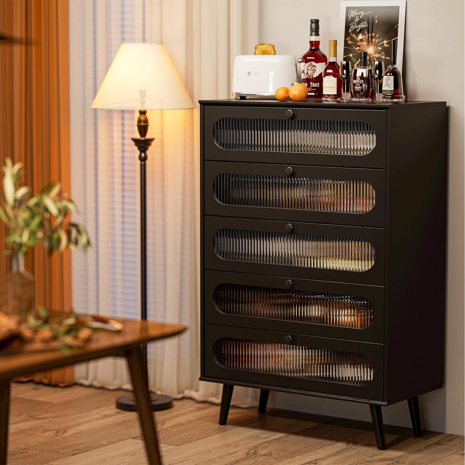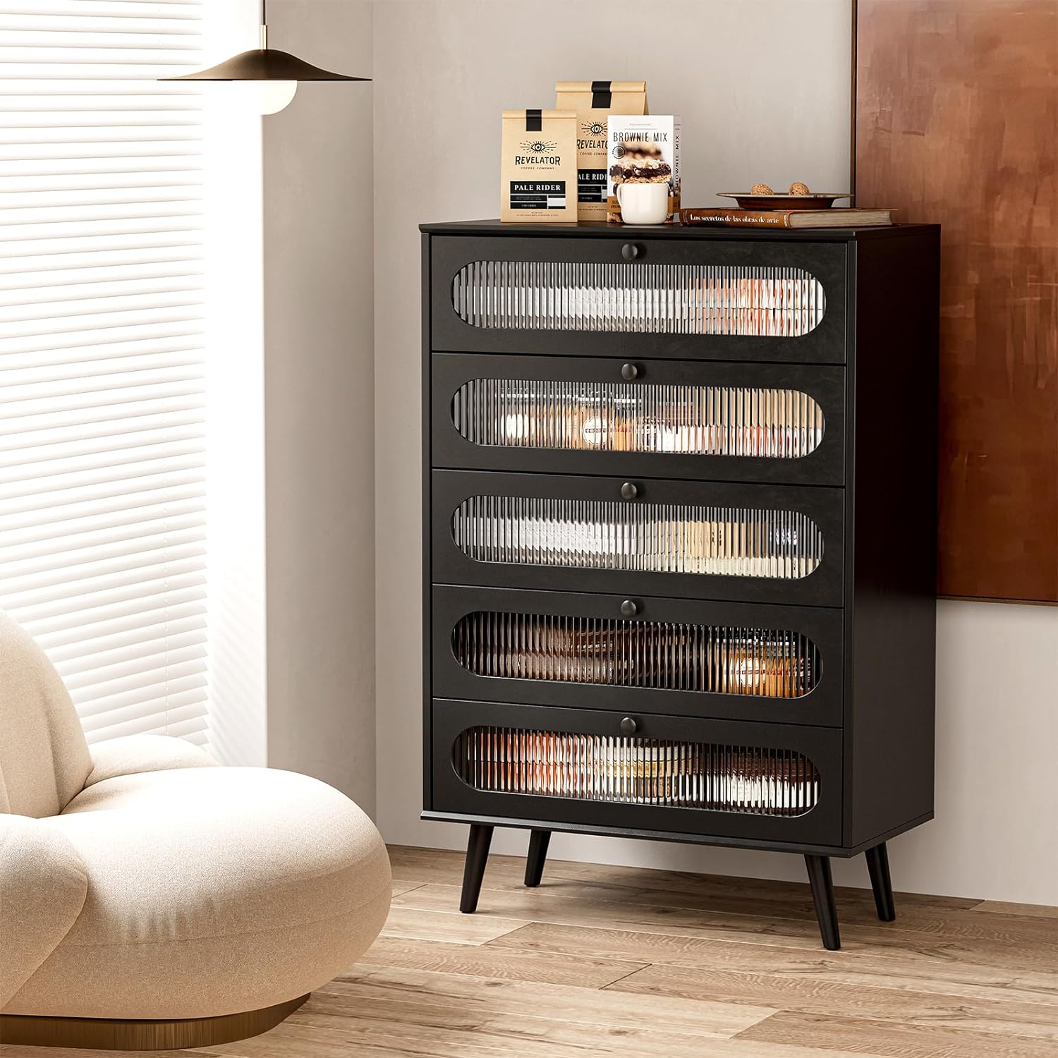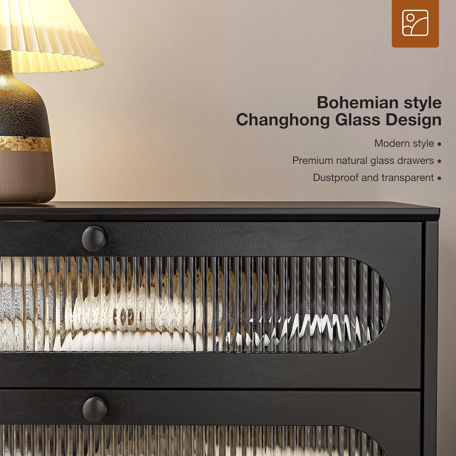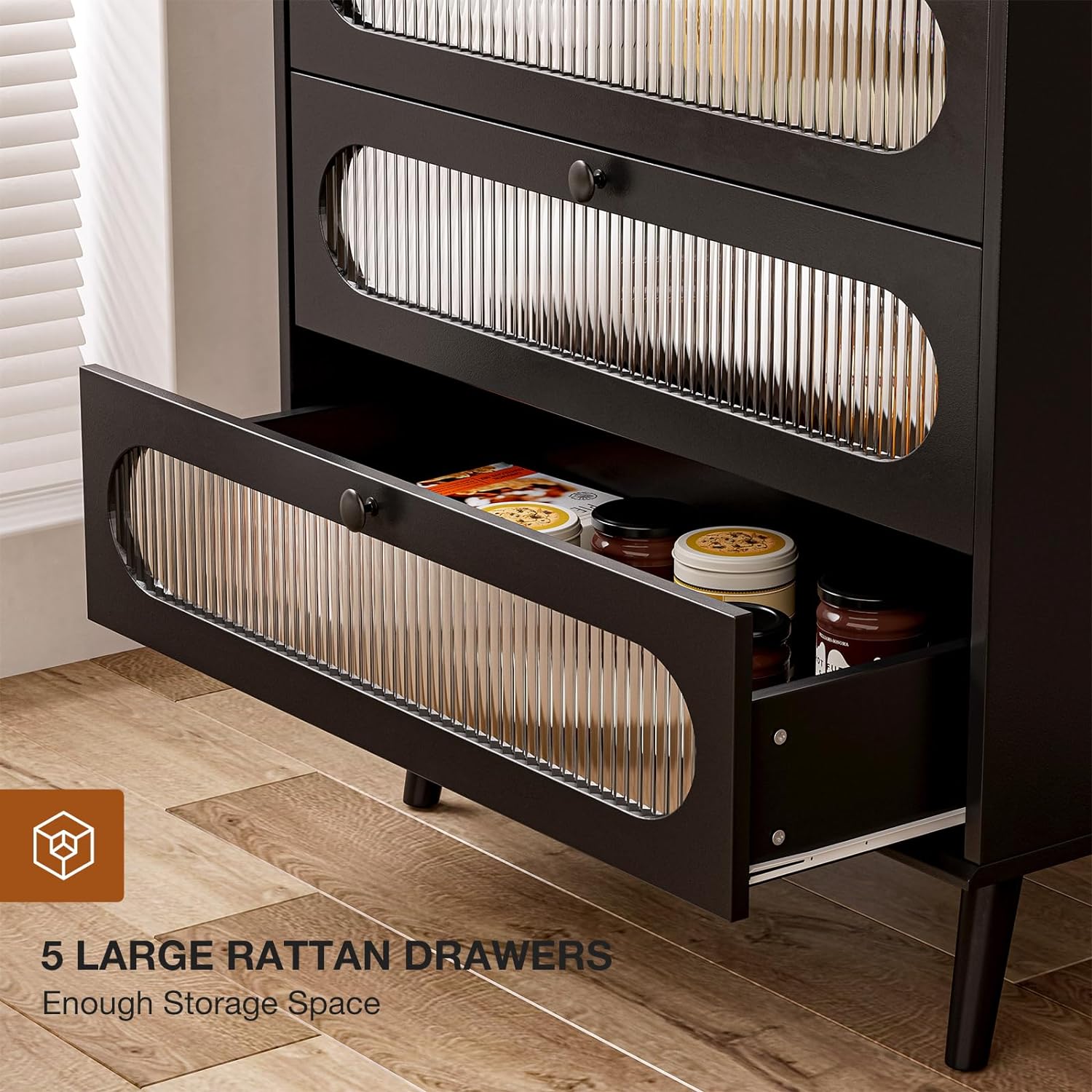 CoSoTower Set of 2, Natural Rattan, Cabinet with 4 Drawers, Suitable for Living Room, Bedroom and Study, Diversified Storage