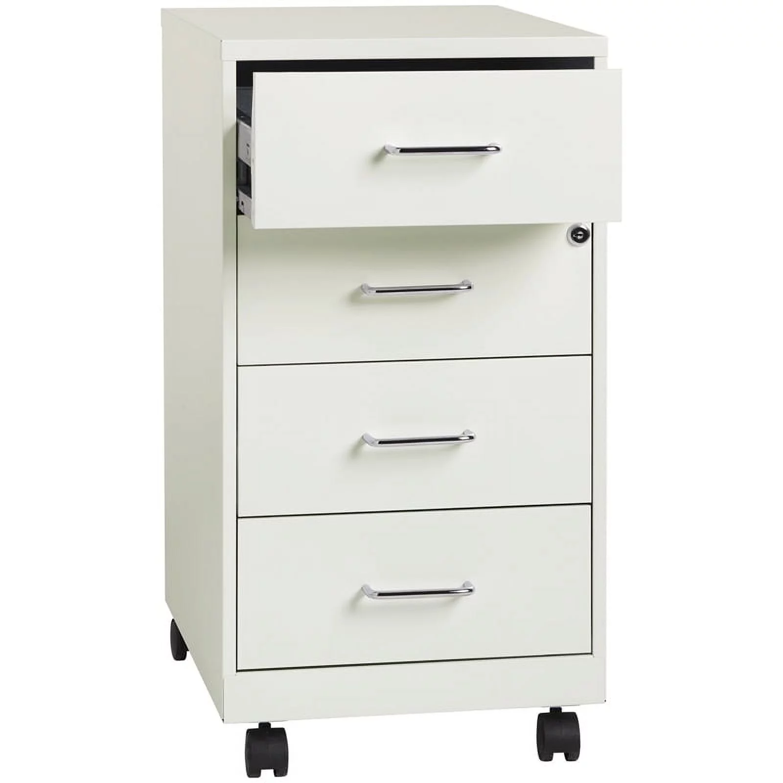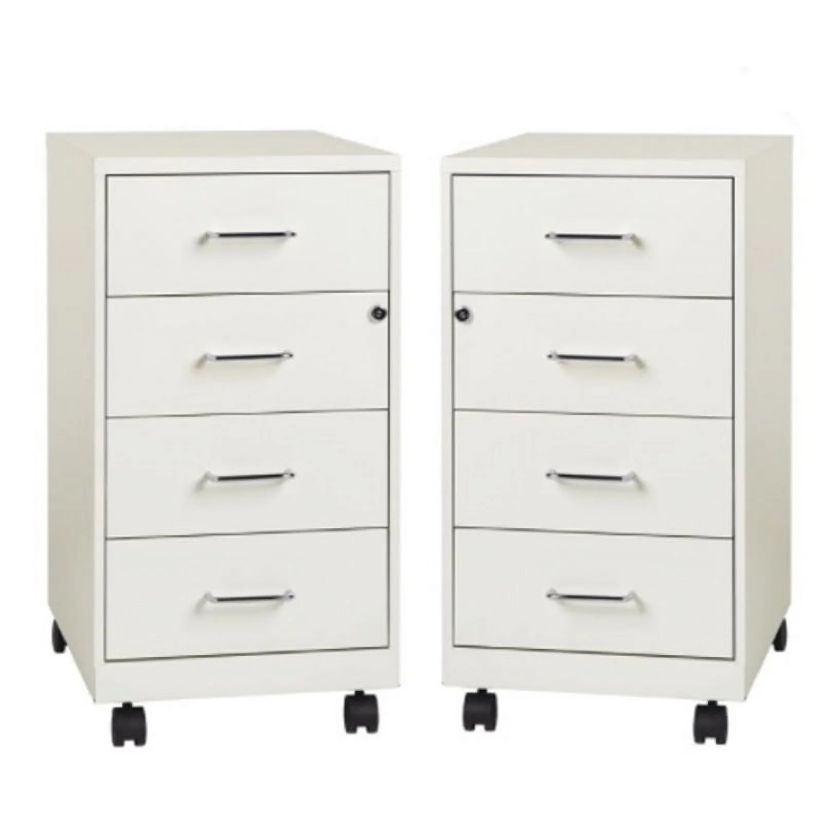 Home Square 2 Piece Metal Mobile Organizer Set with 4 Drawer in Pearl White