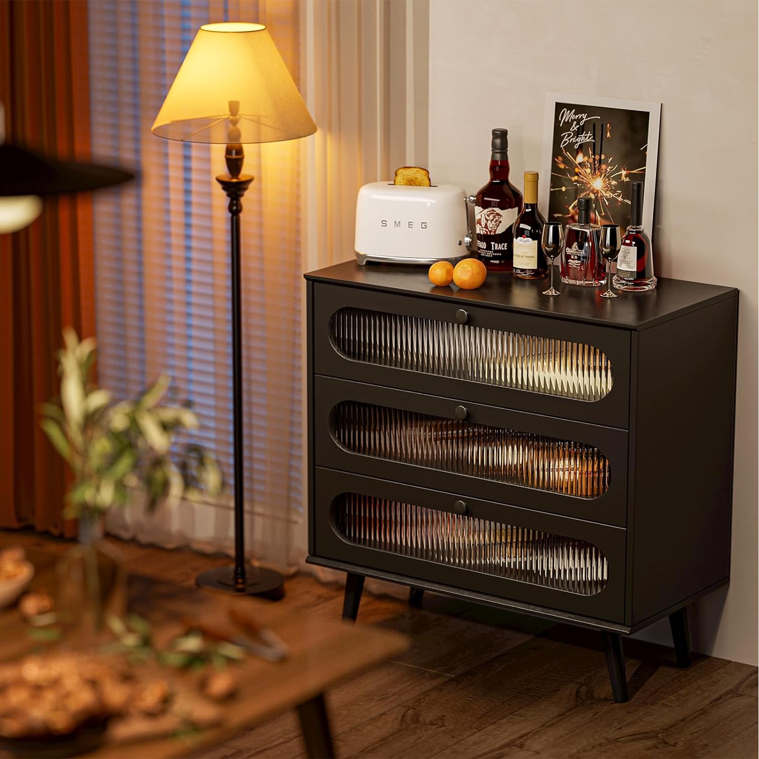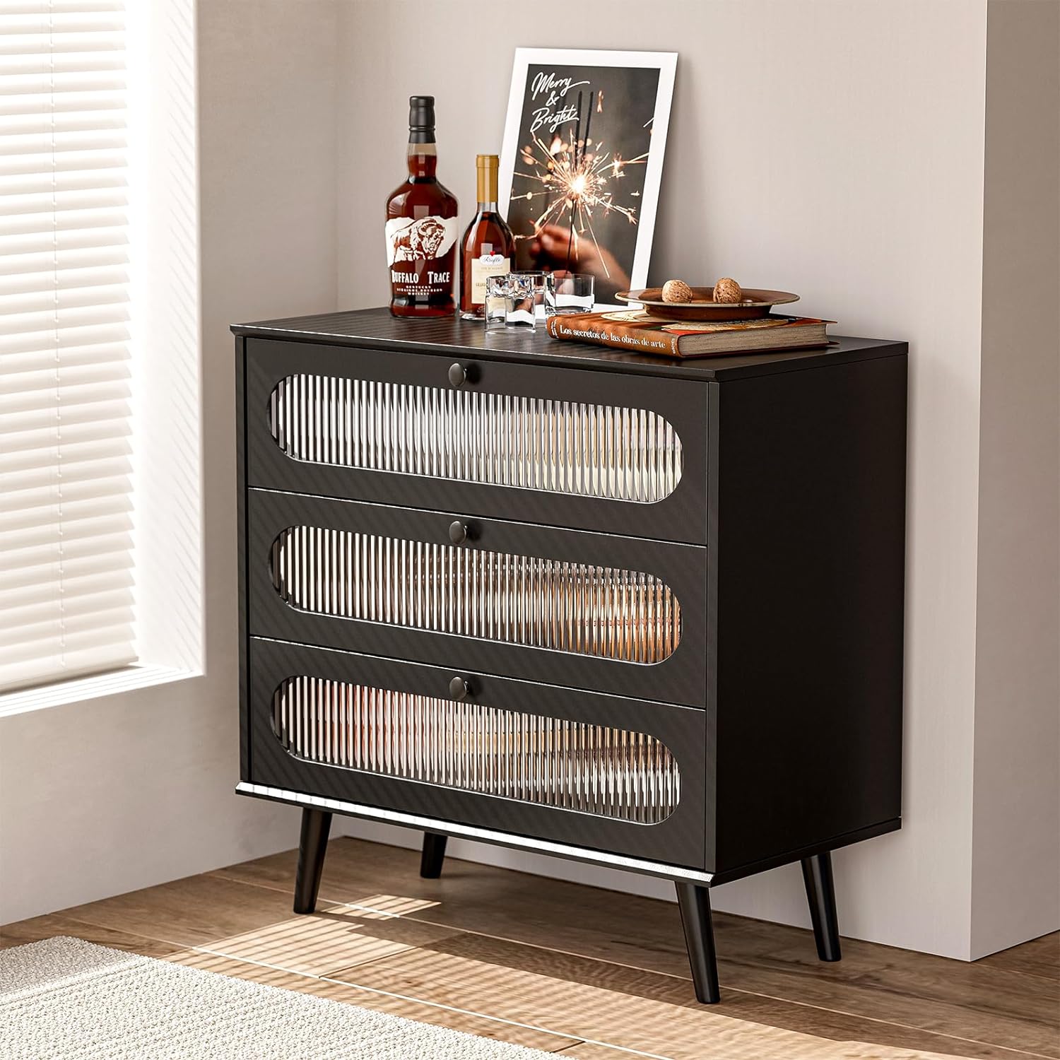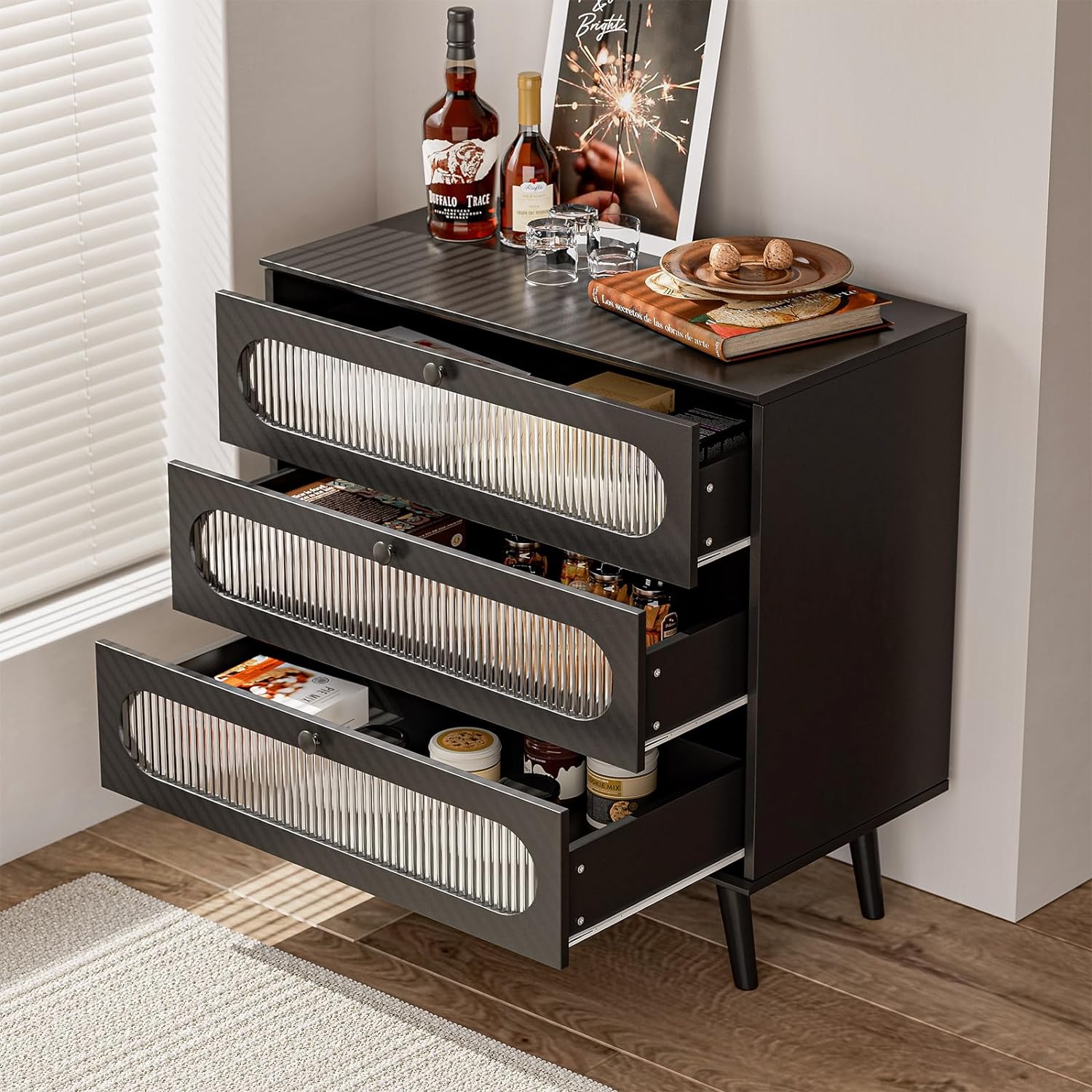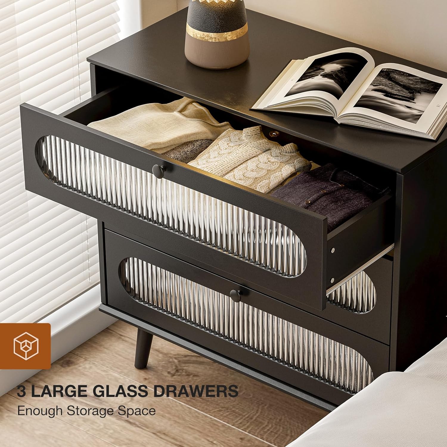 Plastic 3 Drawer Wide Cart, Black Frame, Clear Drawers, 4 Casters included, Set of 1