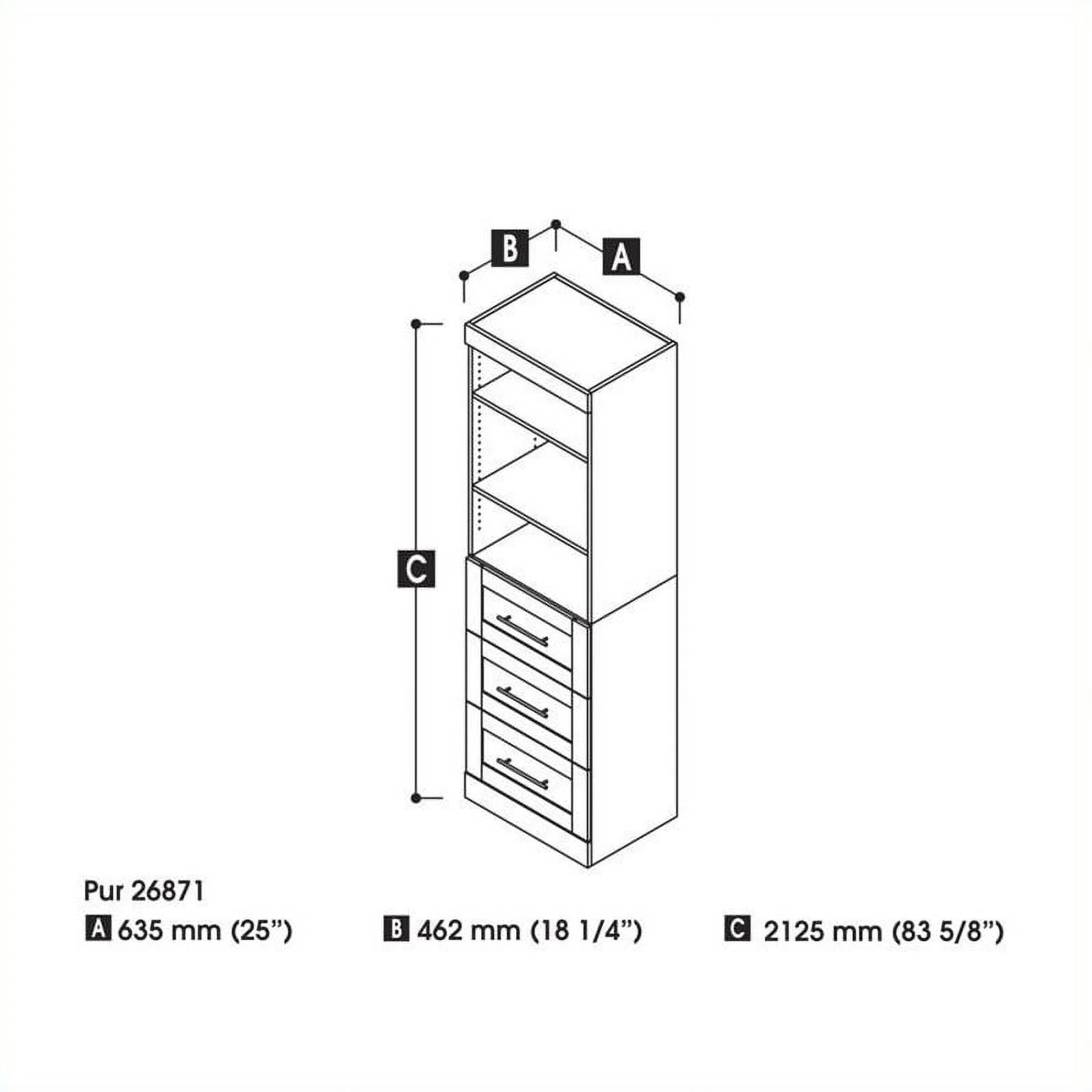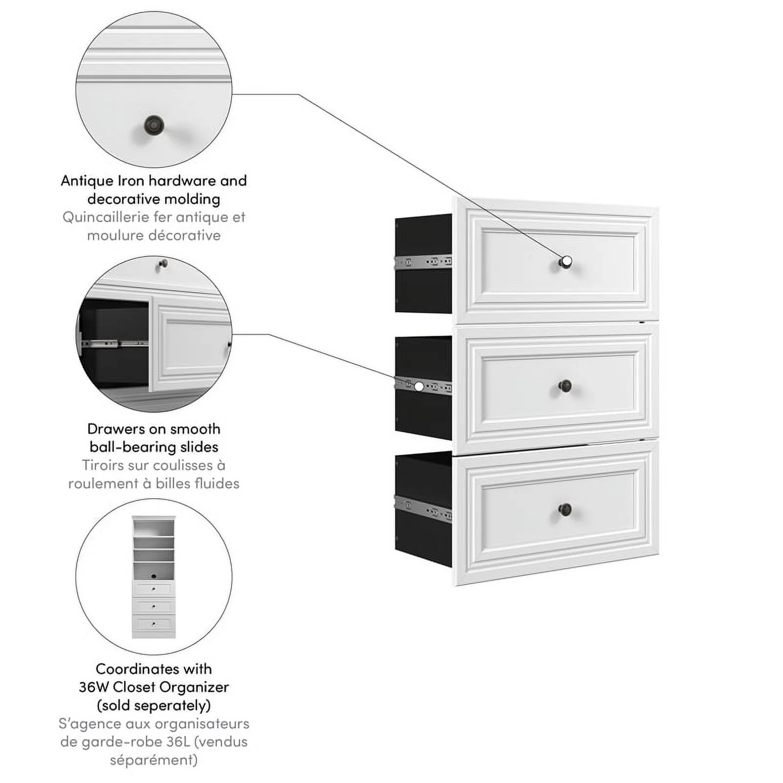 Bestar Versatile 25" Engineered Wood 3-Drawer Set for Organizer in White