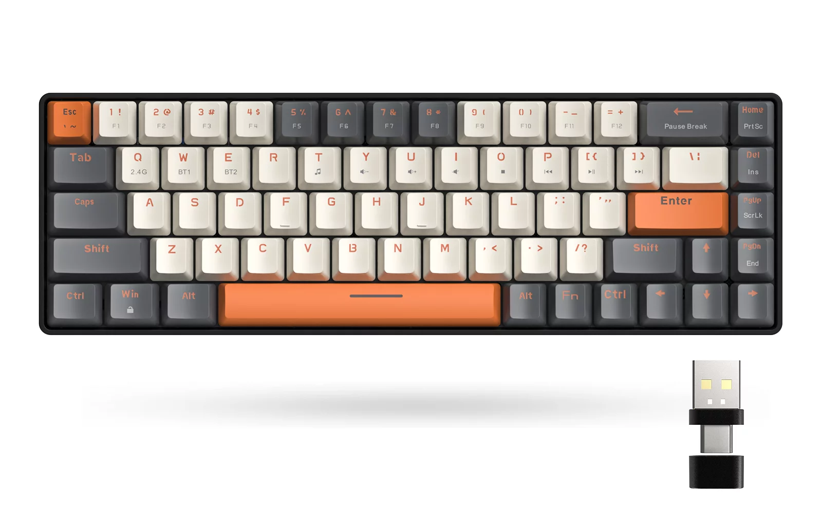 K68 60% Wireless Mechanical Keyboard, Bluetooth 5.0/2.4GHz 68 Keys Hot Swappable Red Switch for PC