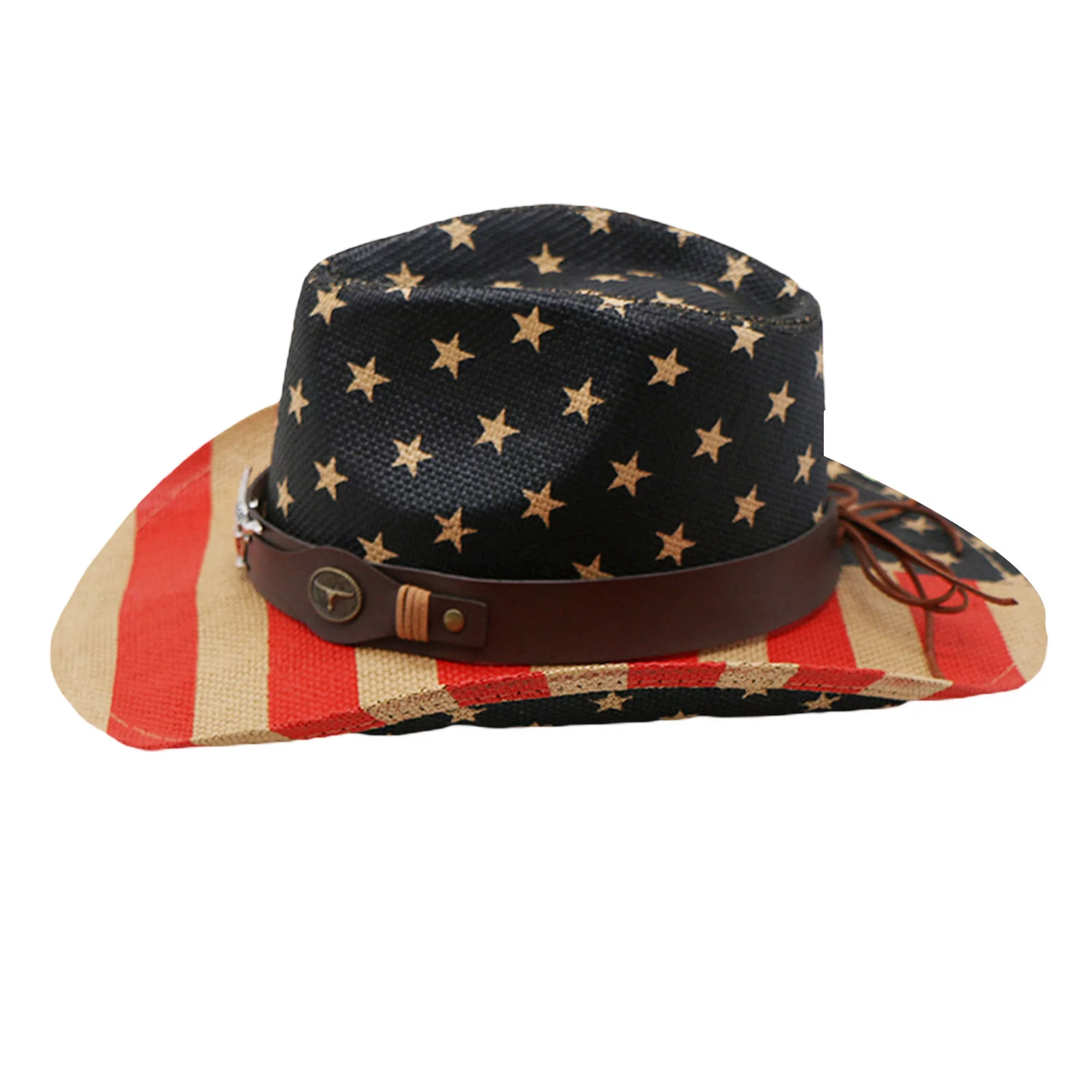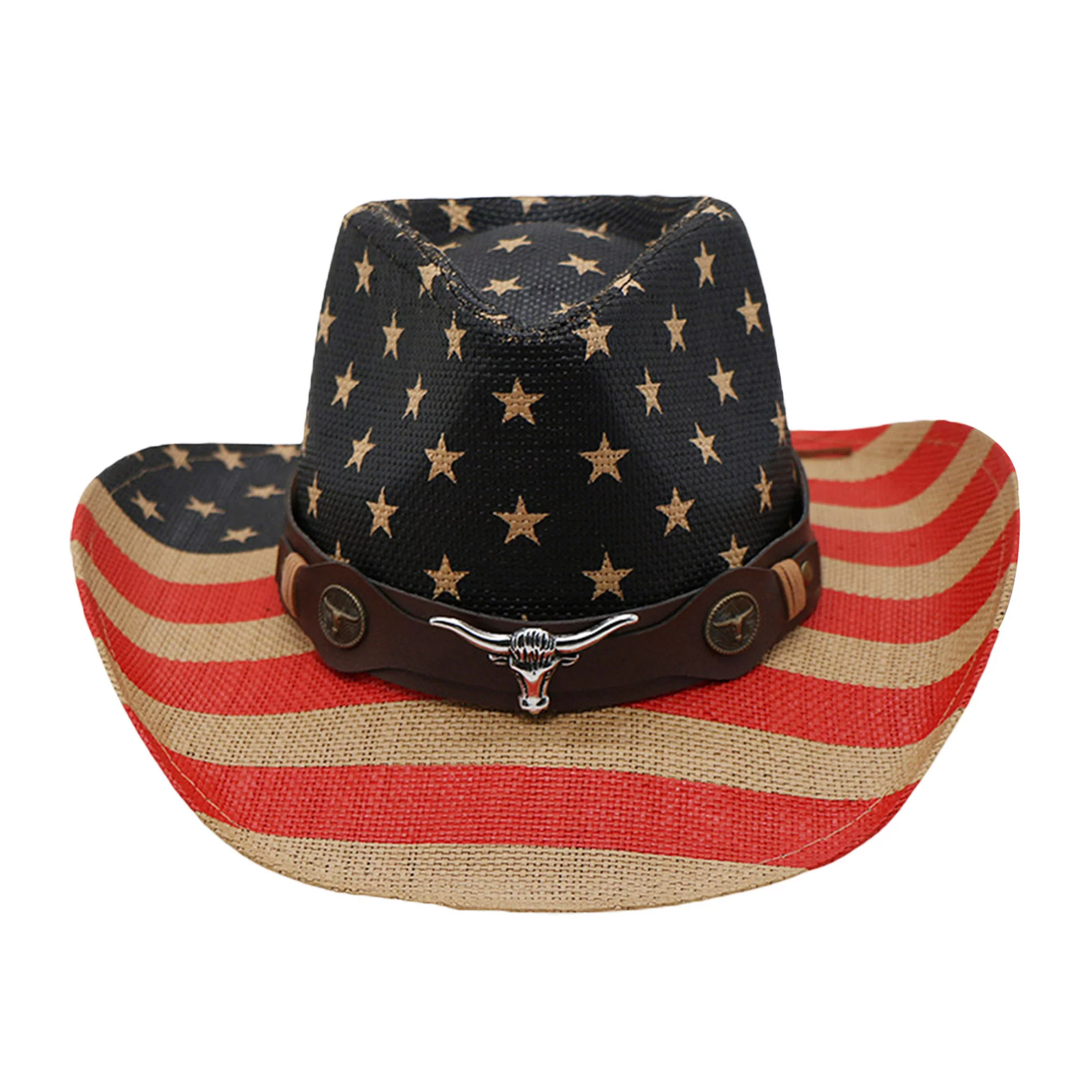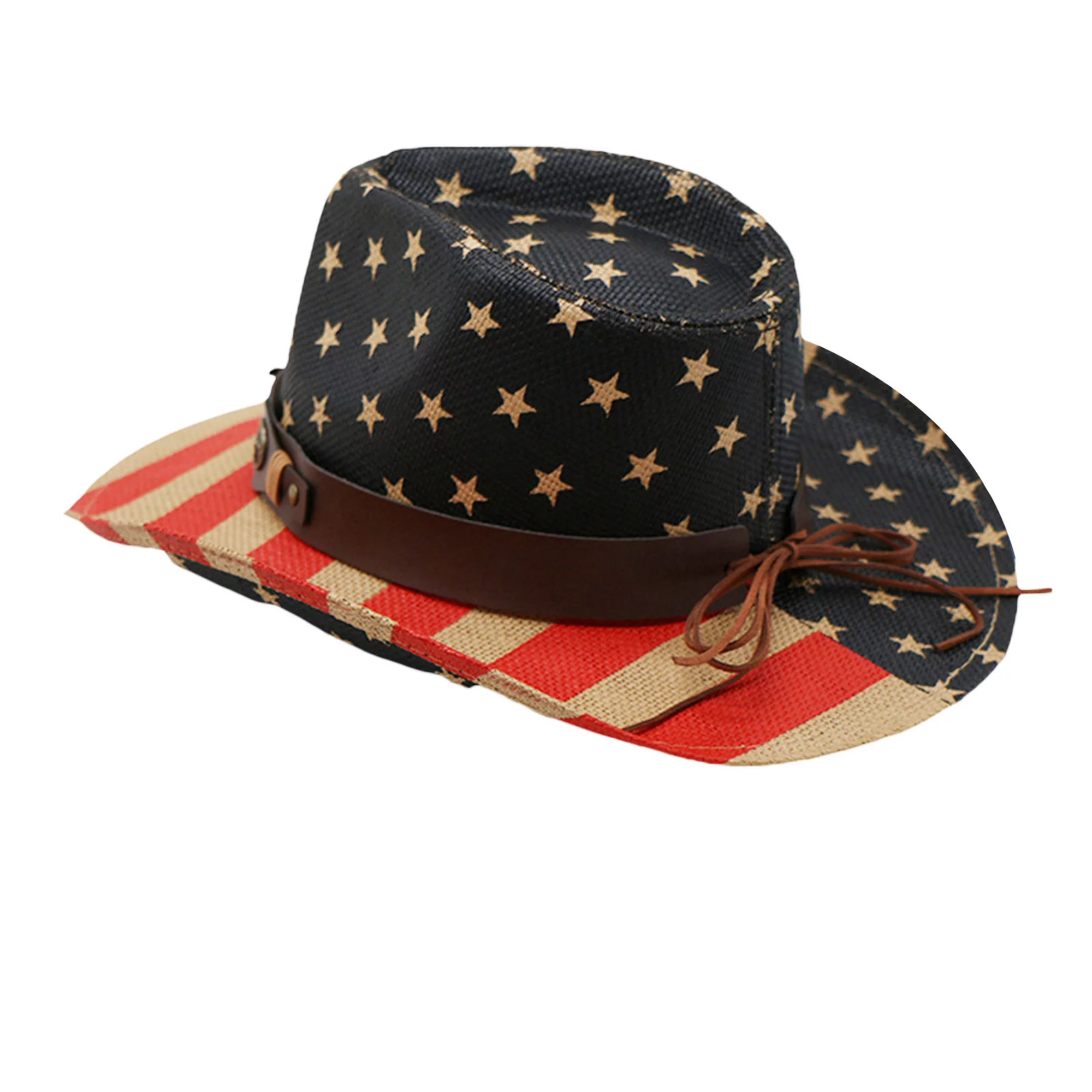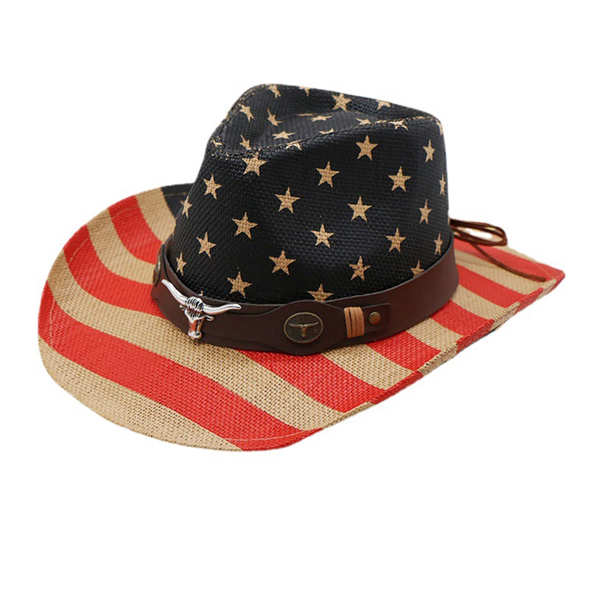 Caitzr Vintage American Flag Cowboy Hat,Unisex USA Patriotic Hats for Men Women Cowgirl Hat Country-Western