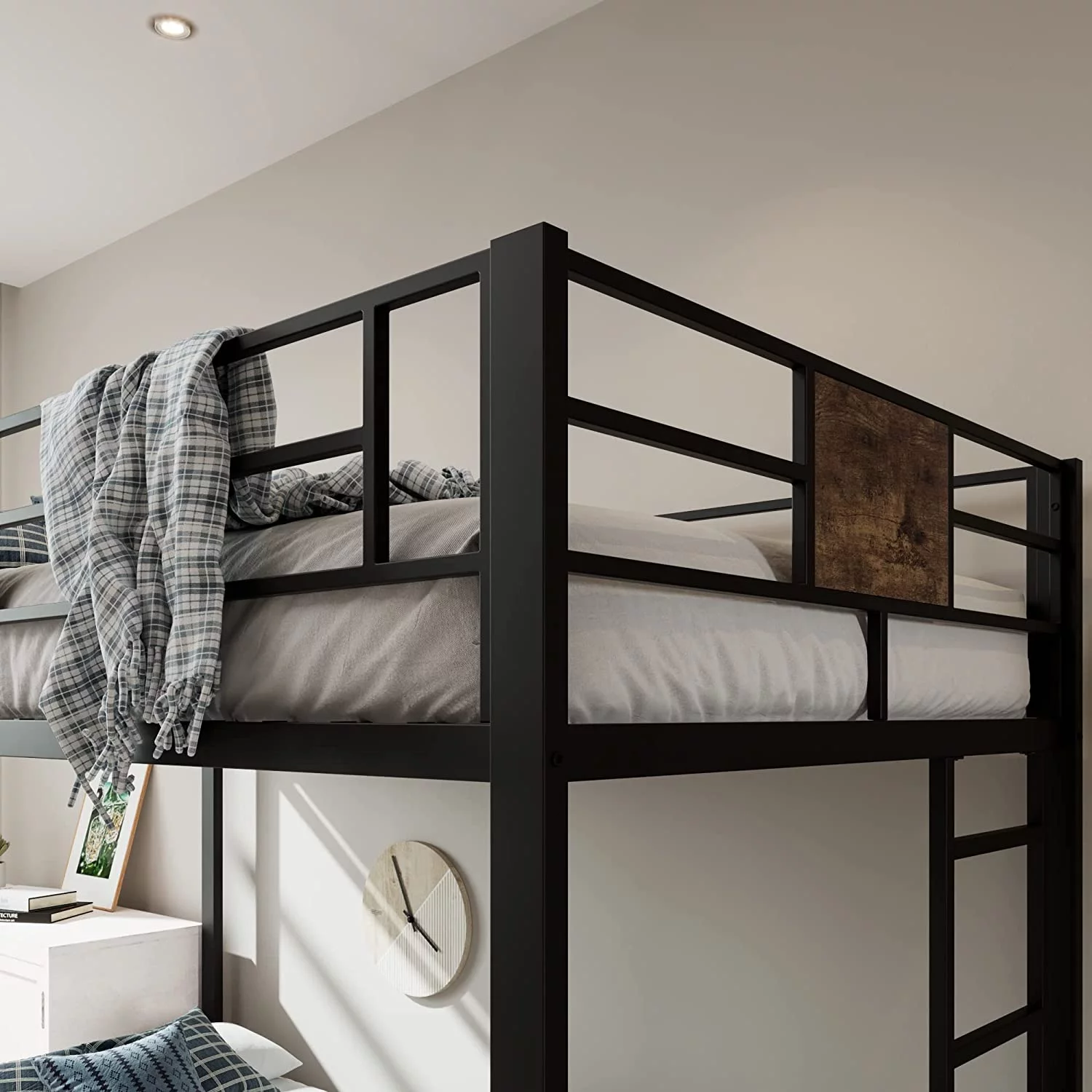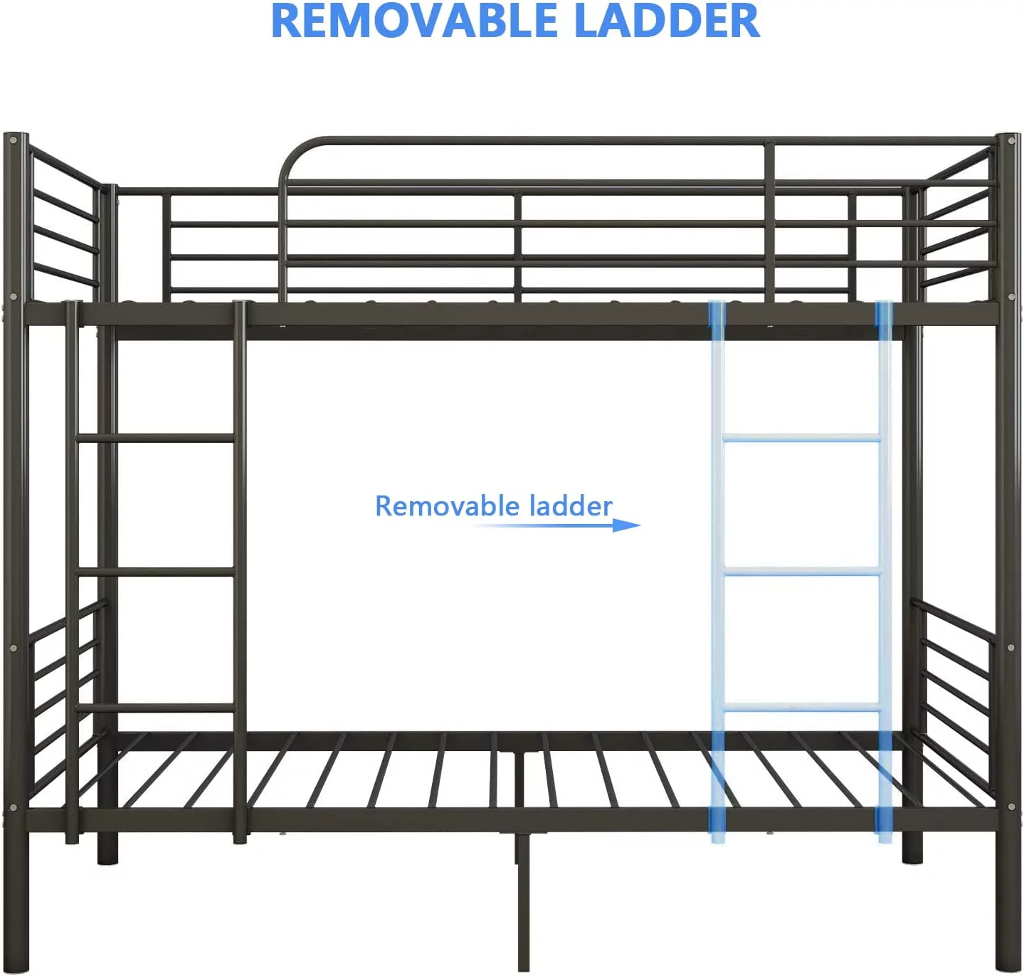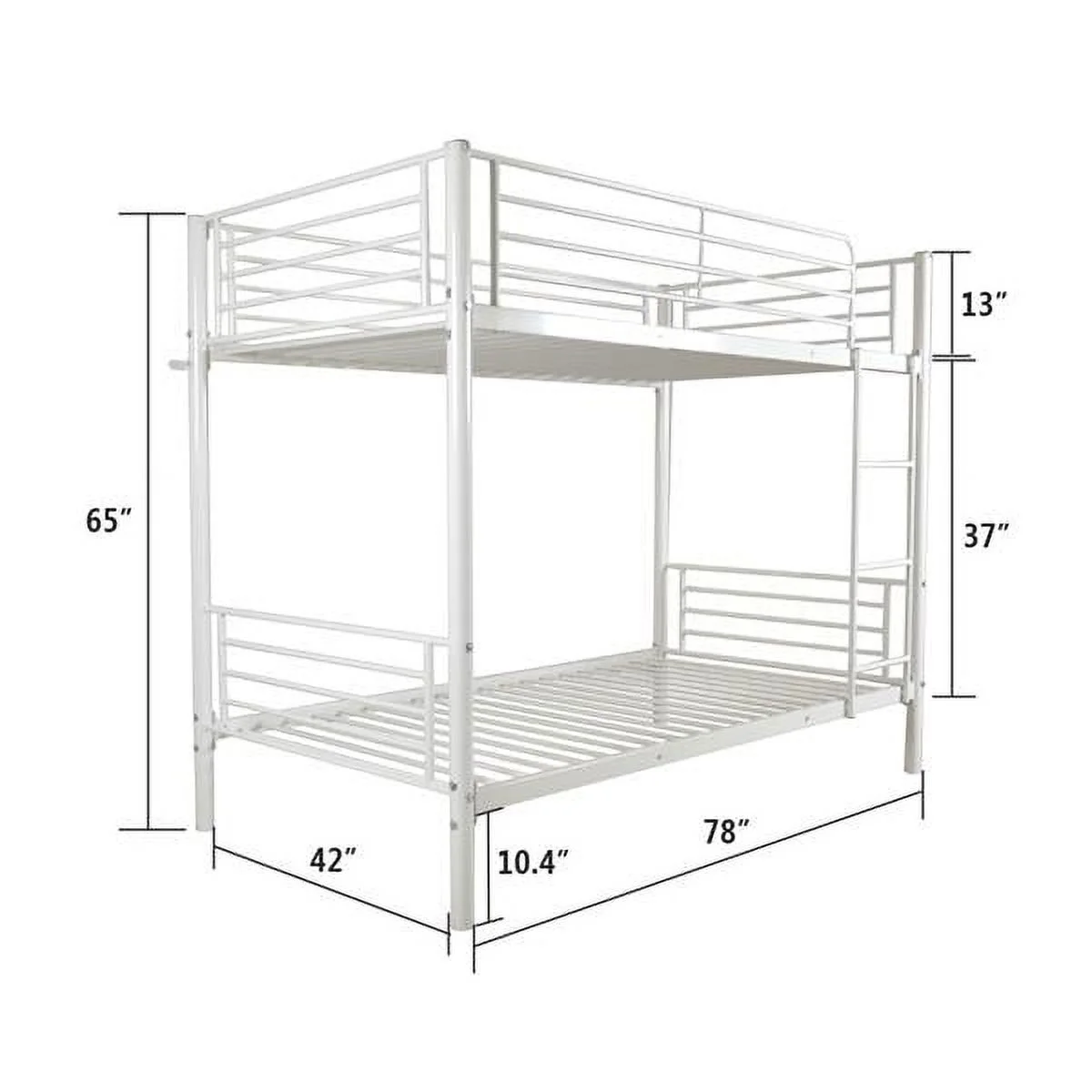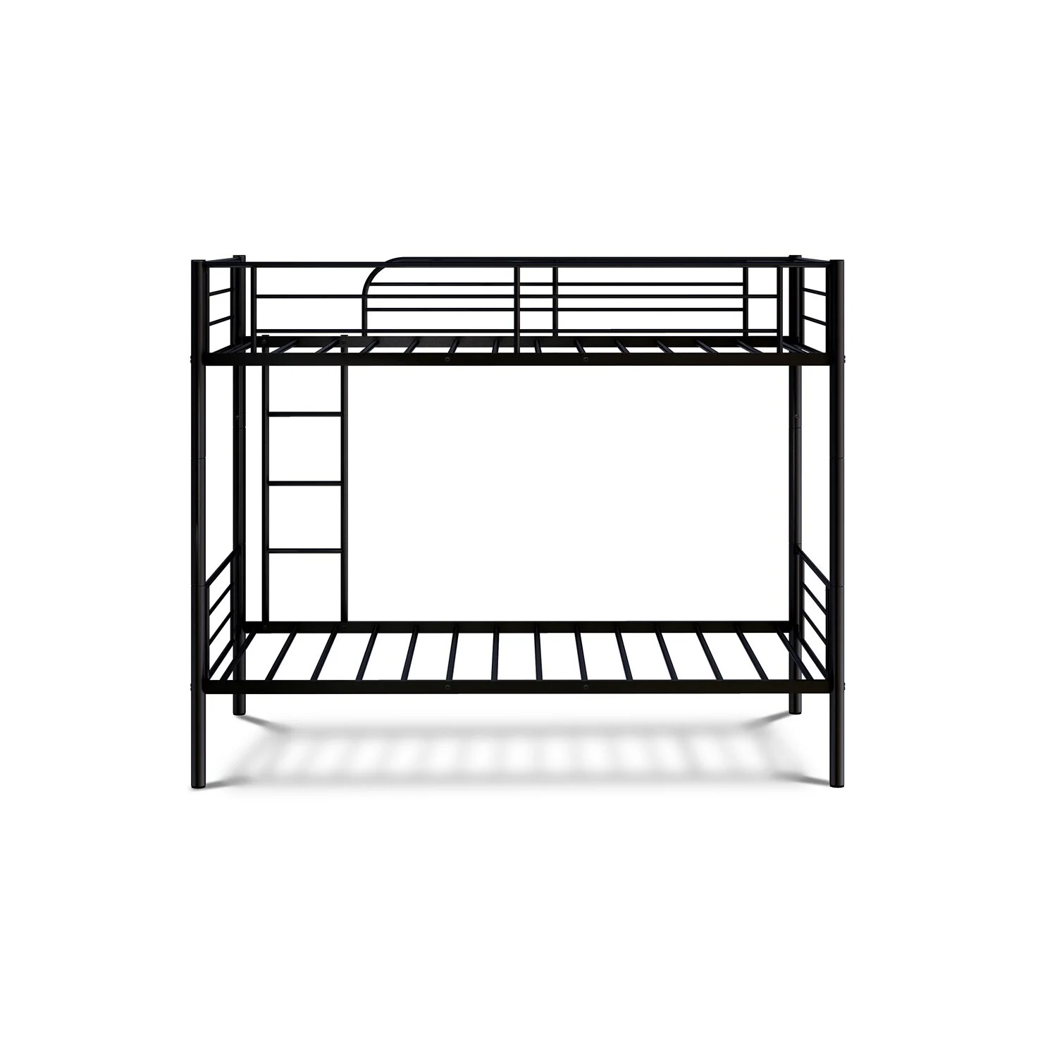 Metal Loft Bed Size With Desk And Bookcase, Loft Bed Full-Length Guardrail, No Box Spring Needed (Black)
