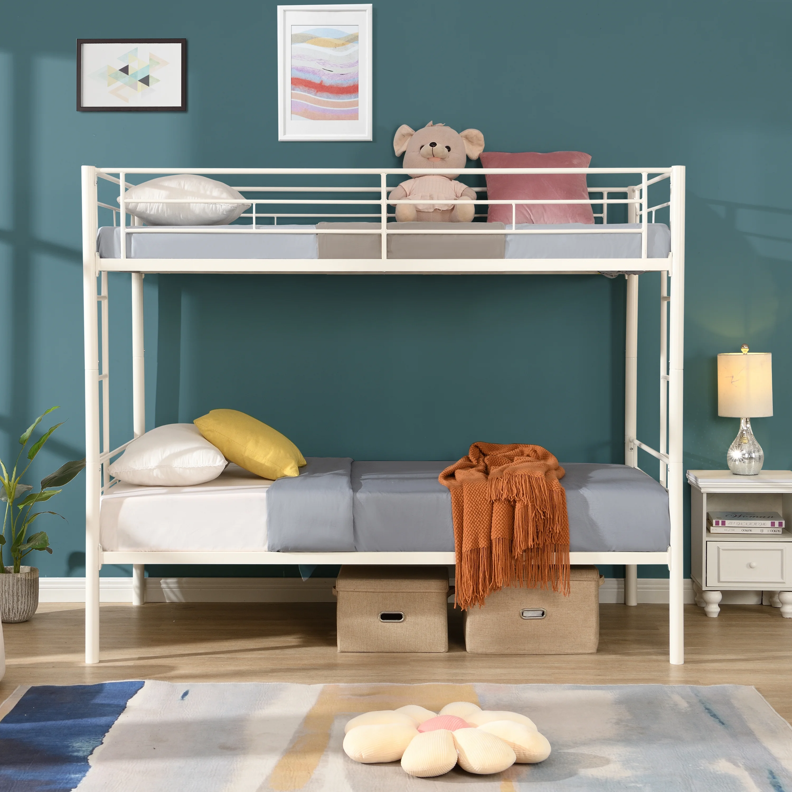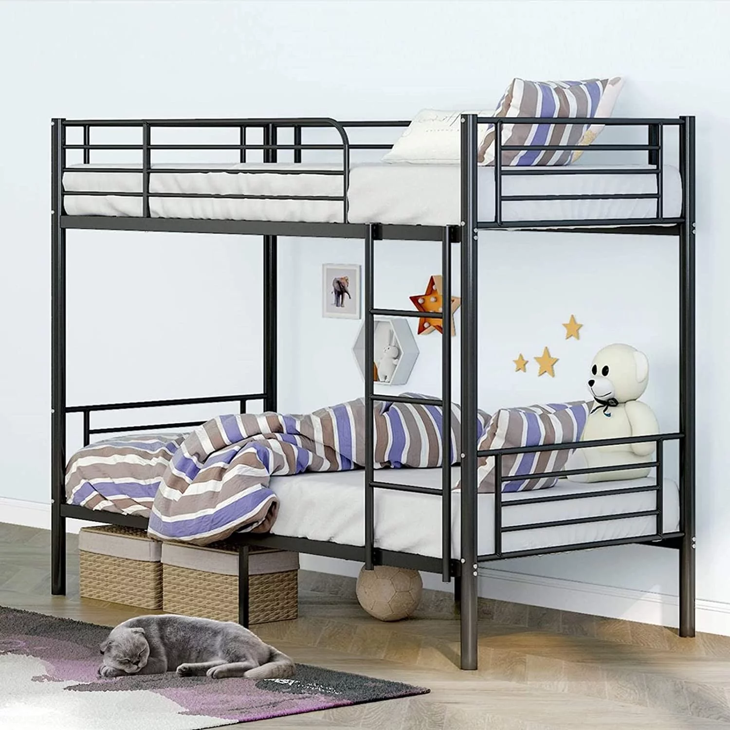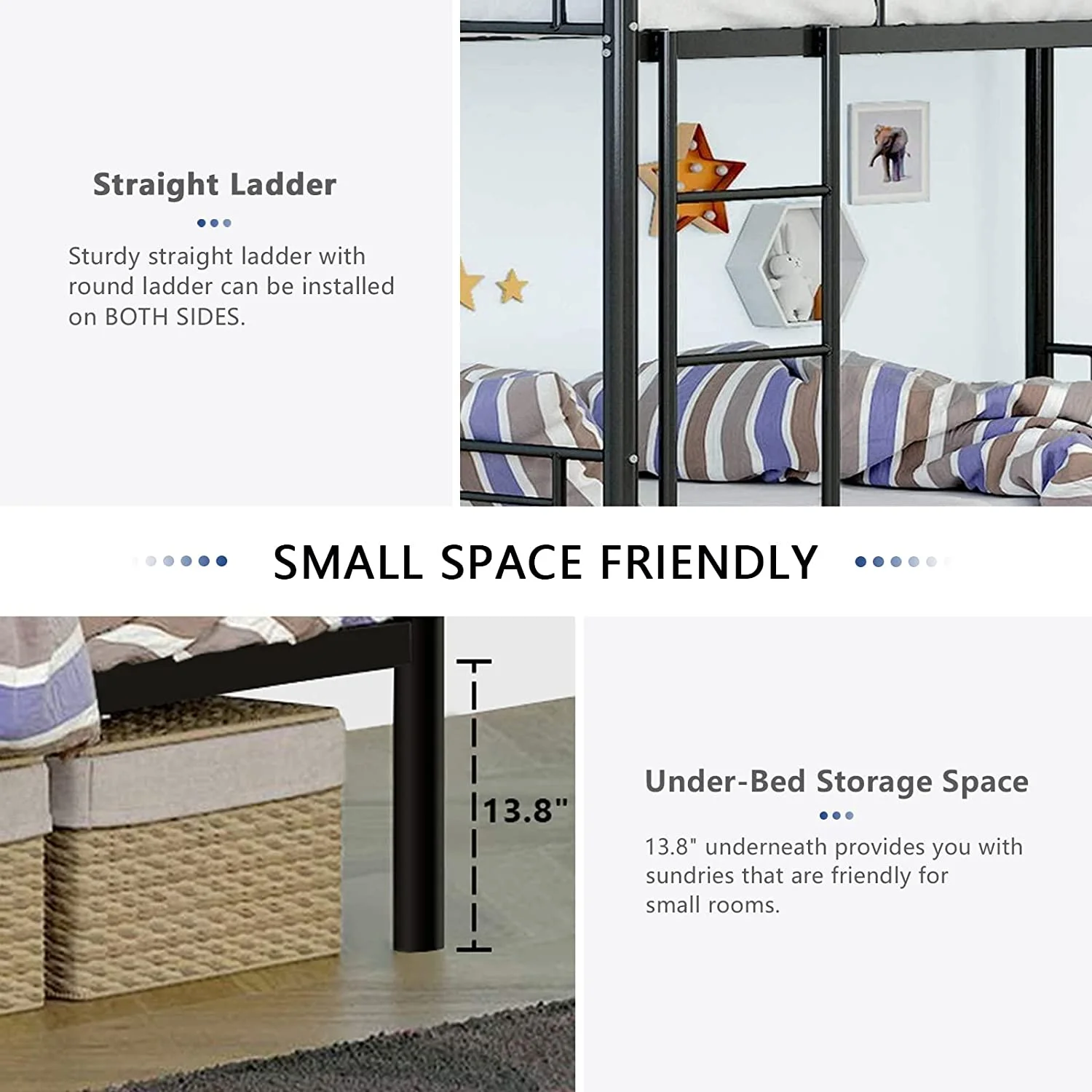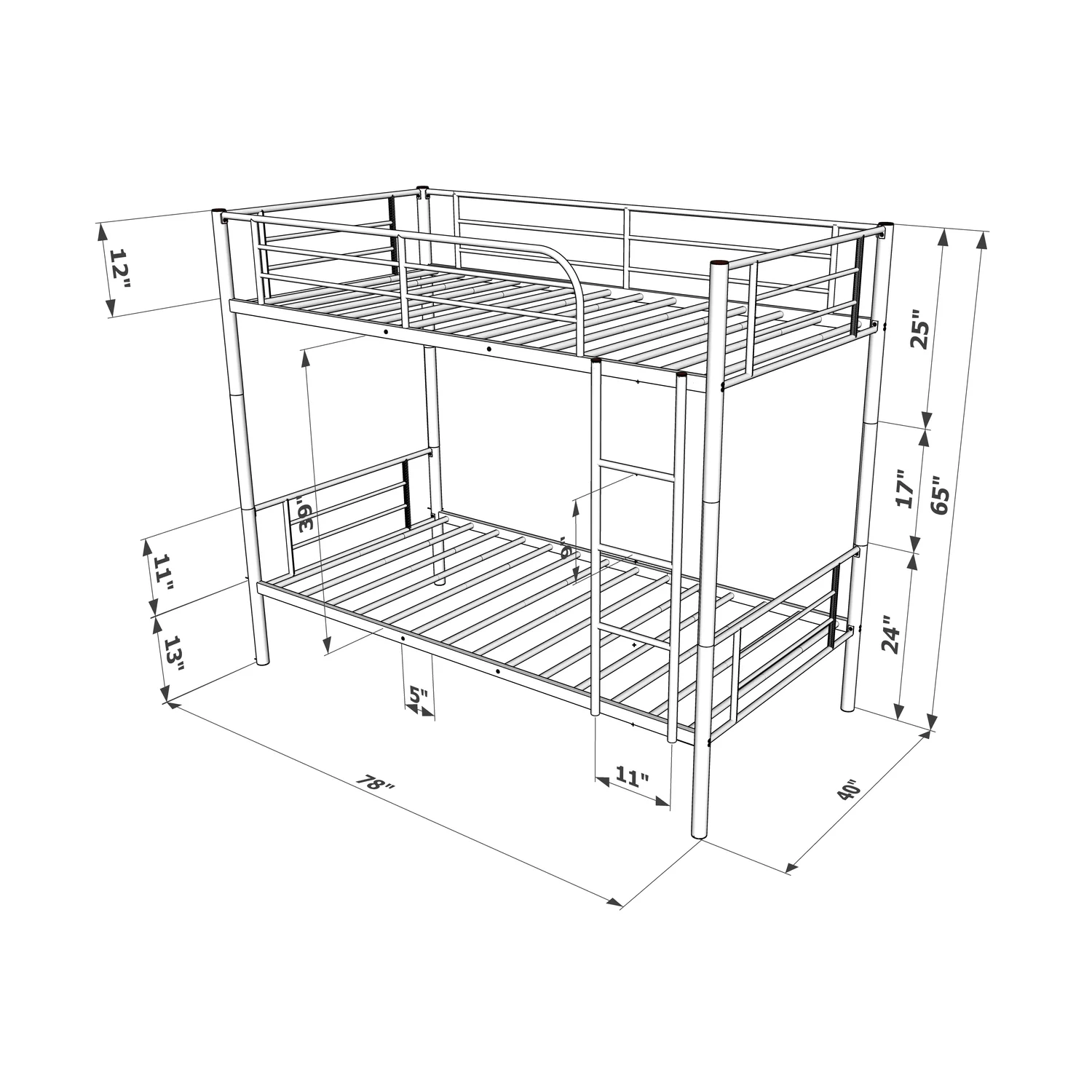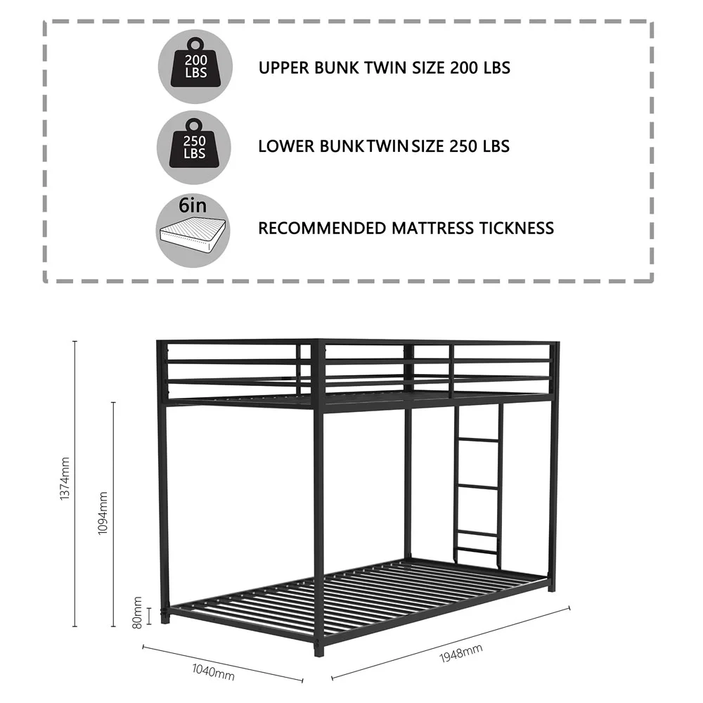 ikayaa Metal Loft Bed Frame with Desk, No Box Spring Needed,Twin ,Black