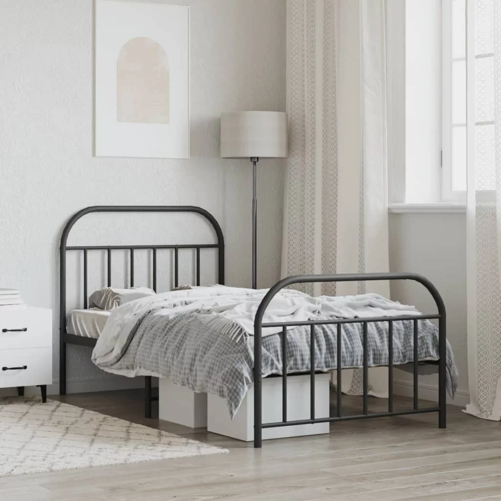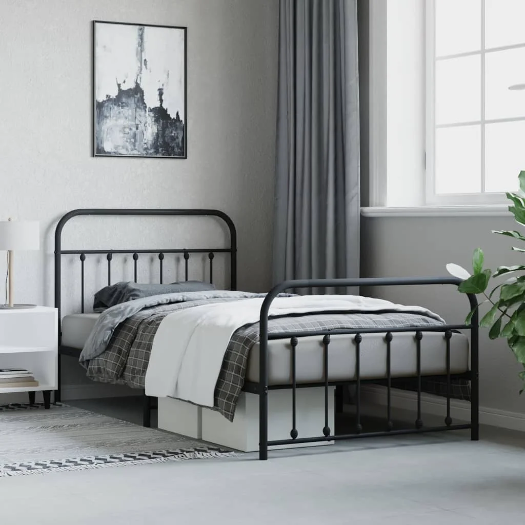 Aibecy Metal Bed Frame with Headboard and Footboard Black 59.8"x78.7"