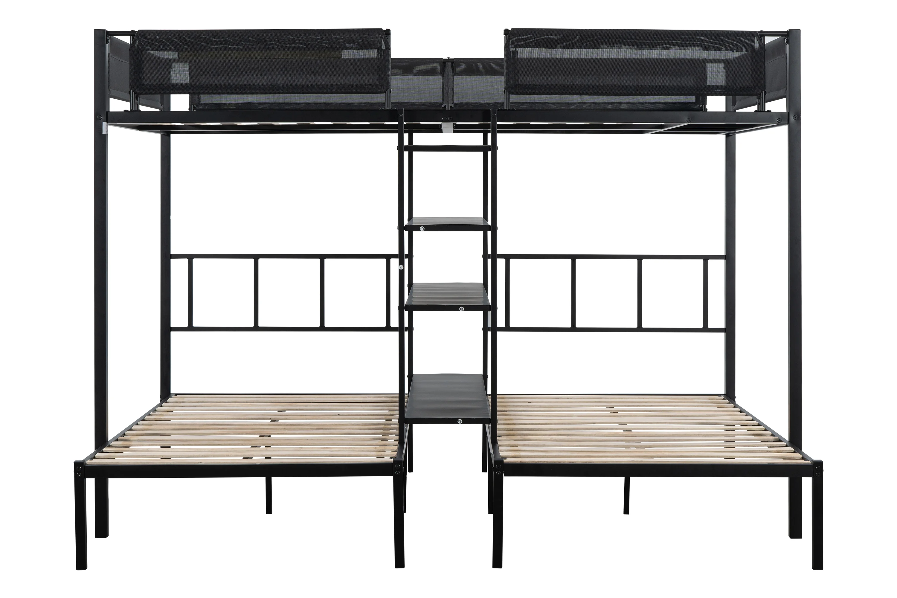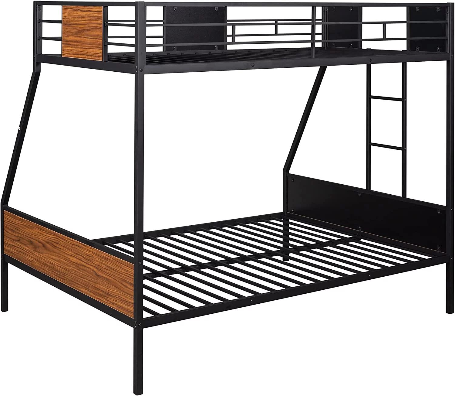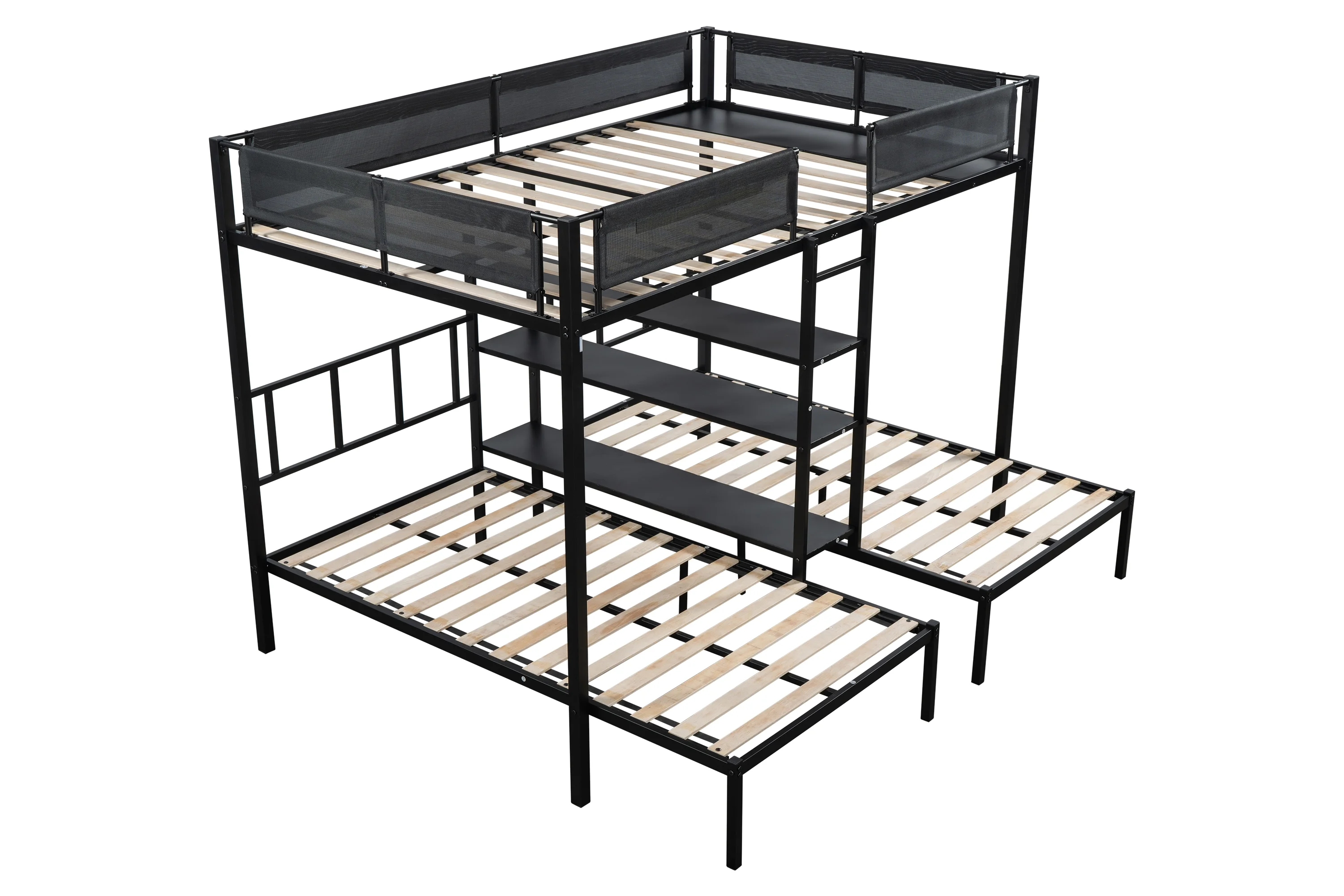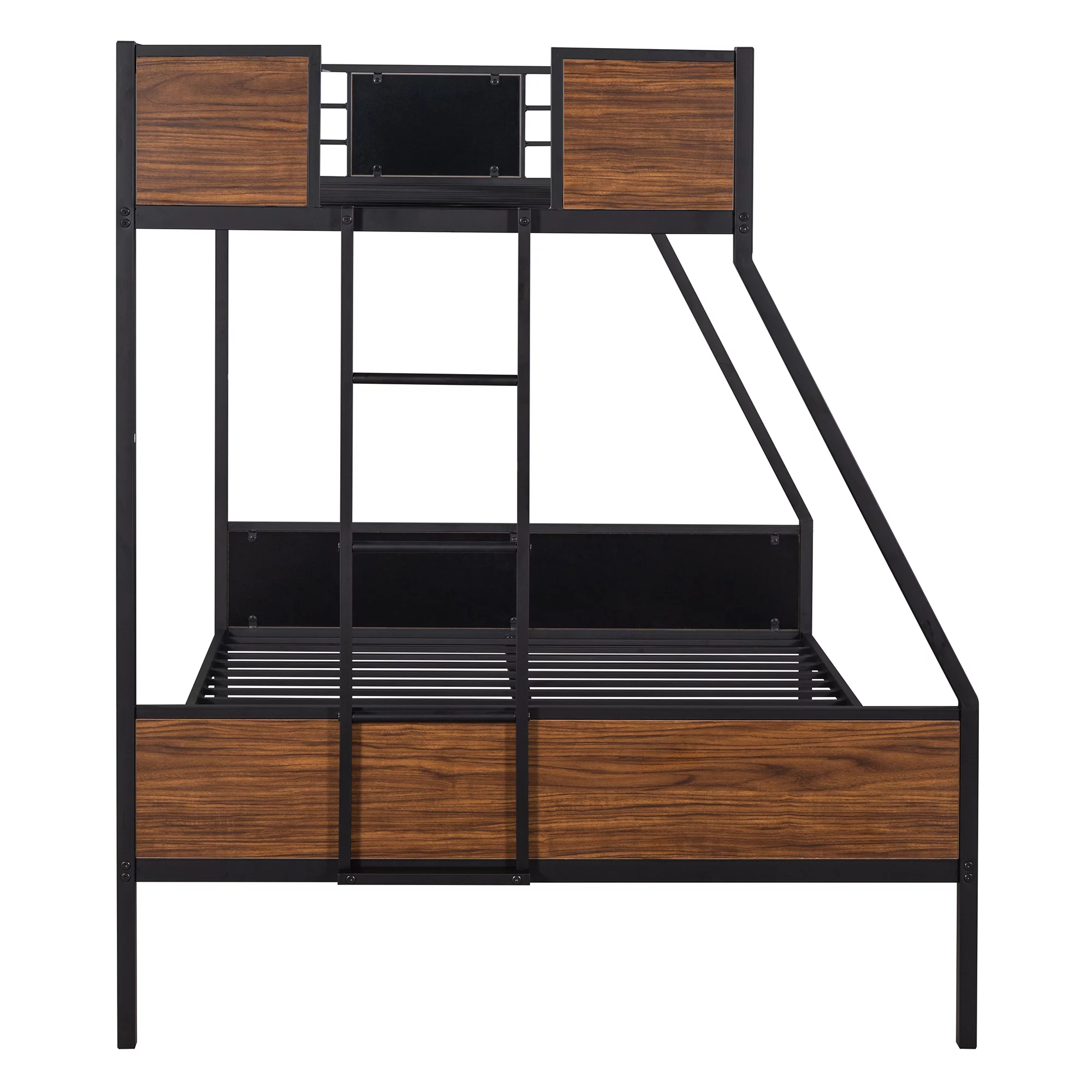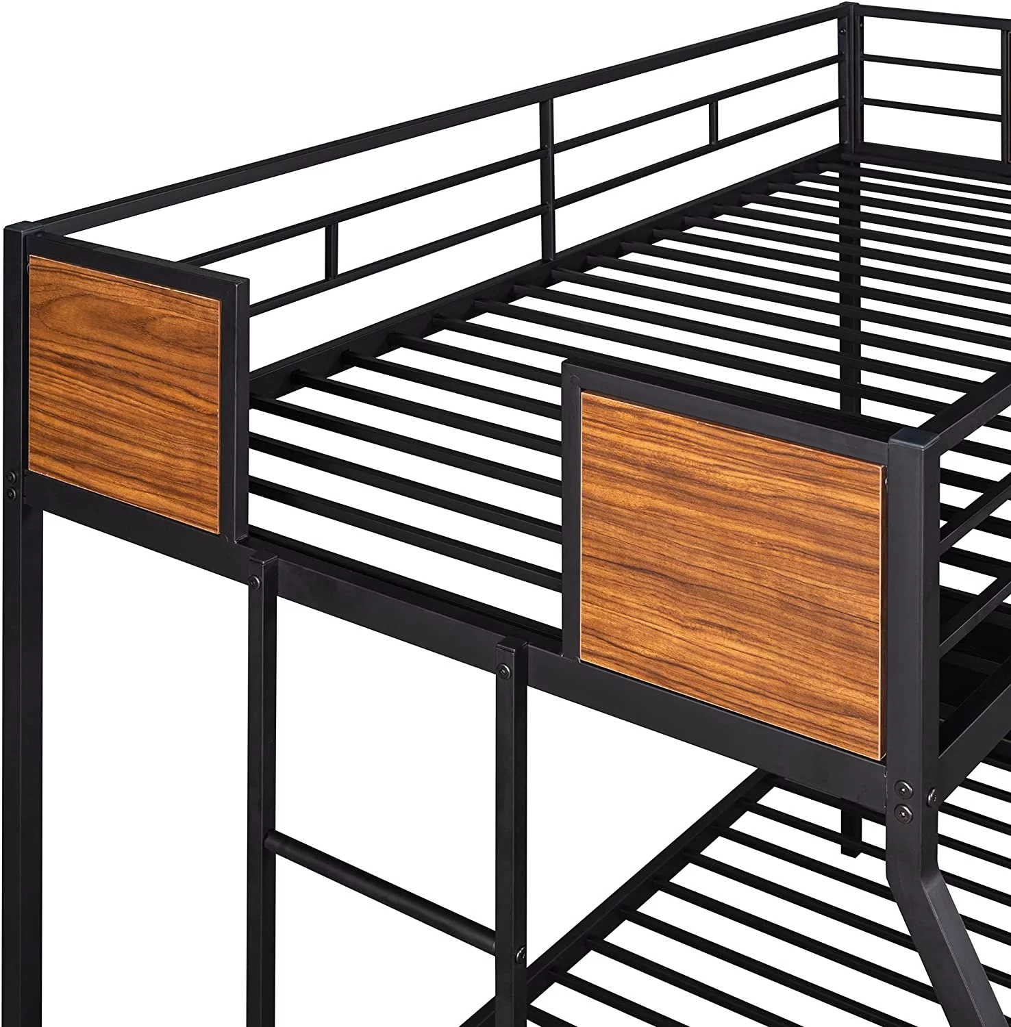 Dcenta Full-Over-Full-Over-Full Triple Bed with Built-in Ladder and Slide , Triple Bunk Bed with Guardrails, Espresso