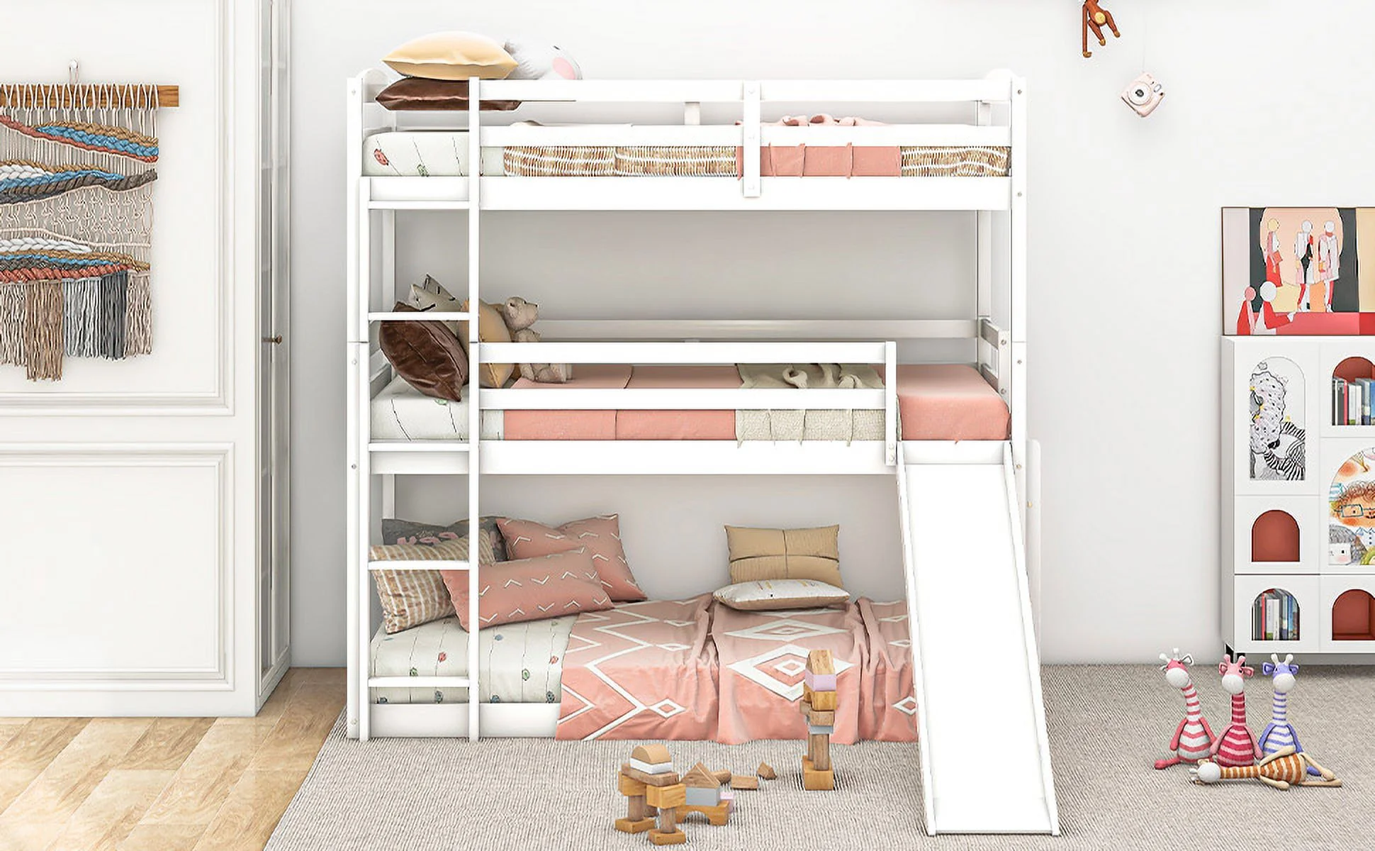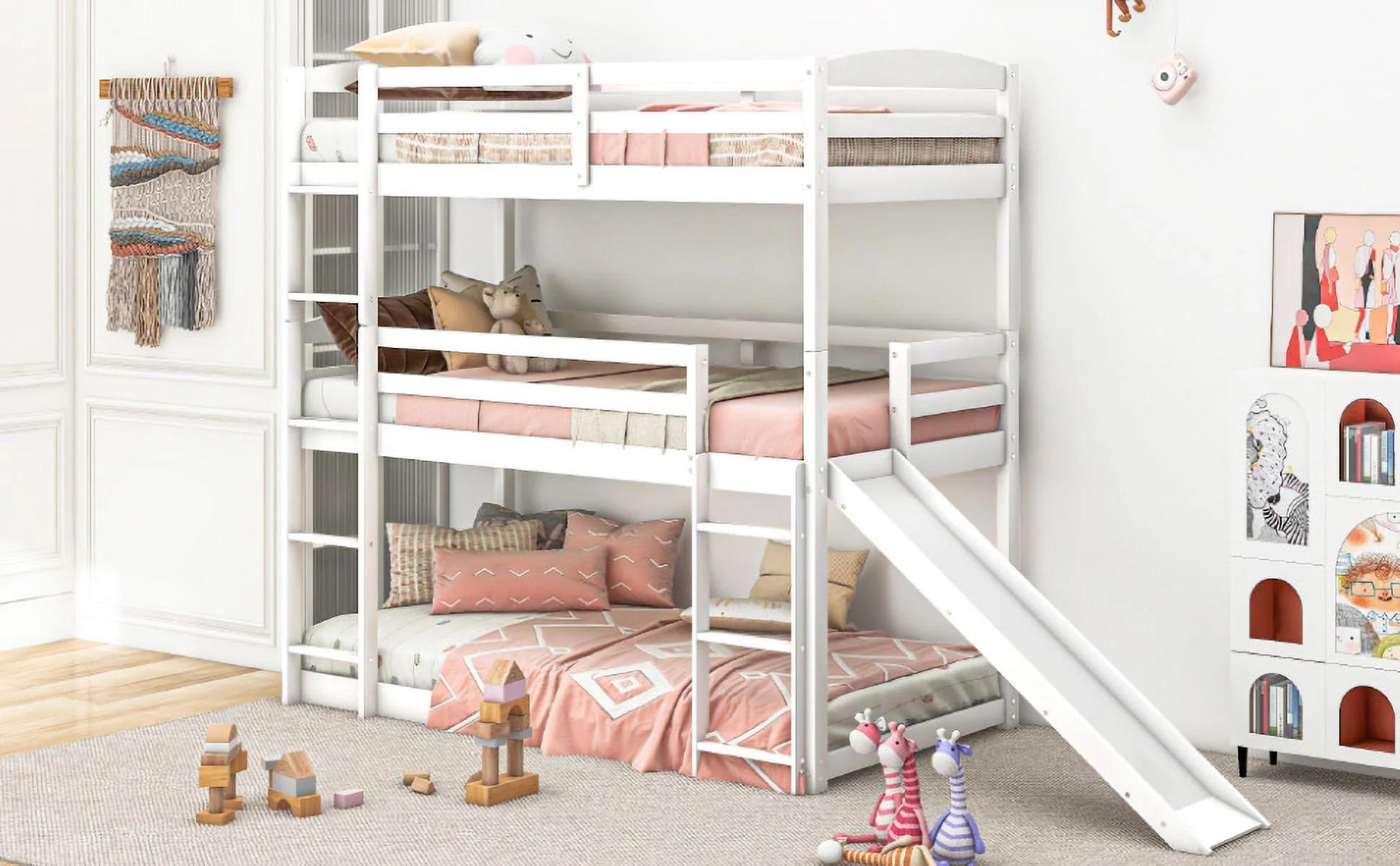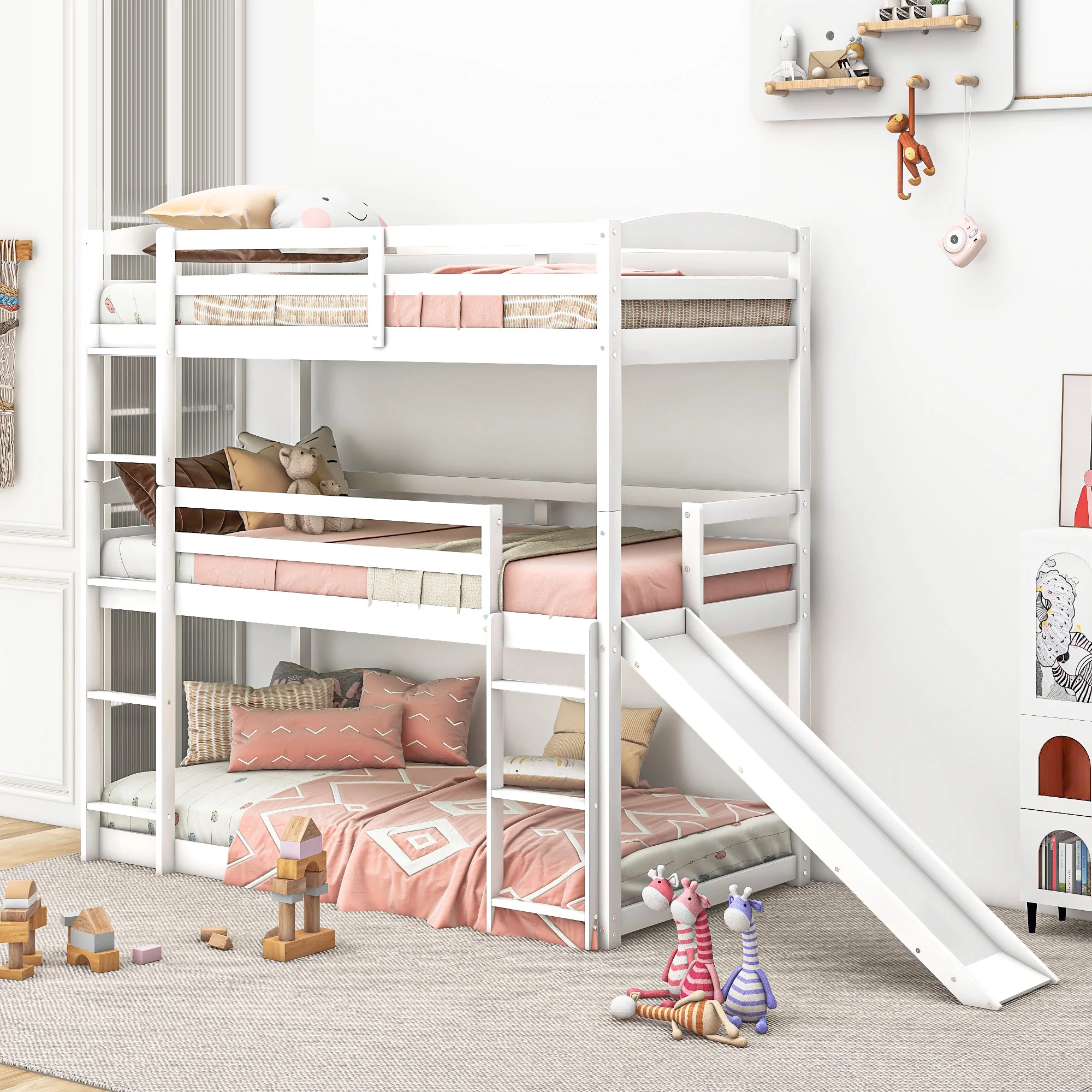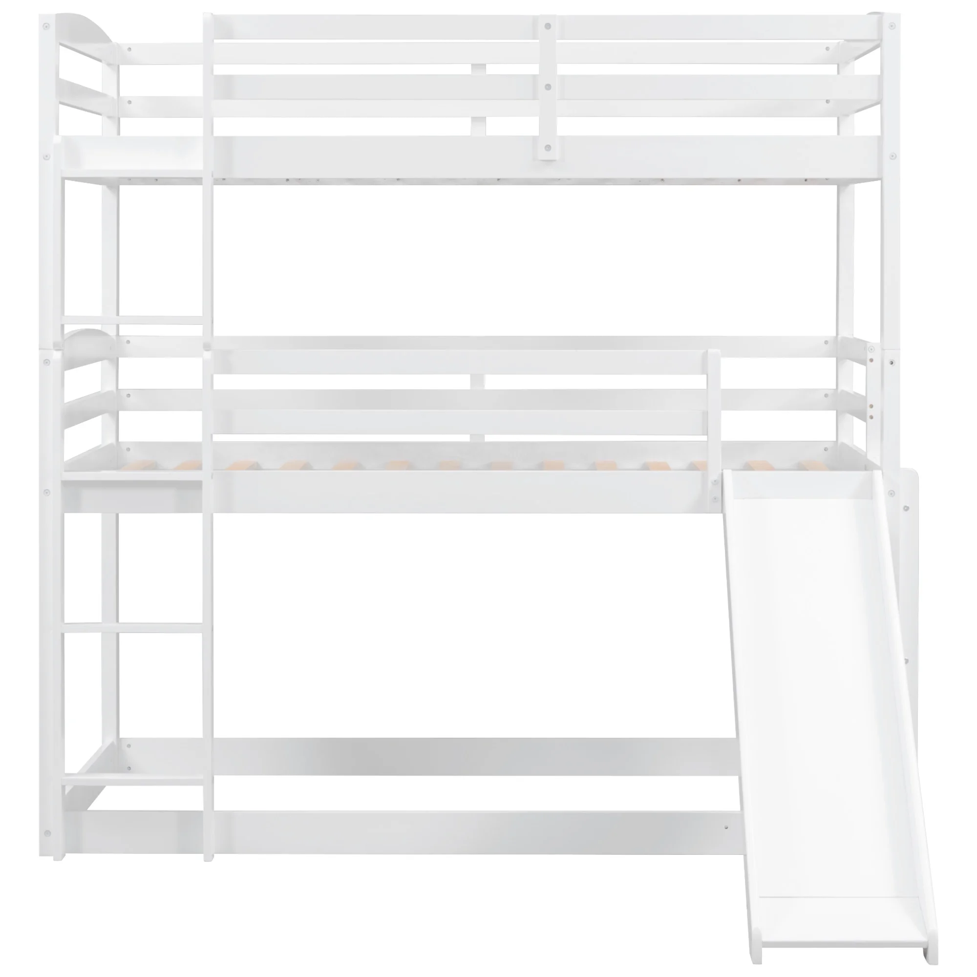 CoSoTower Twin Over Twin Over Twin Adjustable Triple Bunk Bed with Ladder and Slide, White