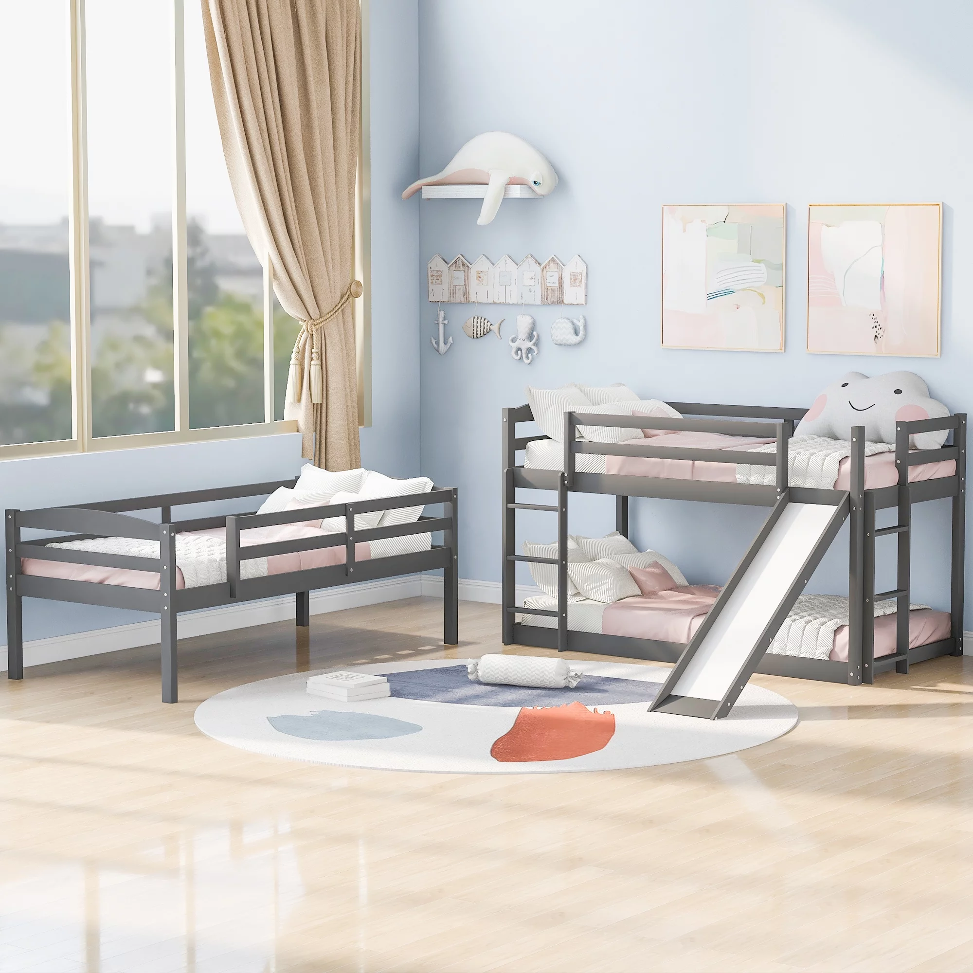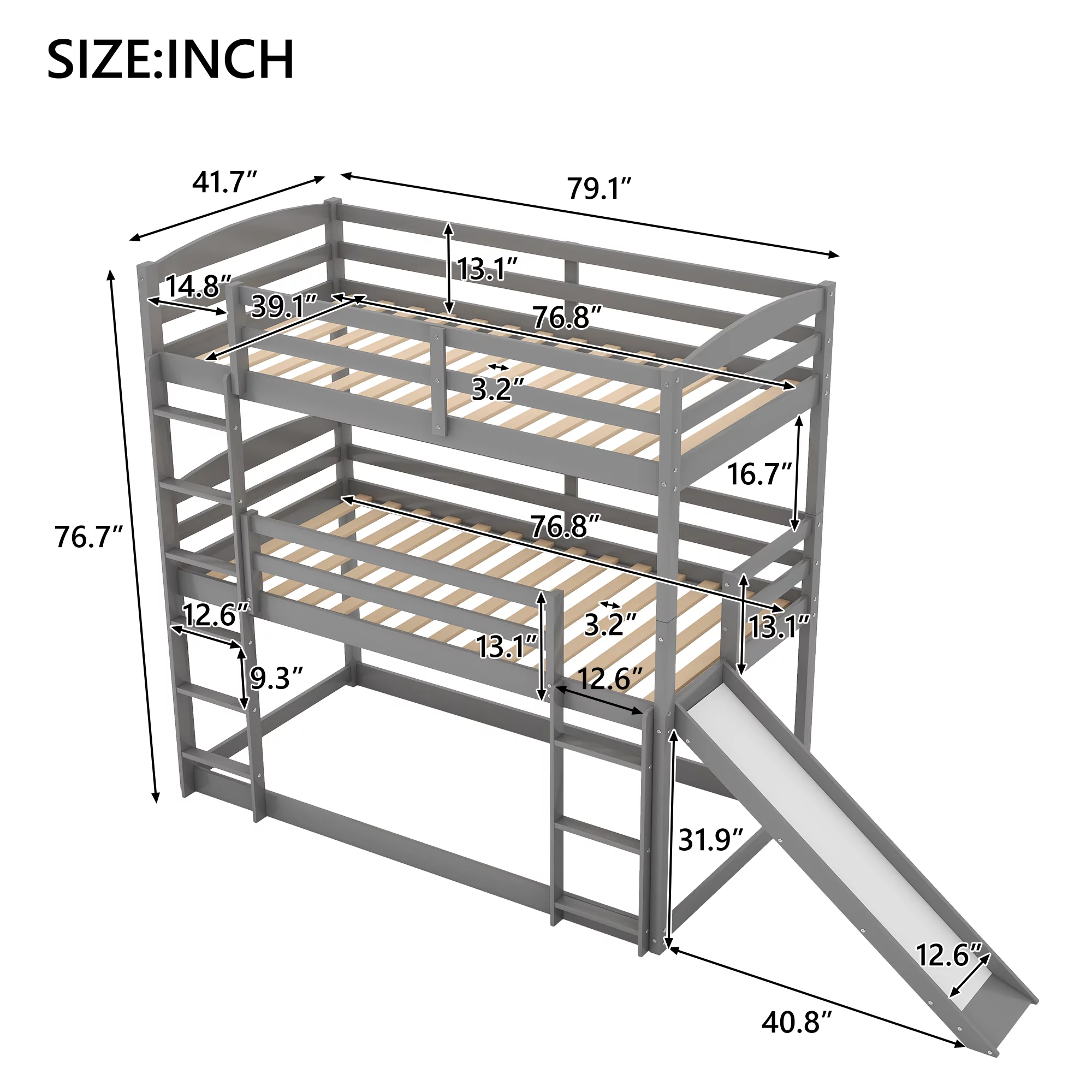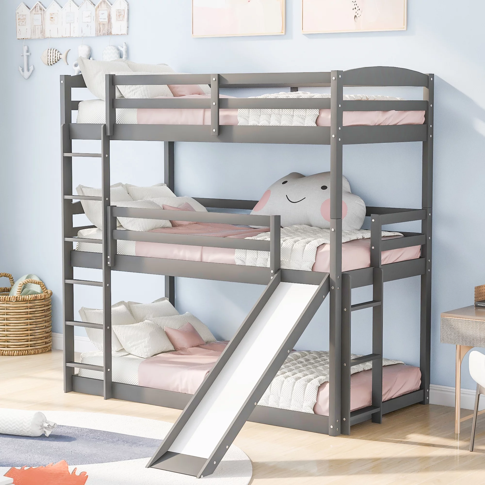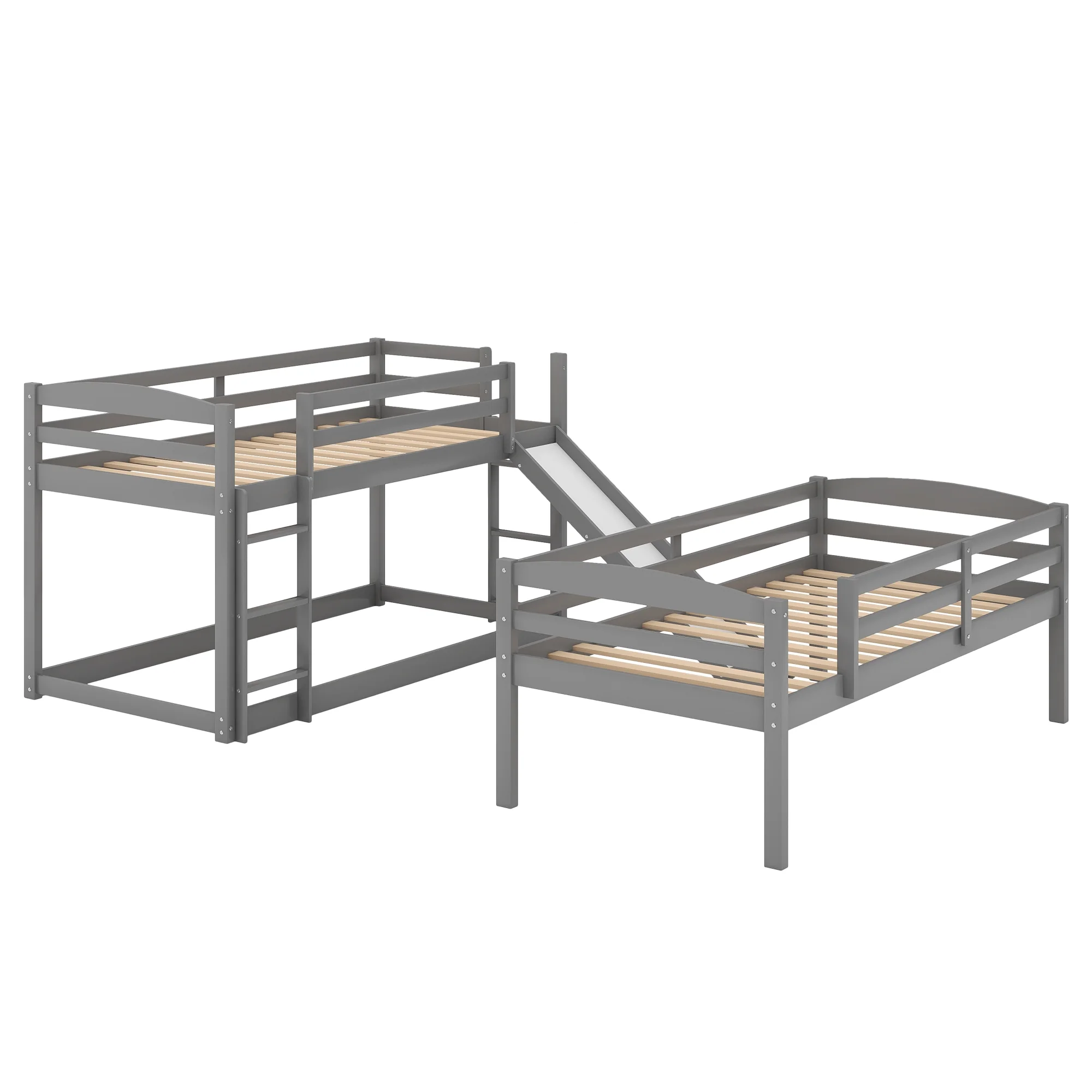 CoSoTower Twin over Twin over Twin Adjustable Triple Bunk Bed with Ladder and Slide,Gray
