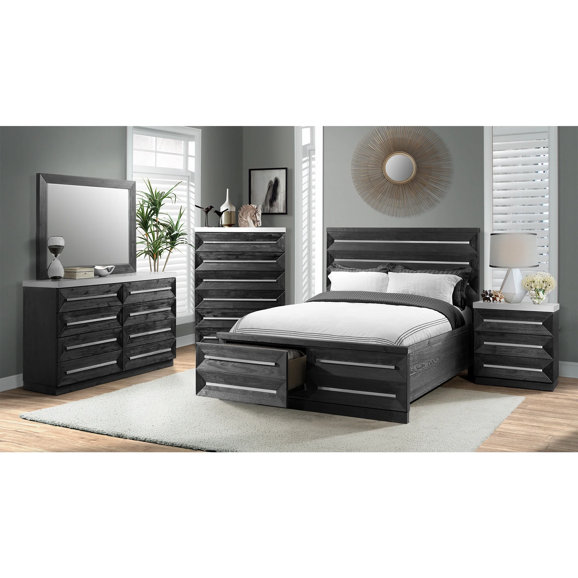 Modway Willow King Wood Platform Bed With Splayed Legs in Black Beige