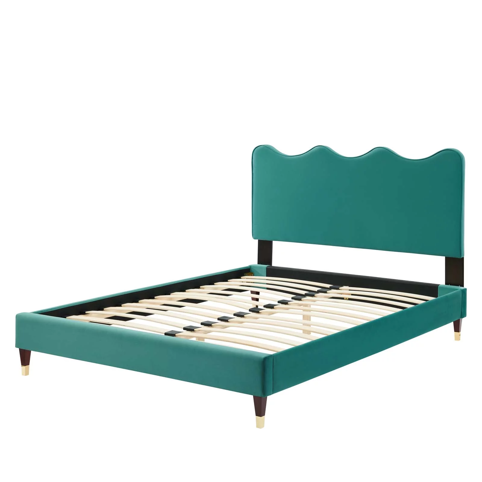 Platform Bed Frame, King Size, Teal Blue, Velvet, Modern Contemporary, Bedroom Master Guest Suite Room