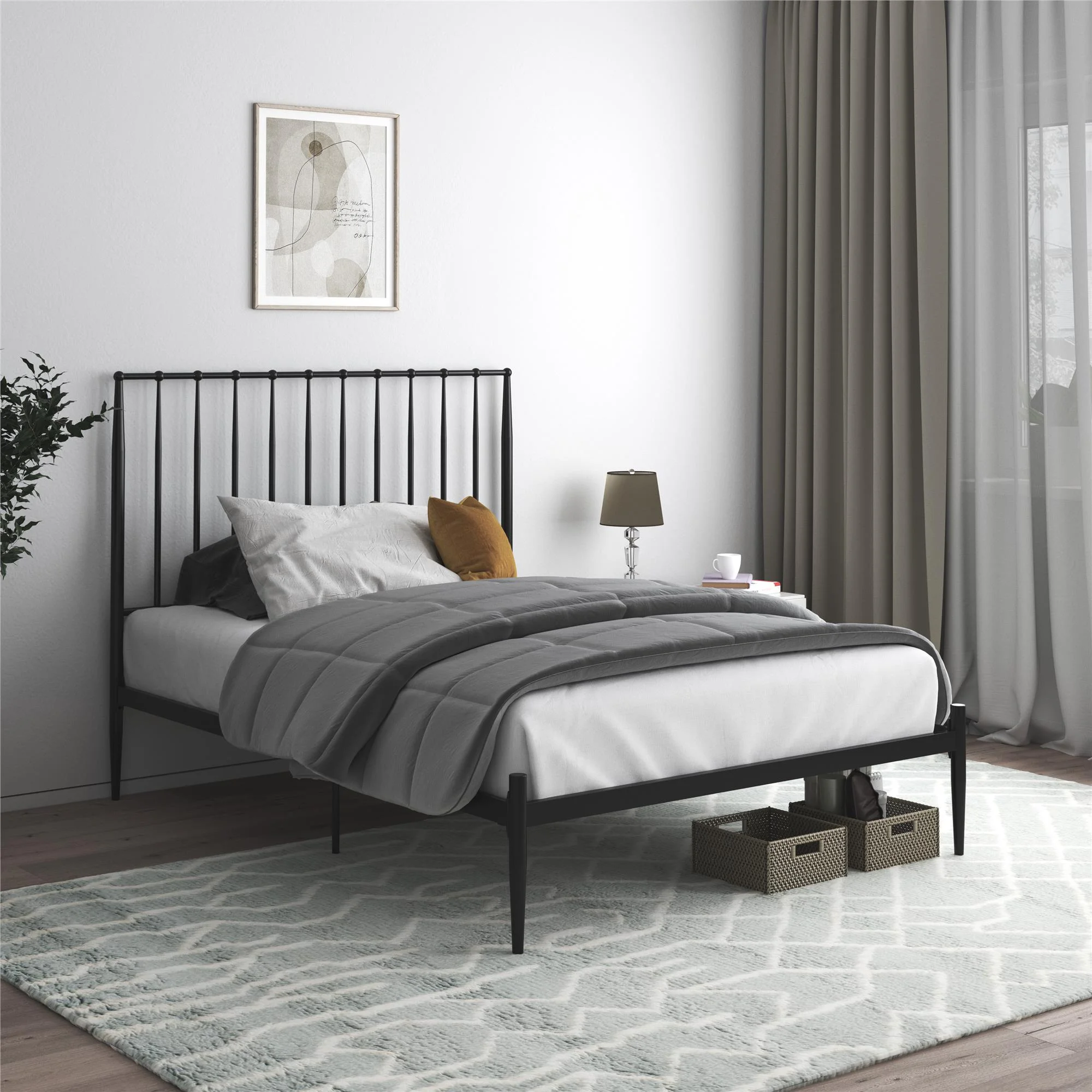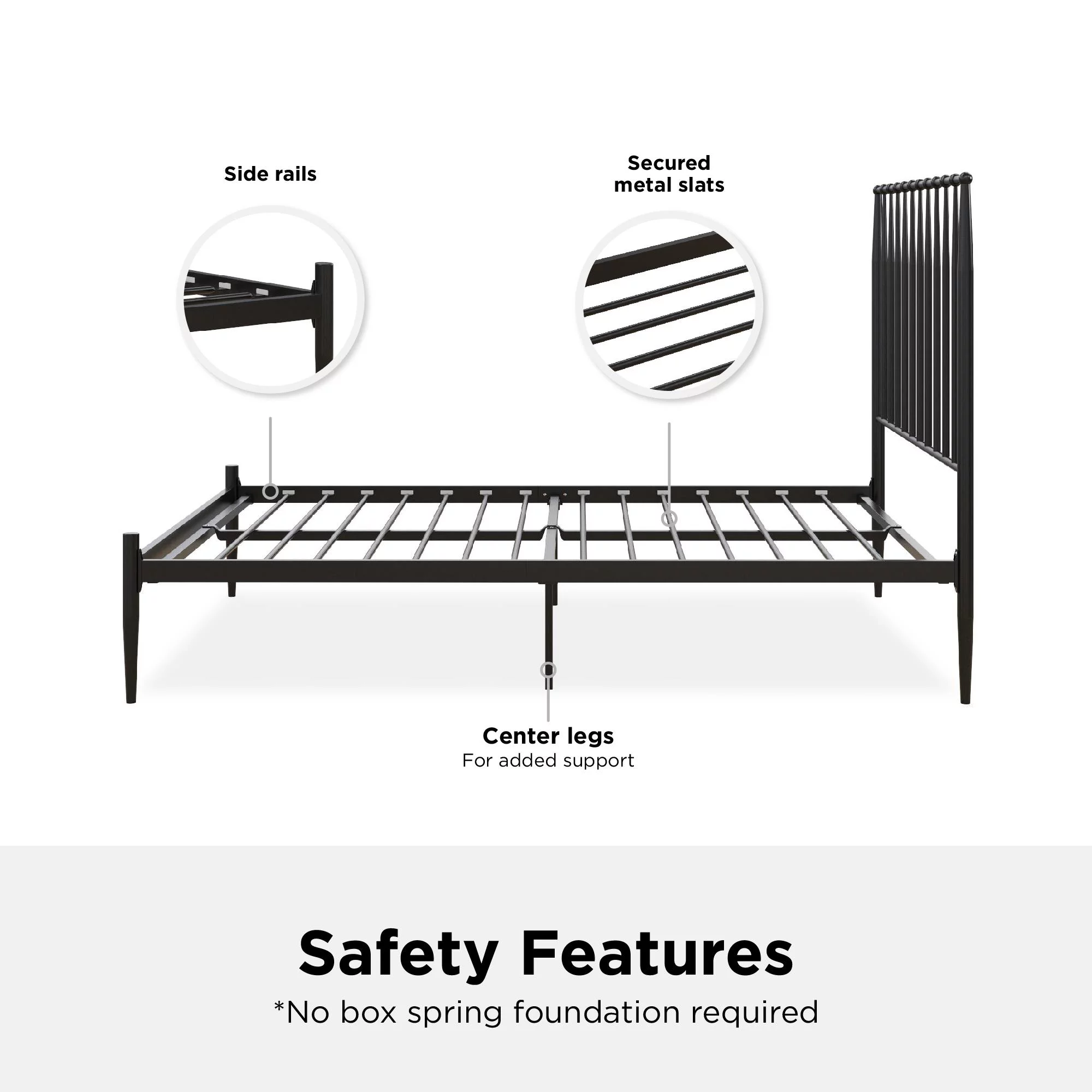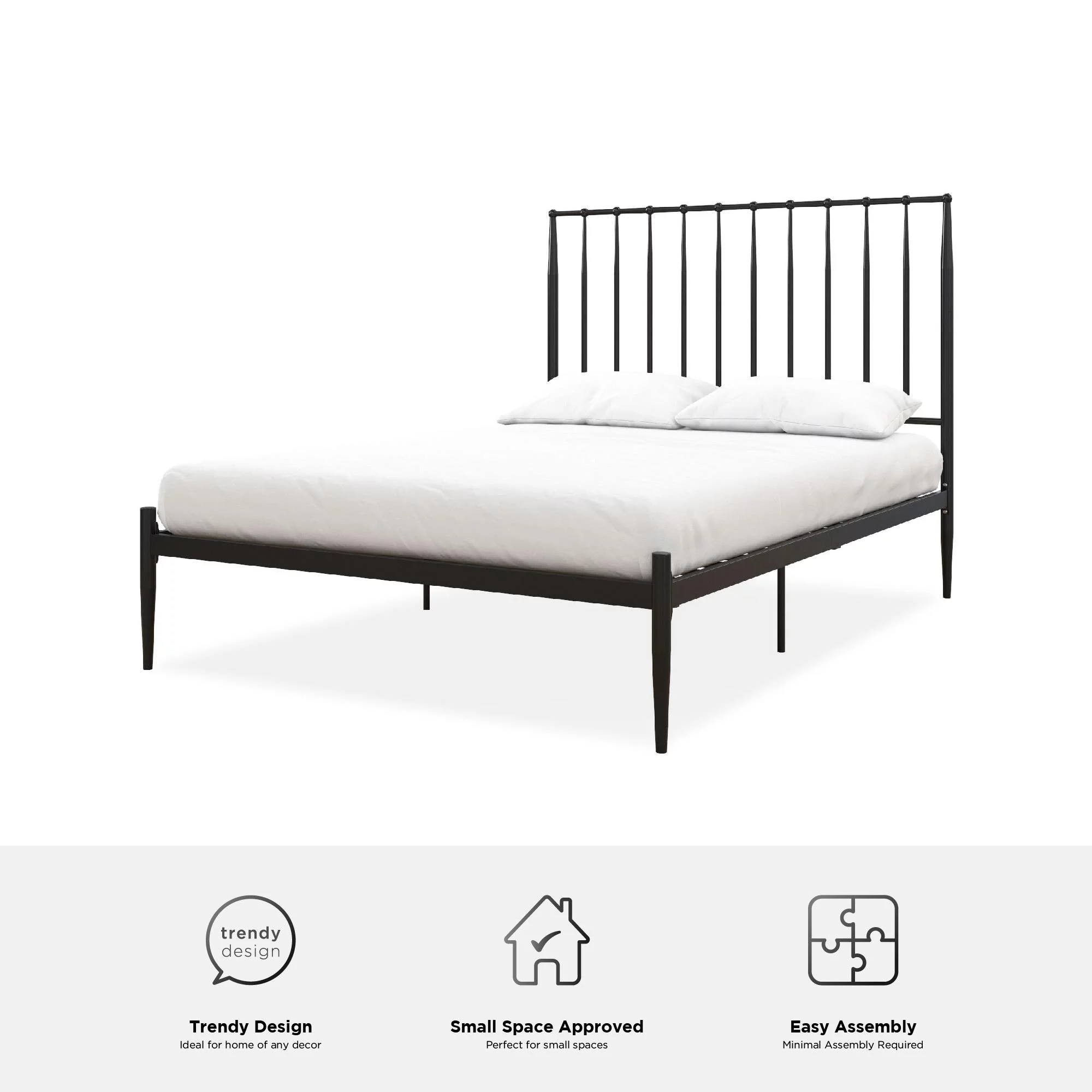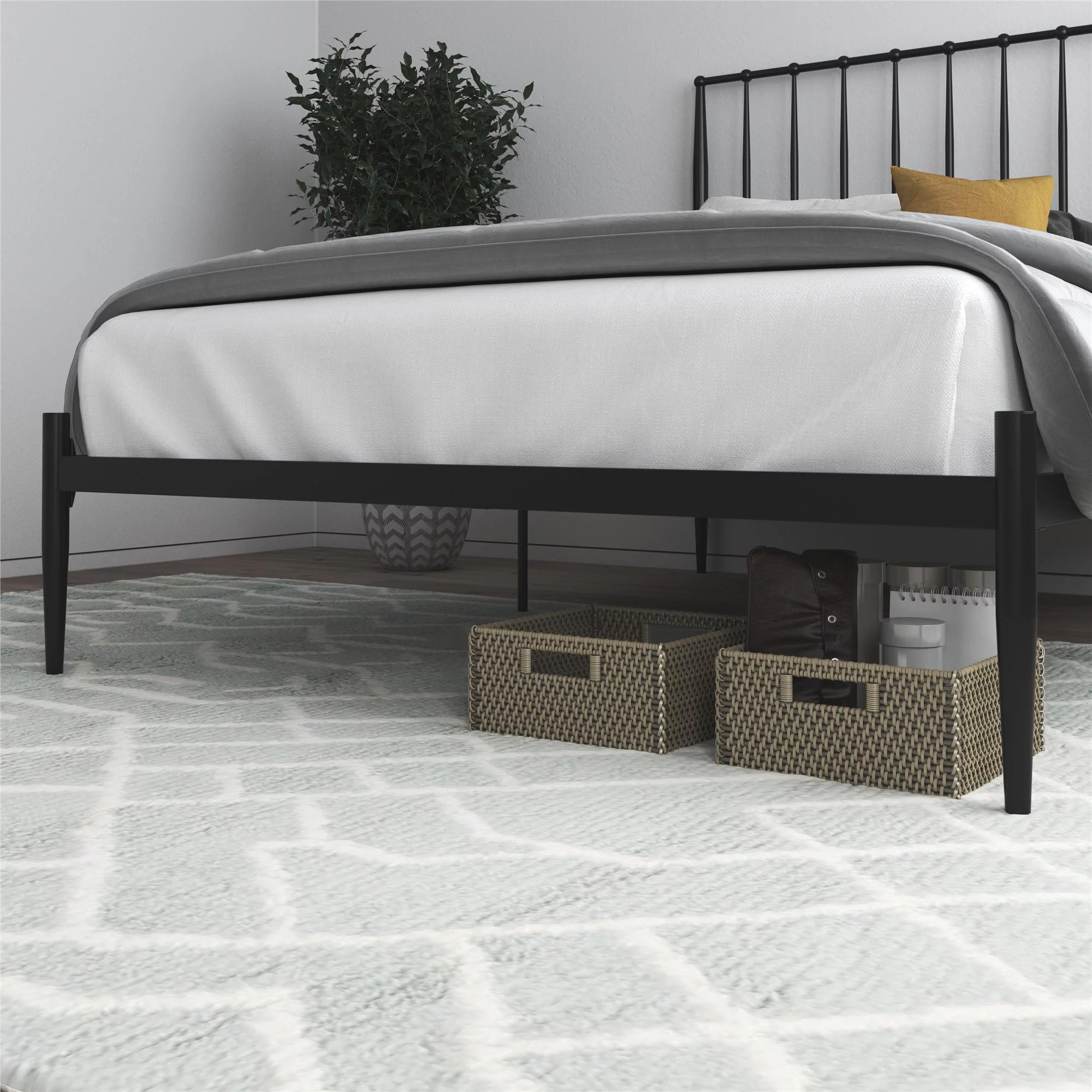DHP Gisel Modern Metal Platform Bed with Headboard and Underbed Storage Space, Queen, Black