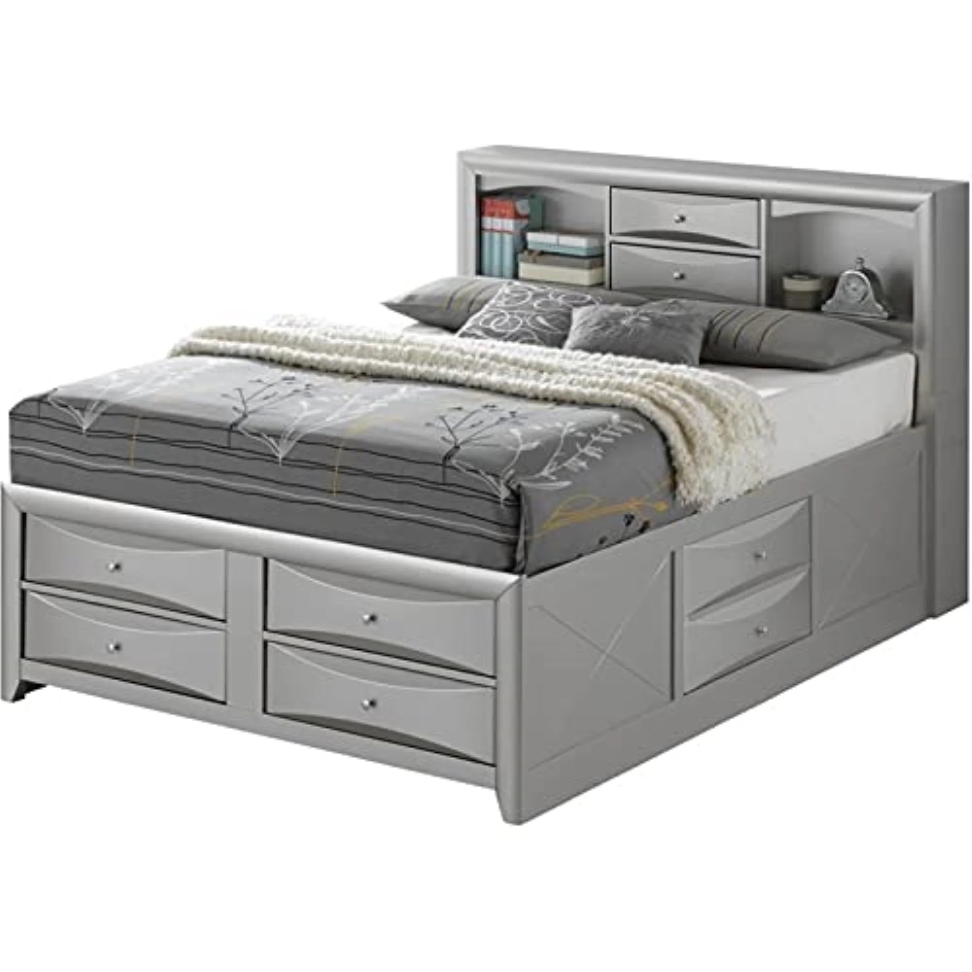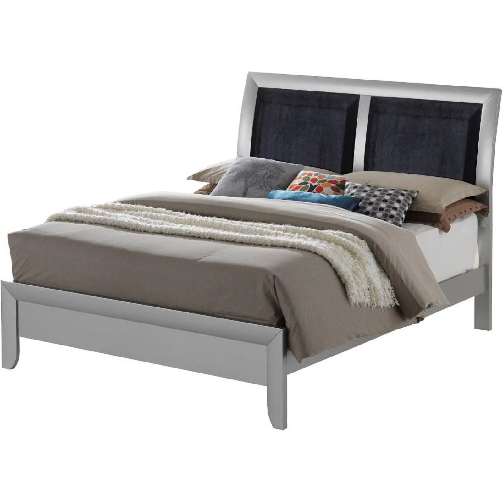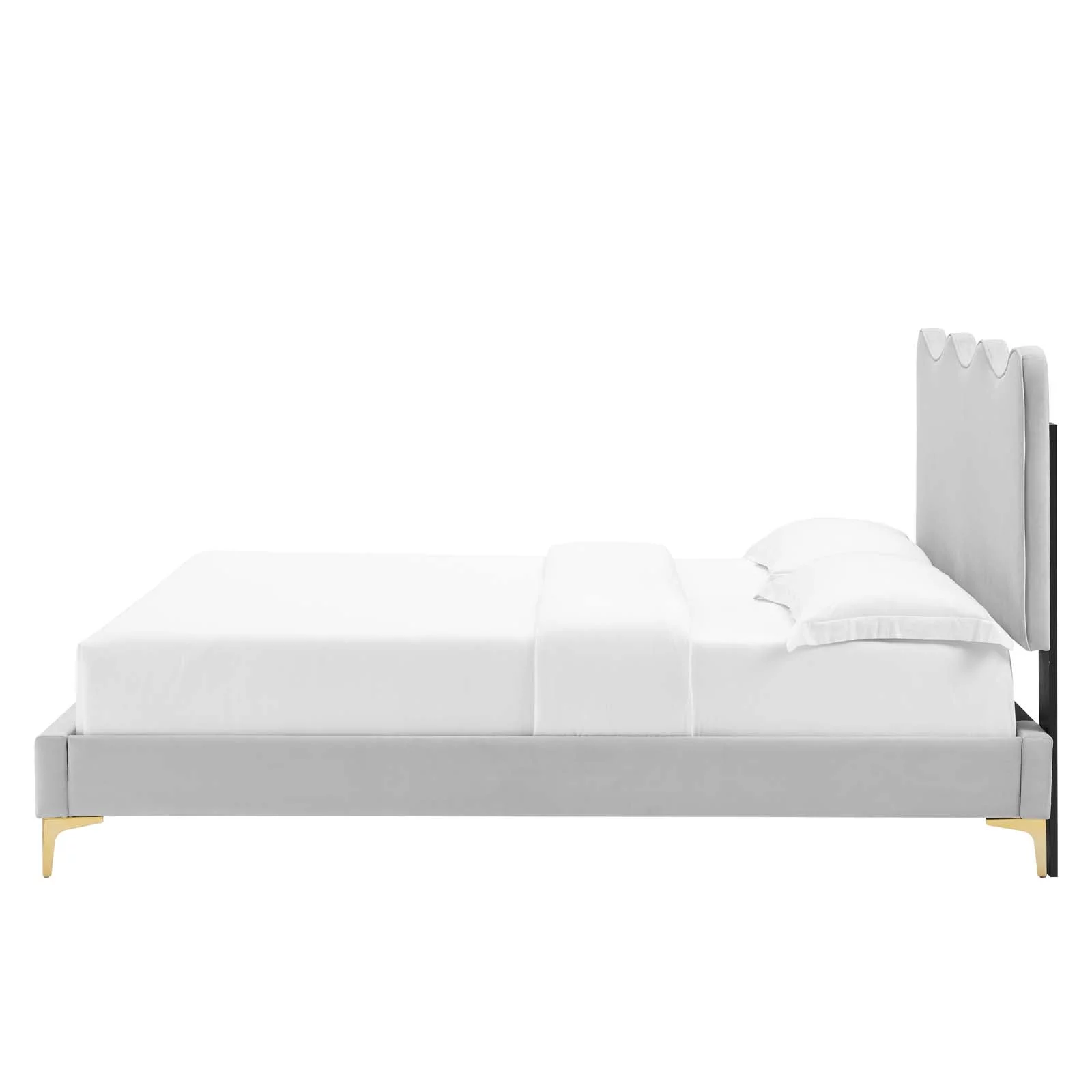 Platform Bed Frame, King Size, Grey Gray, Velvet, Modern Contemporary, Bedroom Master Guest Suite Room