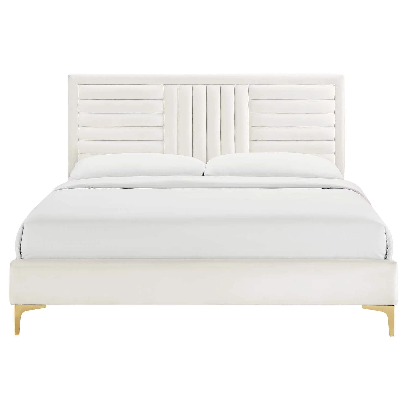 Modway Sofia Channel Tufted Performance Velvet King Platform Bed in White