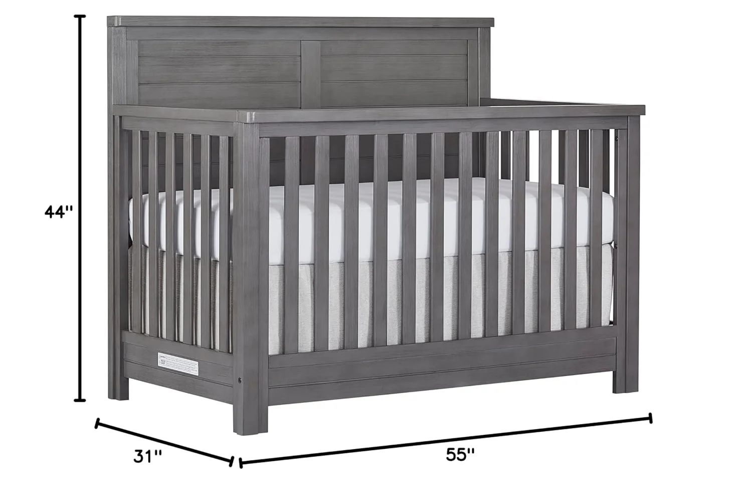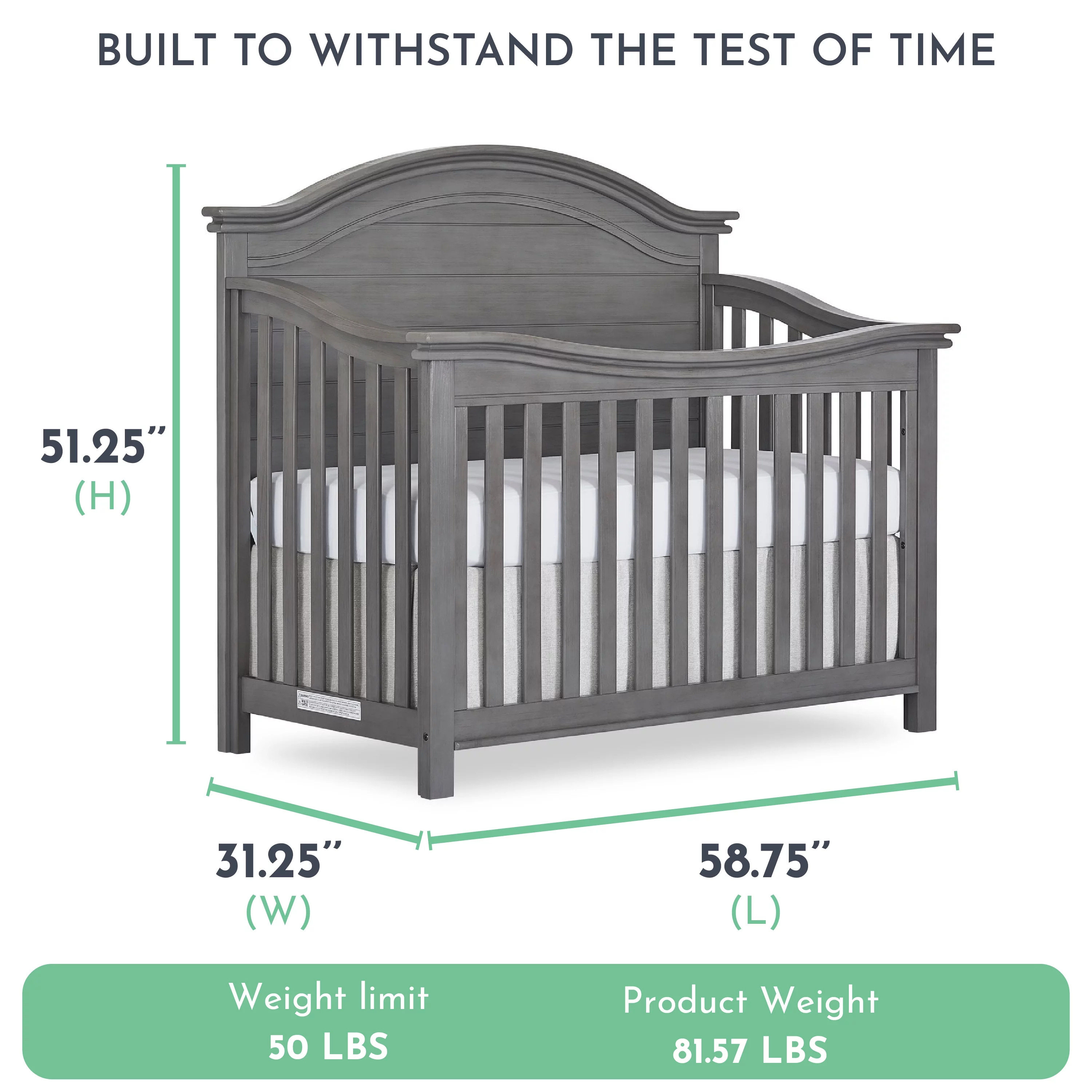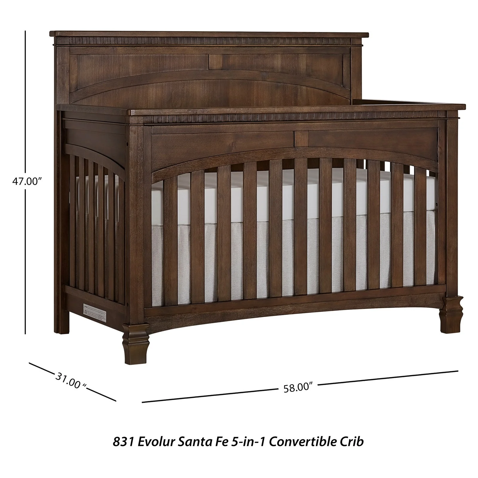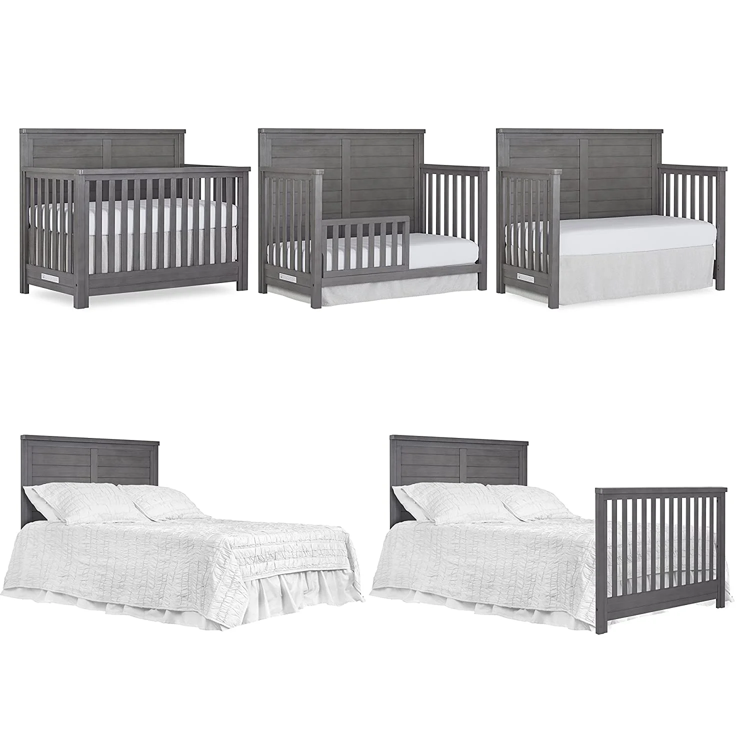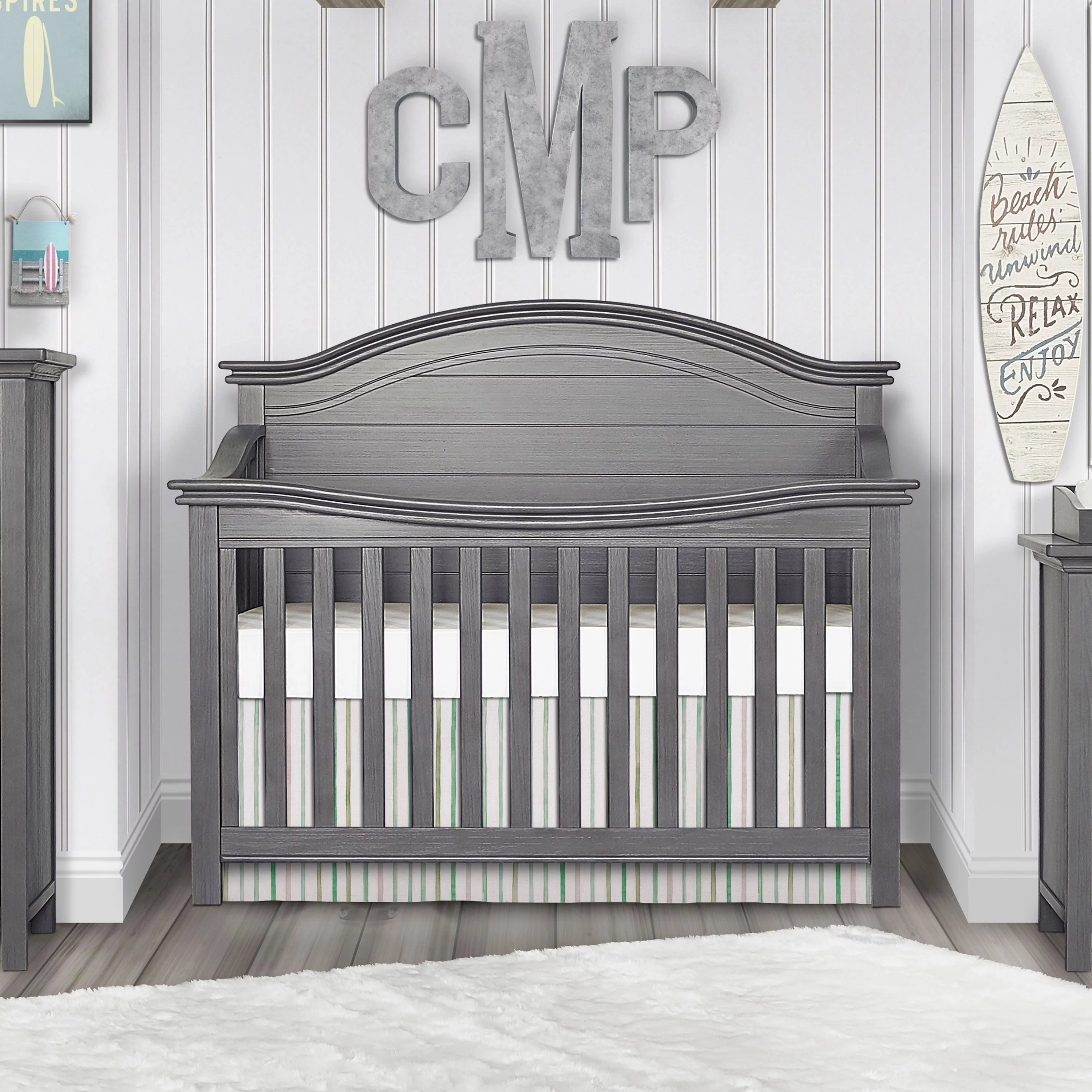 Evolur Belmar Curve 5-in-1 Convertible Crib in Rustic Grey, Greenguard Gold Certified