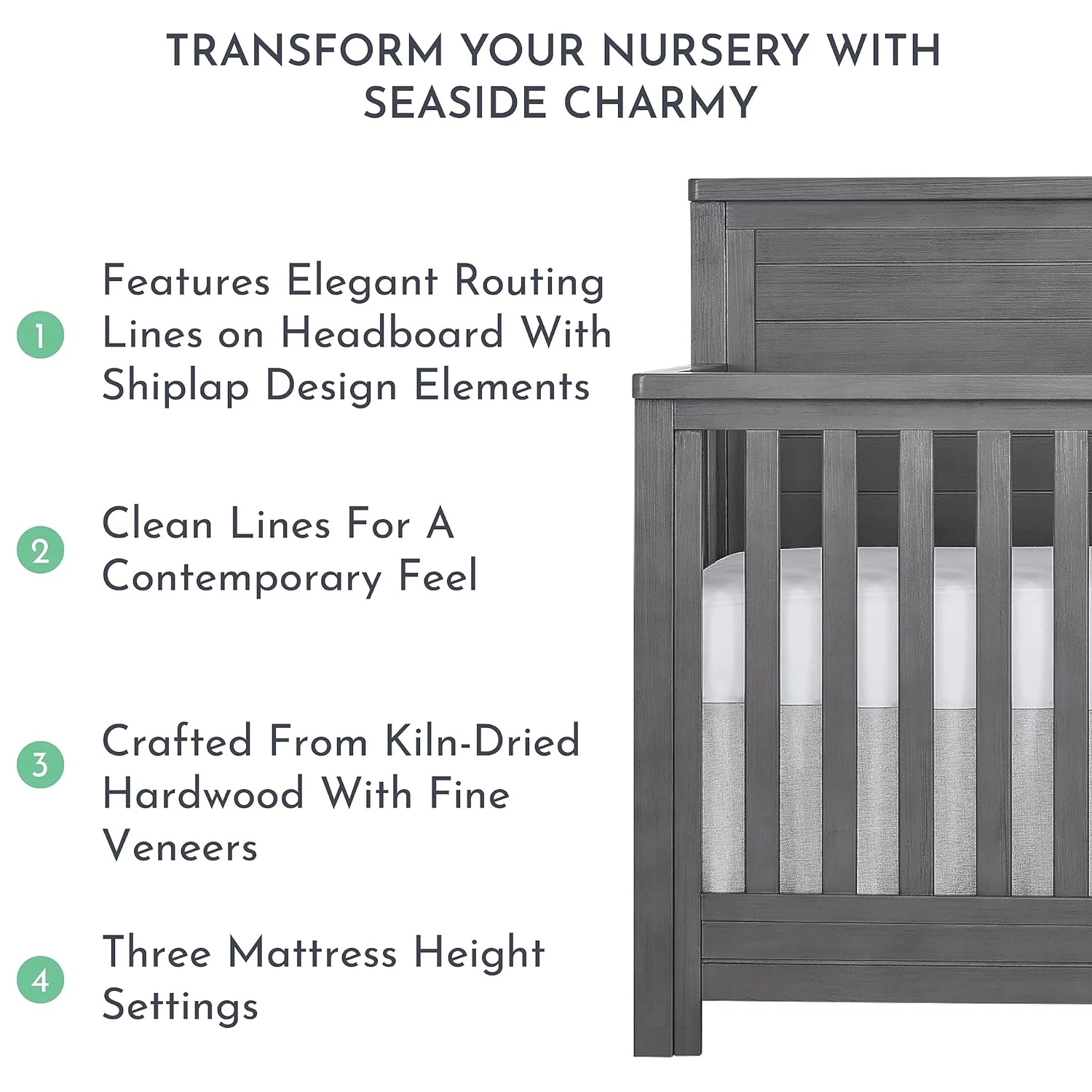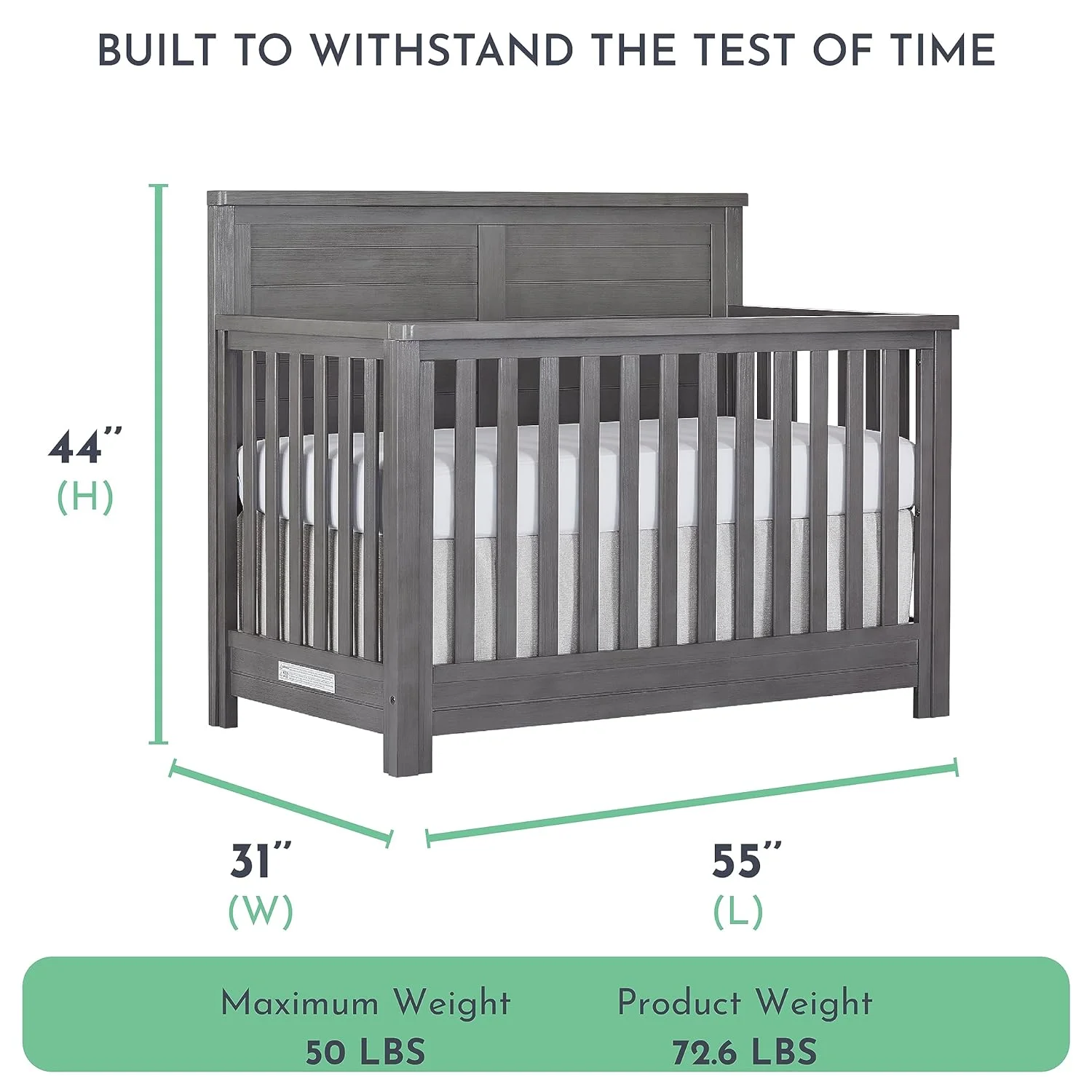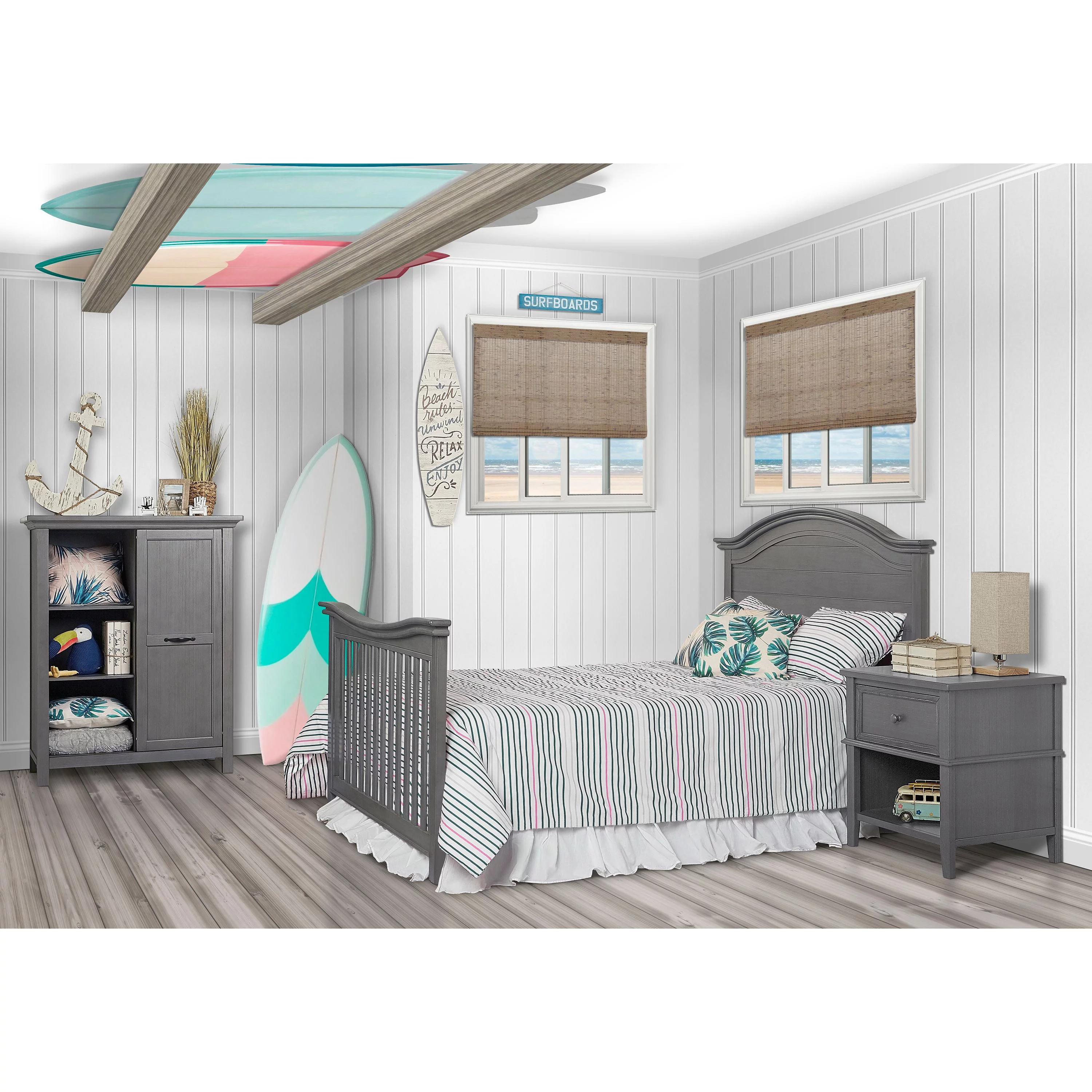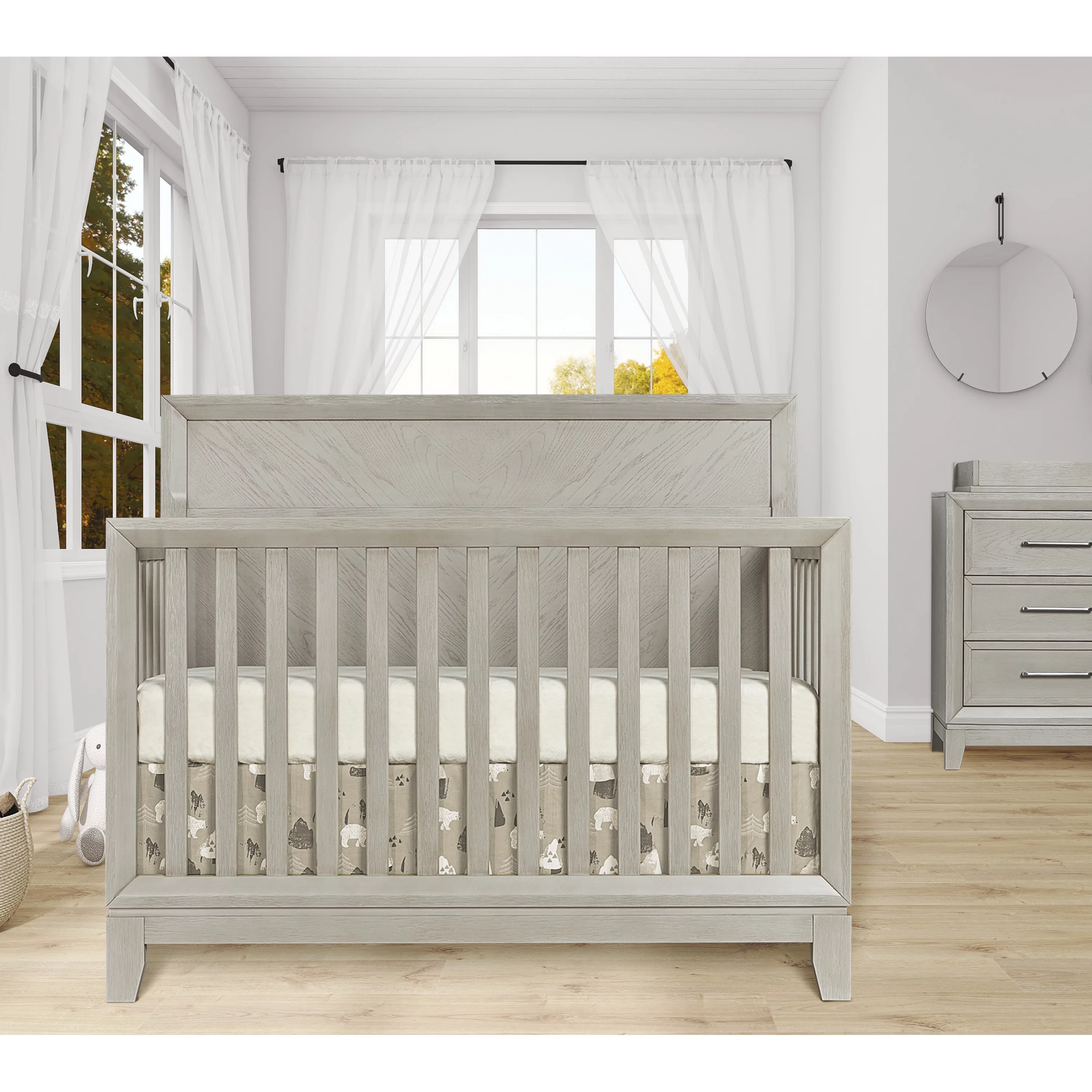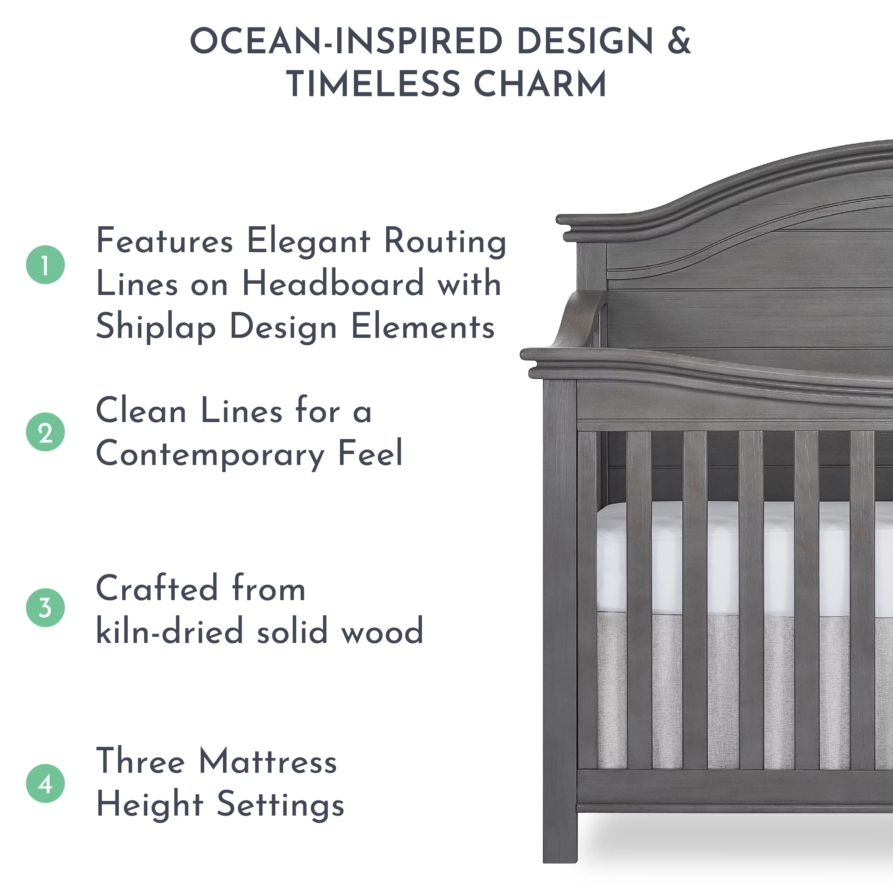 Evolur Belmar Curve 5-in-1 Convertible Crib in Rustic Grey, Greenguard Gold Certified