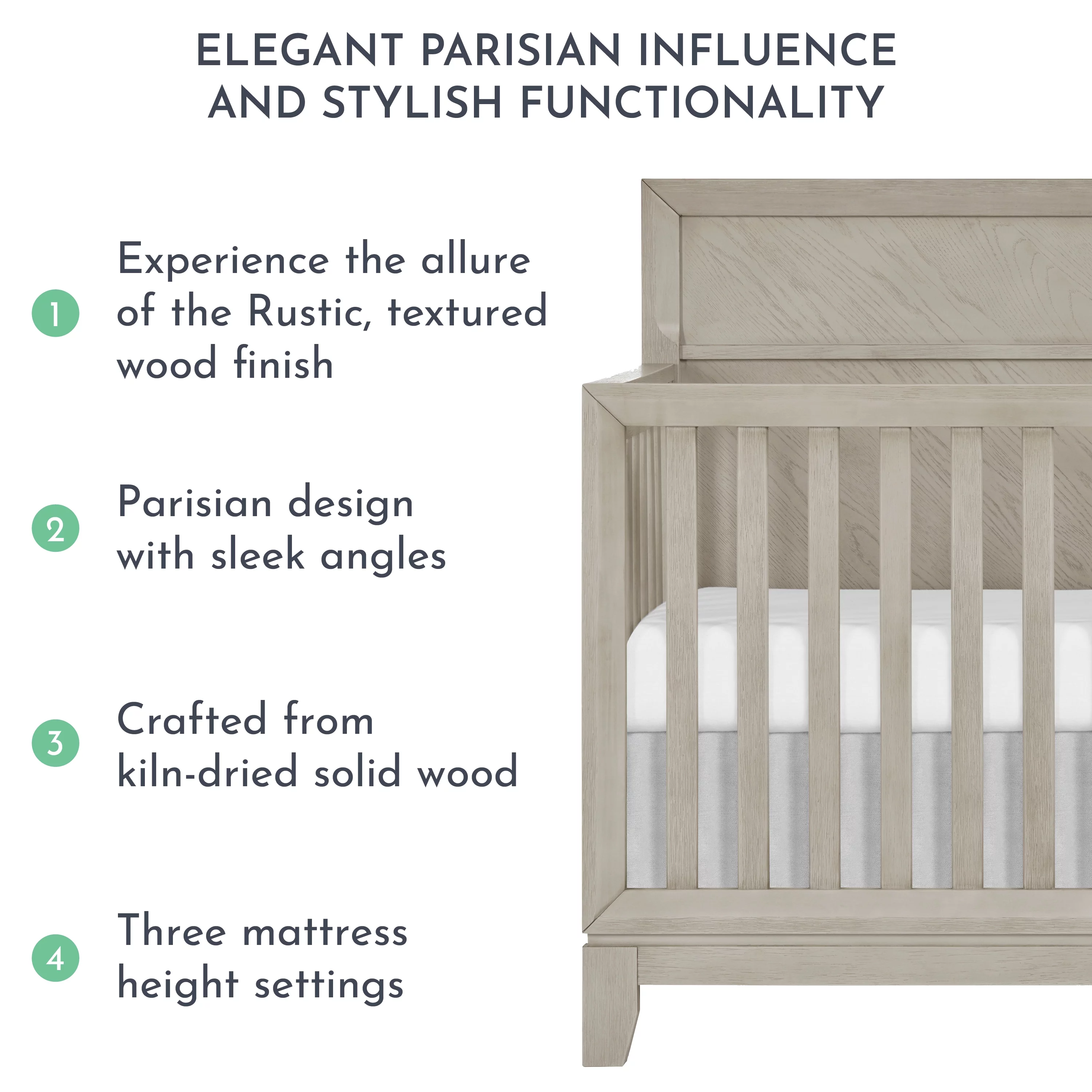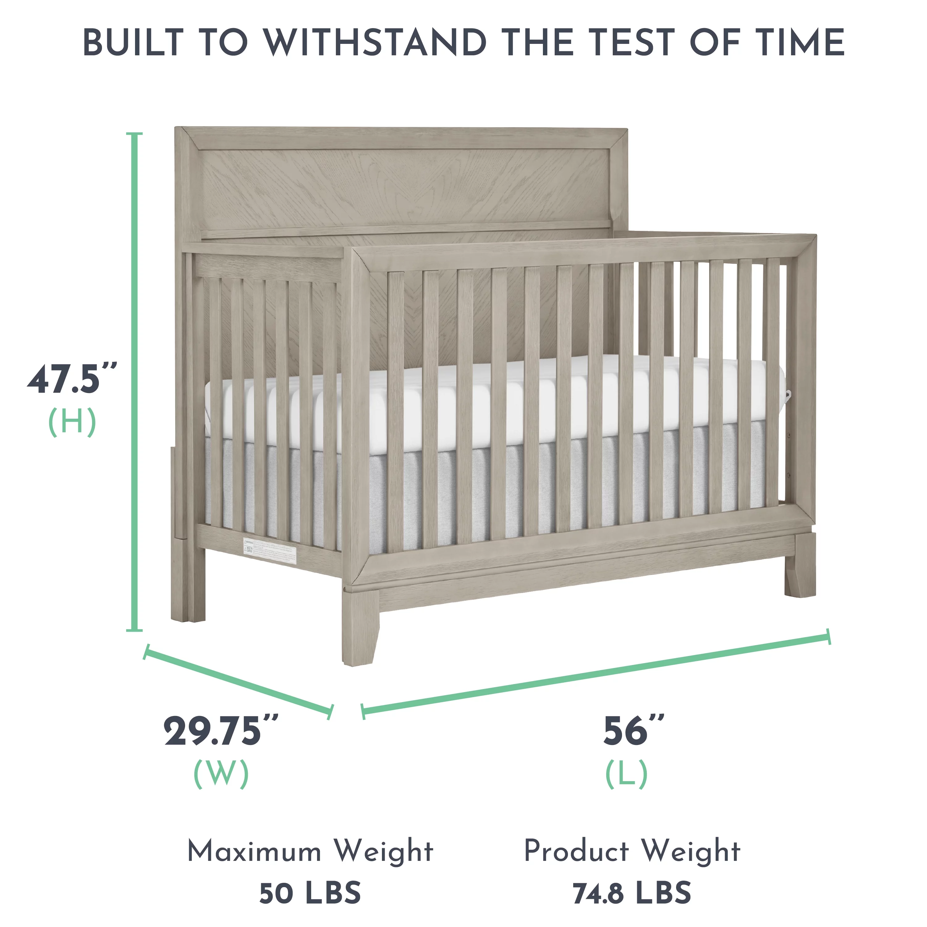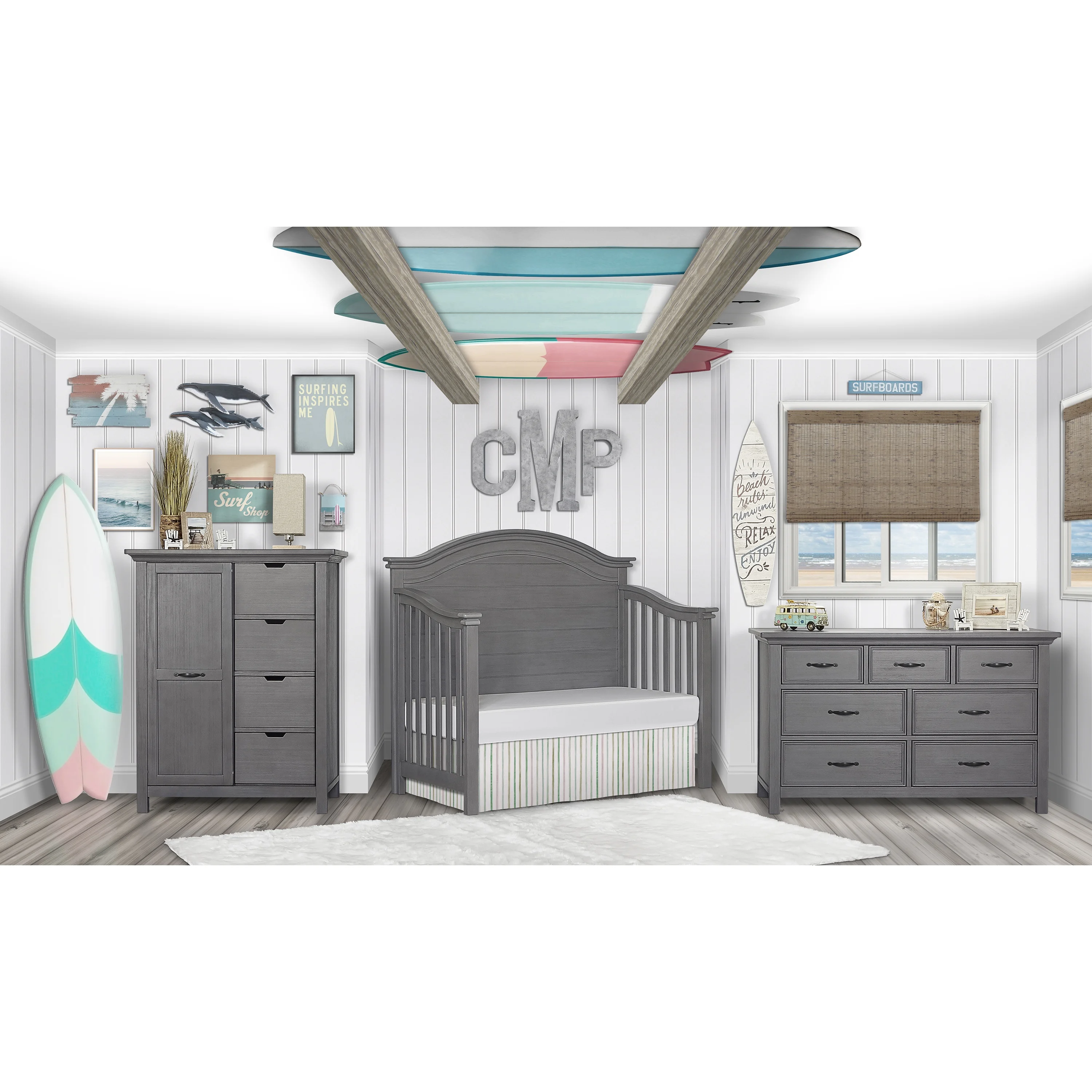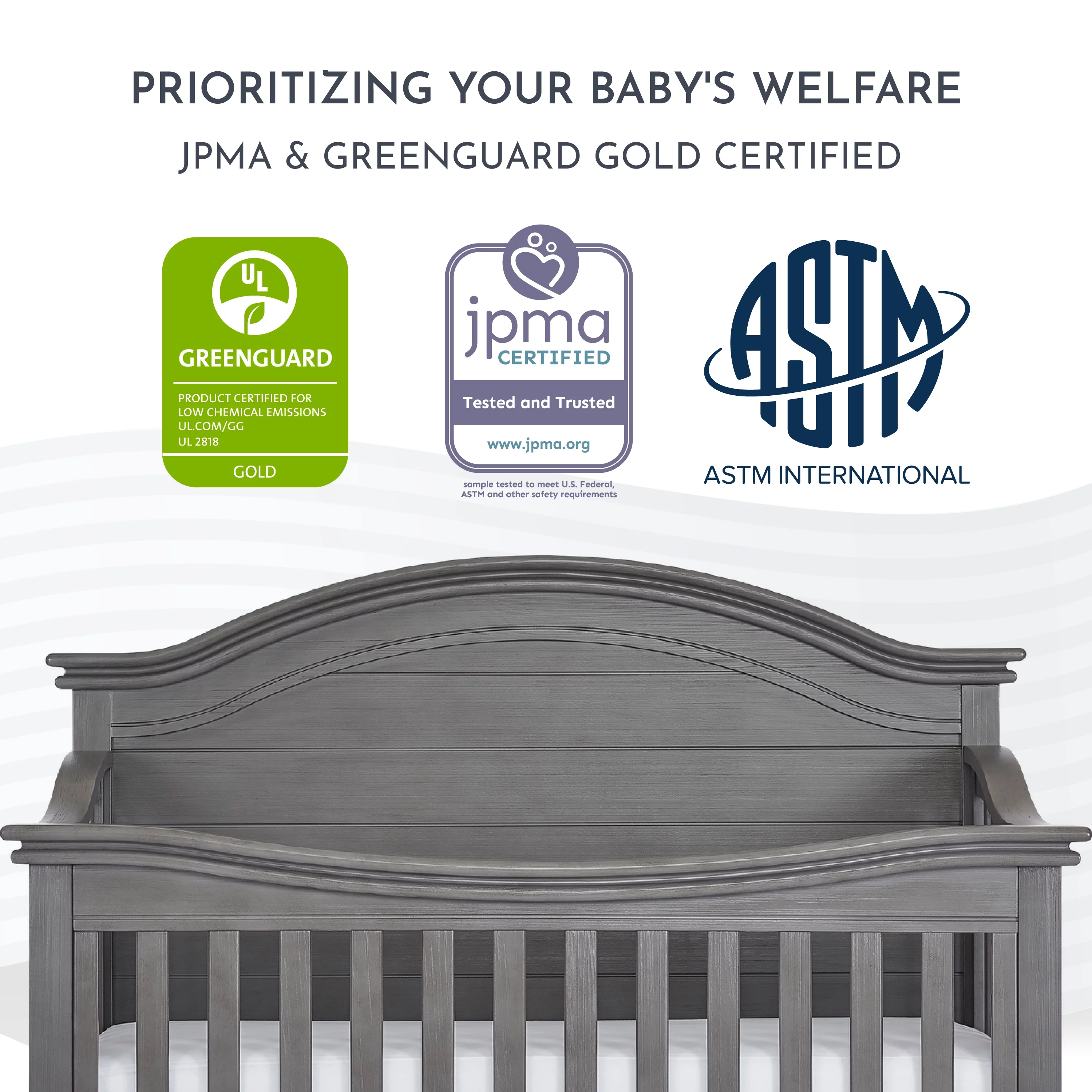 Evolur Belmar Curve 5-in-1 Convertible Crib in Rustic Grey, Greenguard Gold Certified