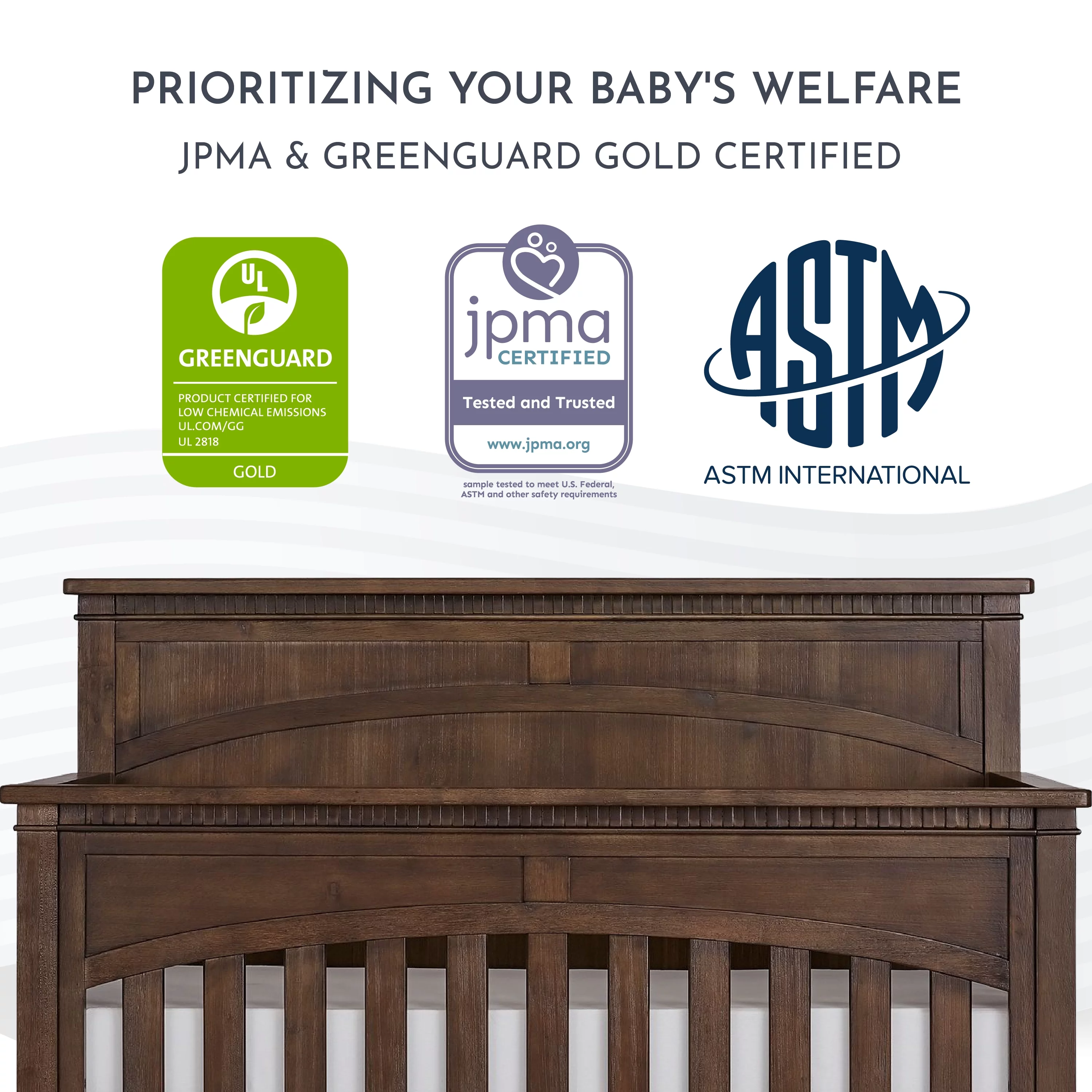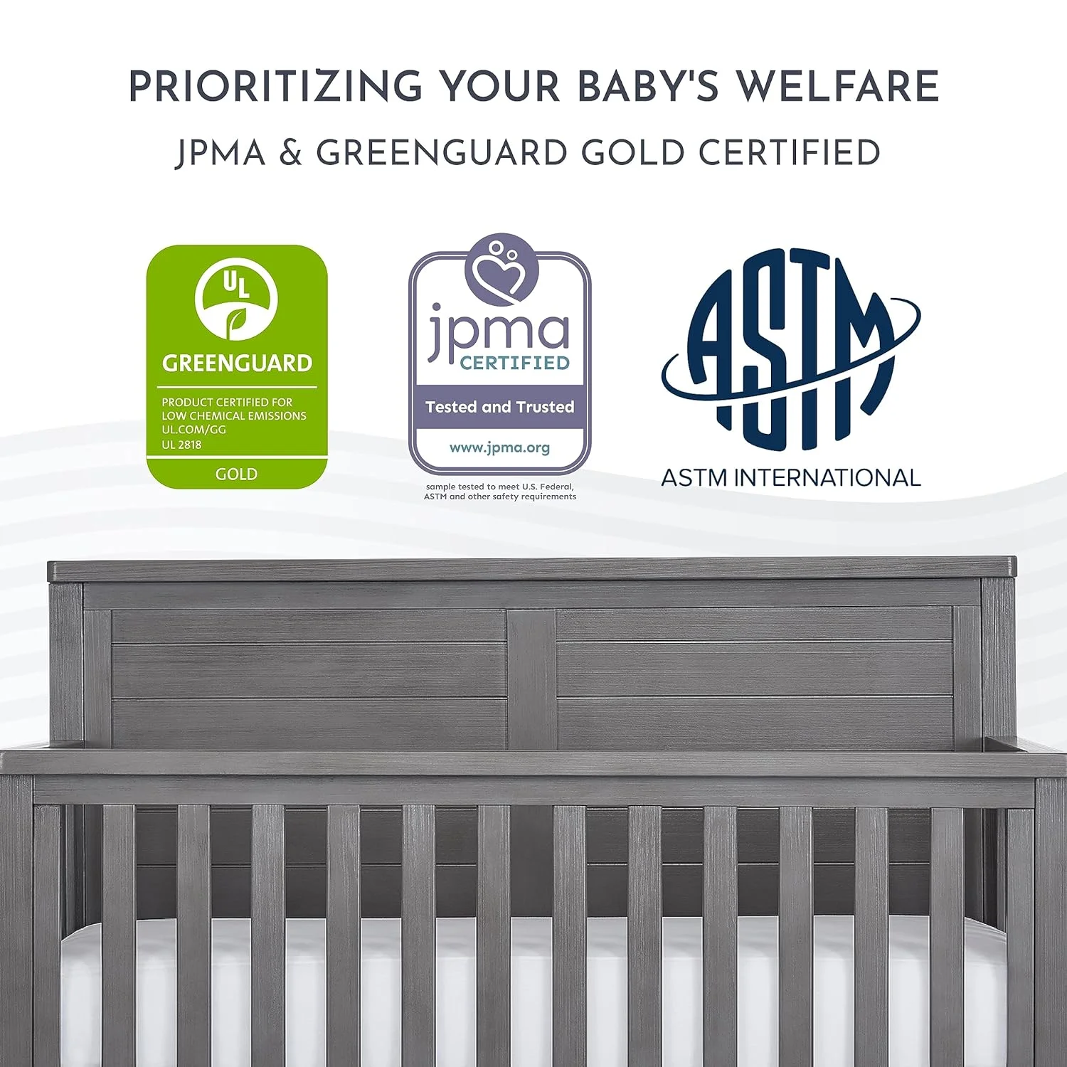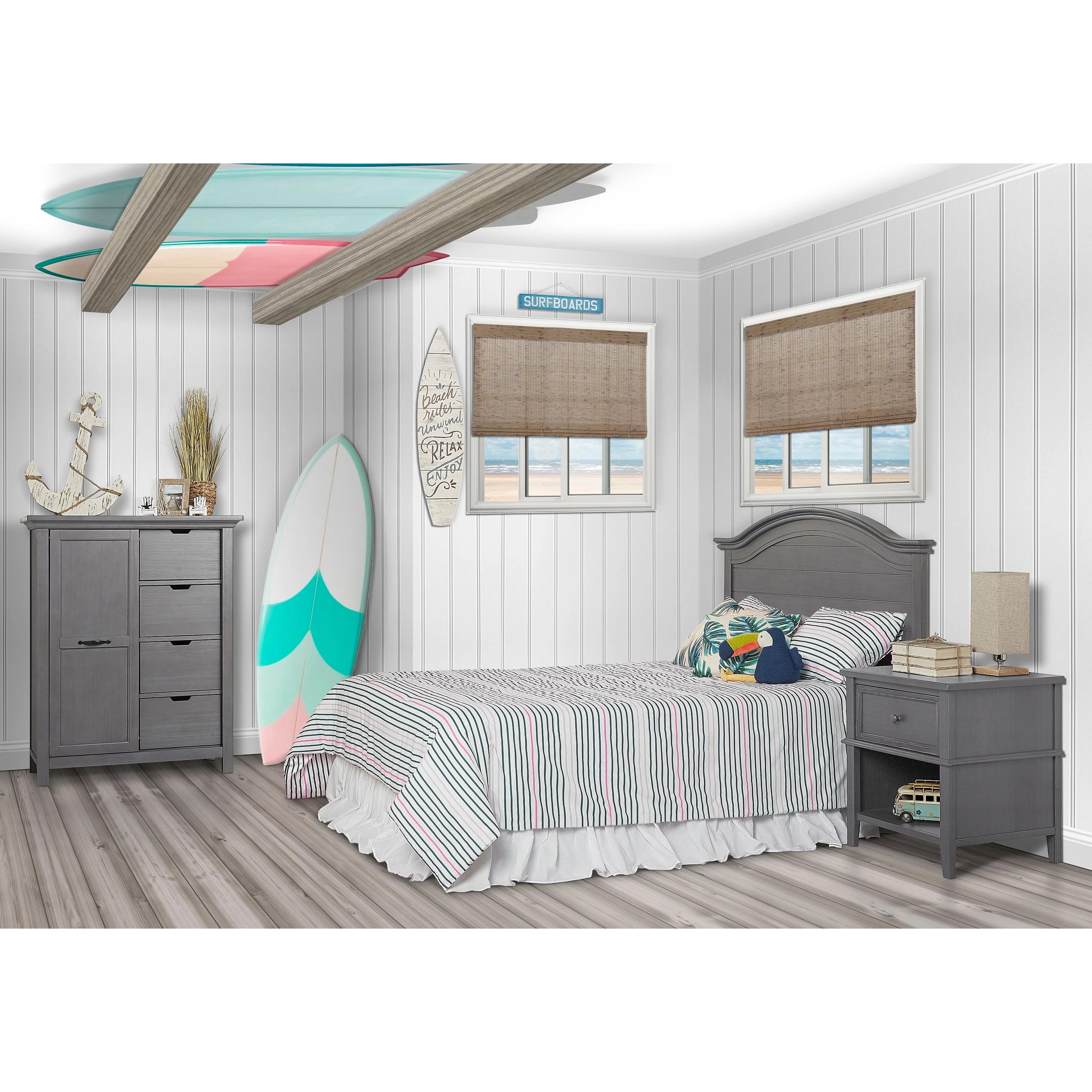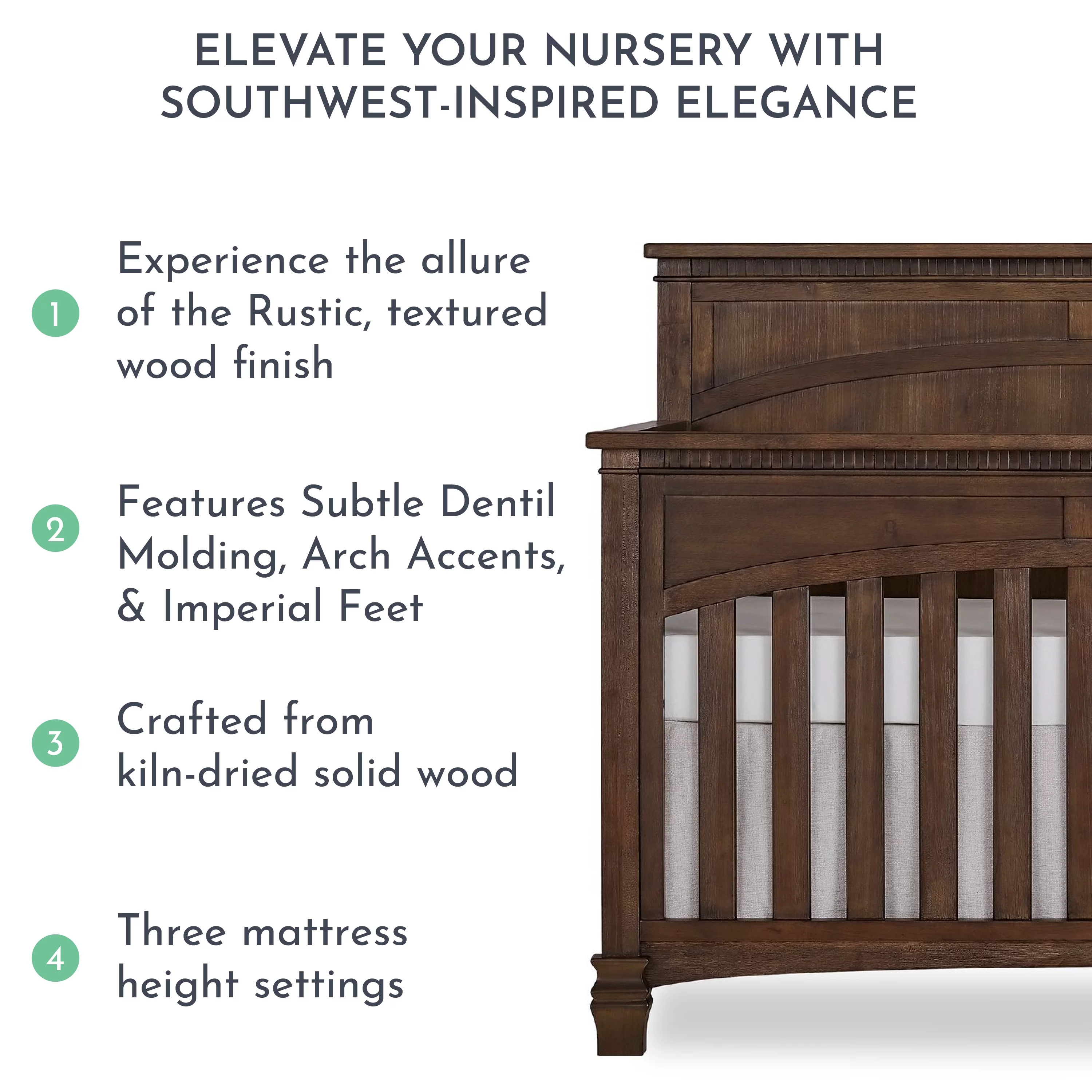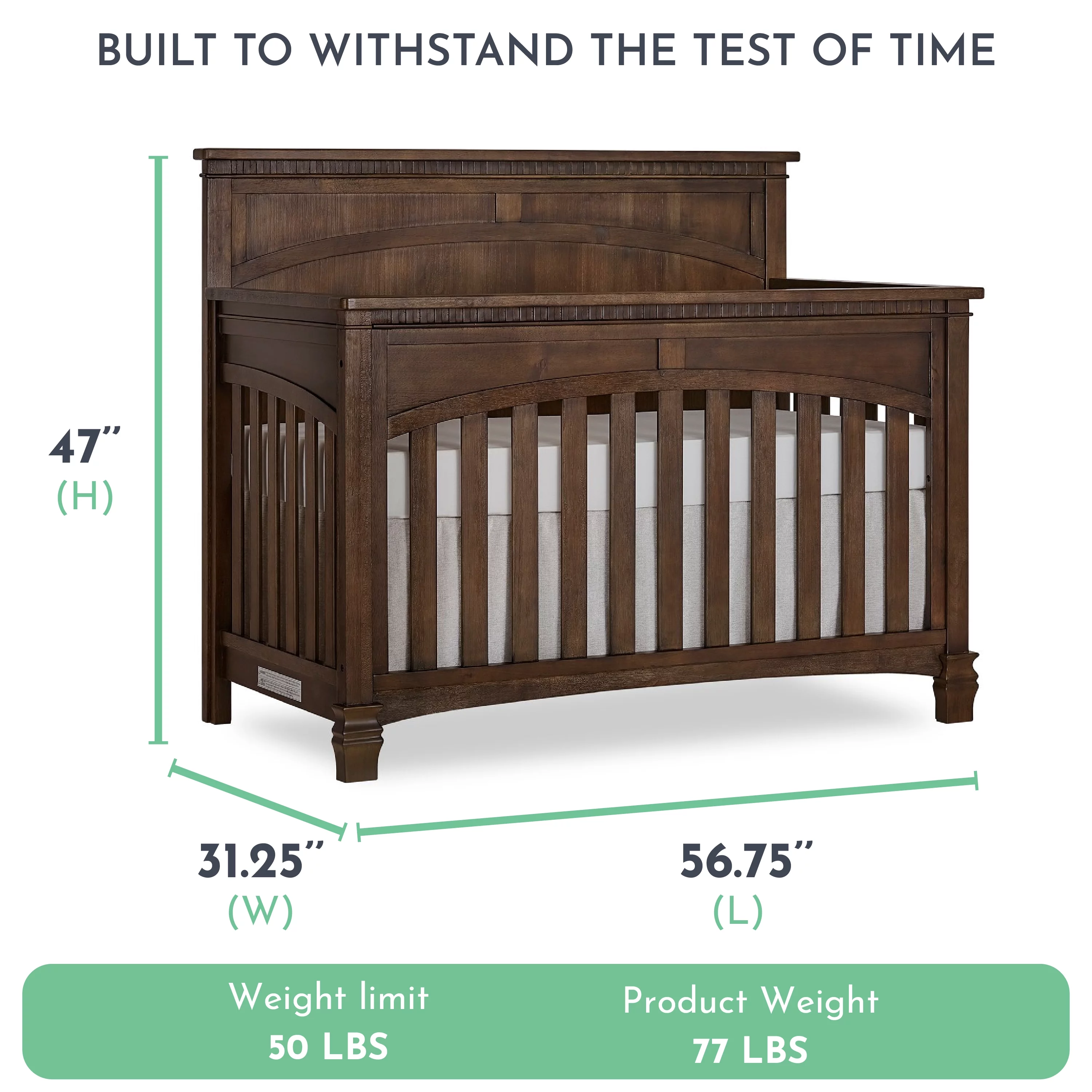 Evolur Belmar Curve 5-in-1 Convertible Crib in Rustic Grey, Greenguard Gold Certified