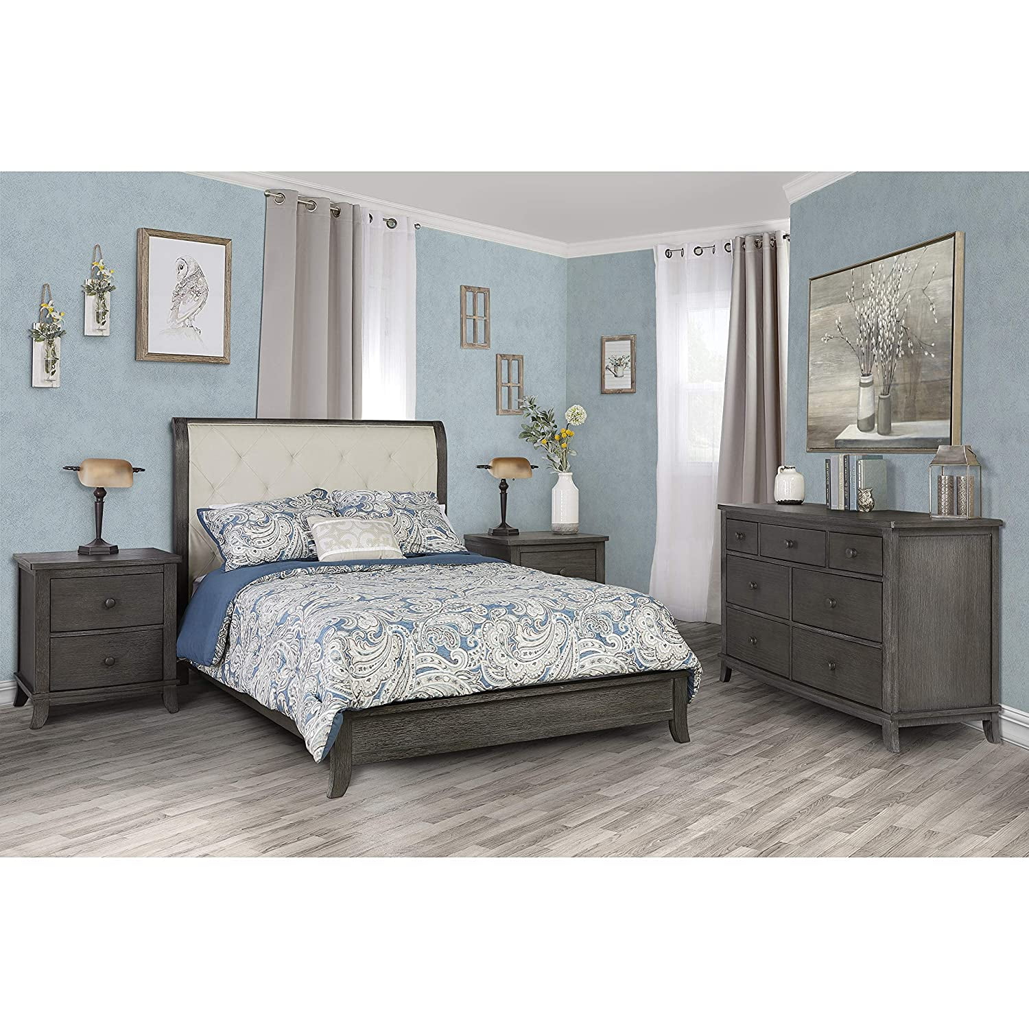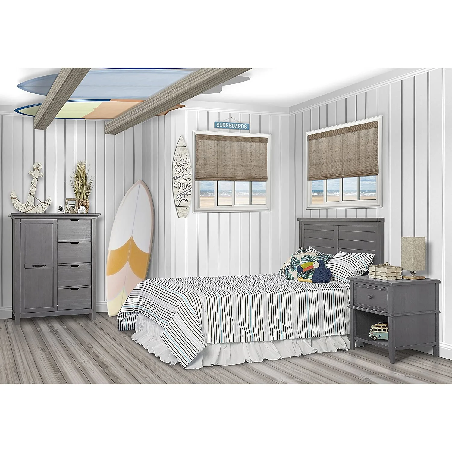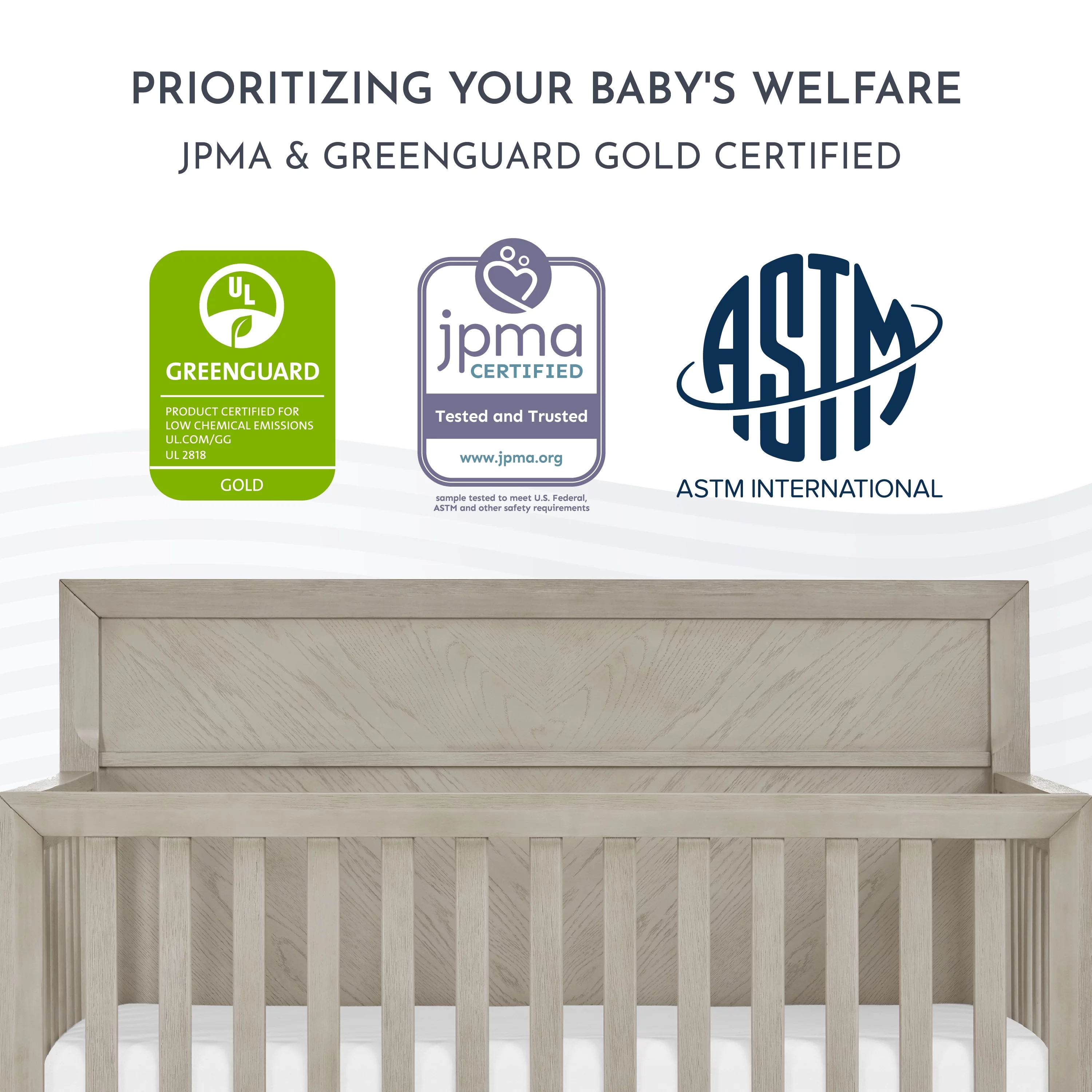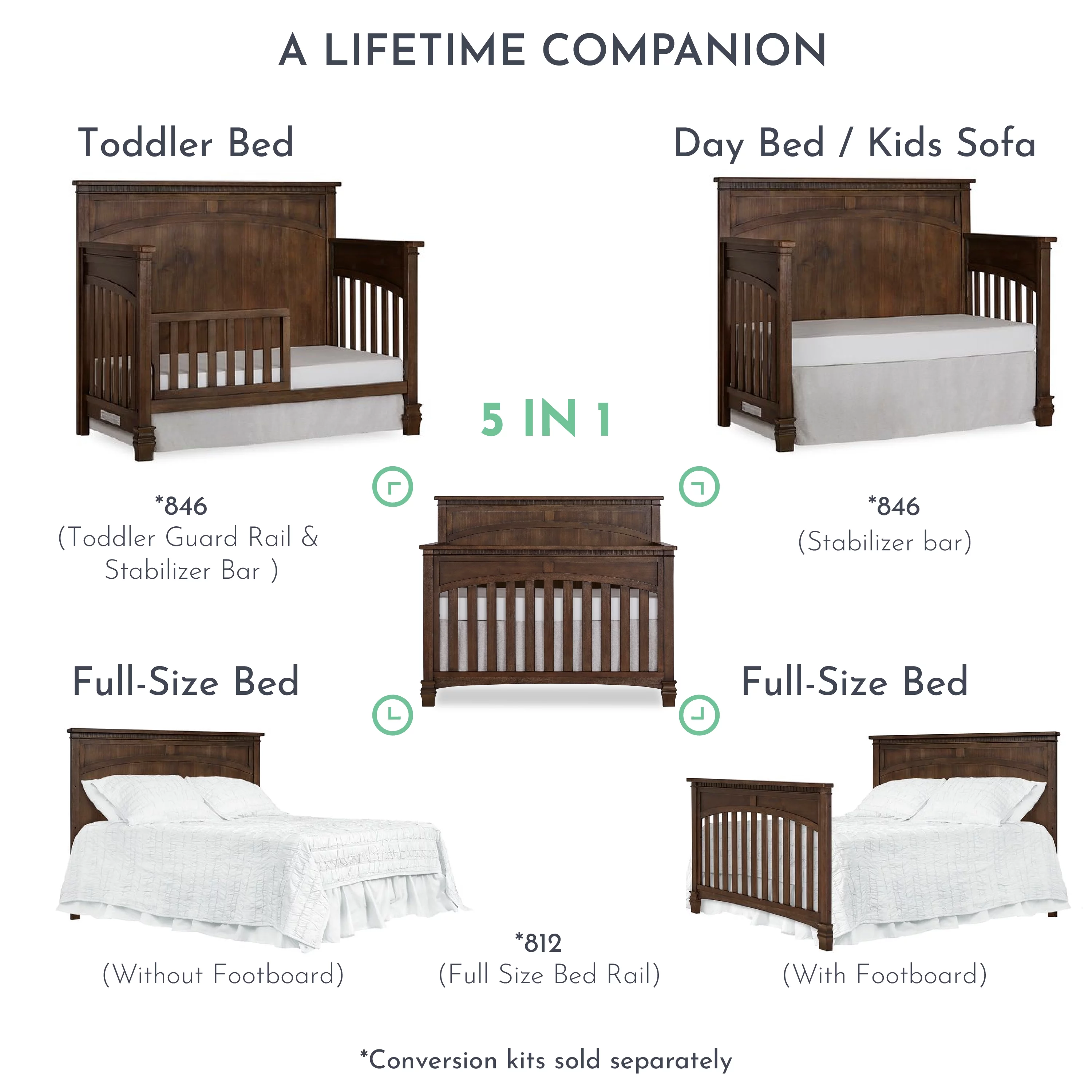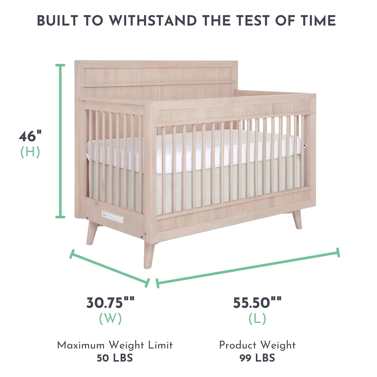 Evolur Belmar Curve 5-in-1 Convertible Crib in Rustic Grey, Greenguard Gold Certified