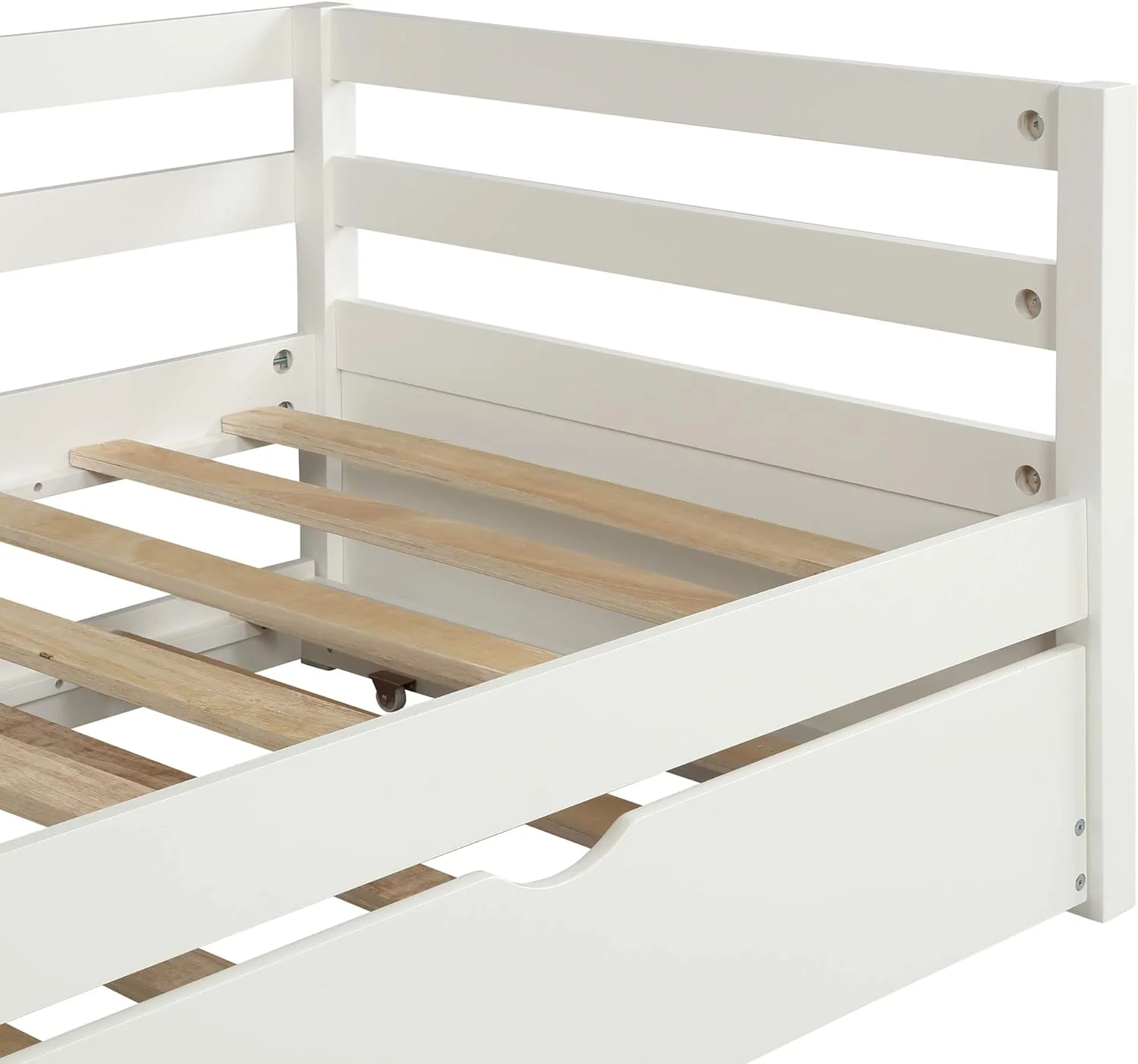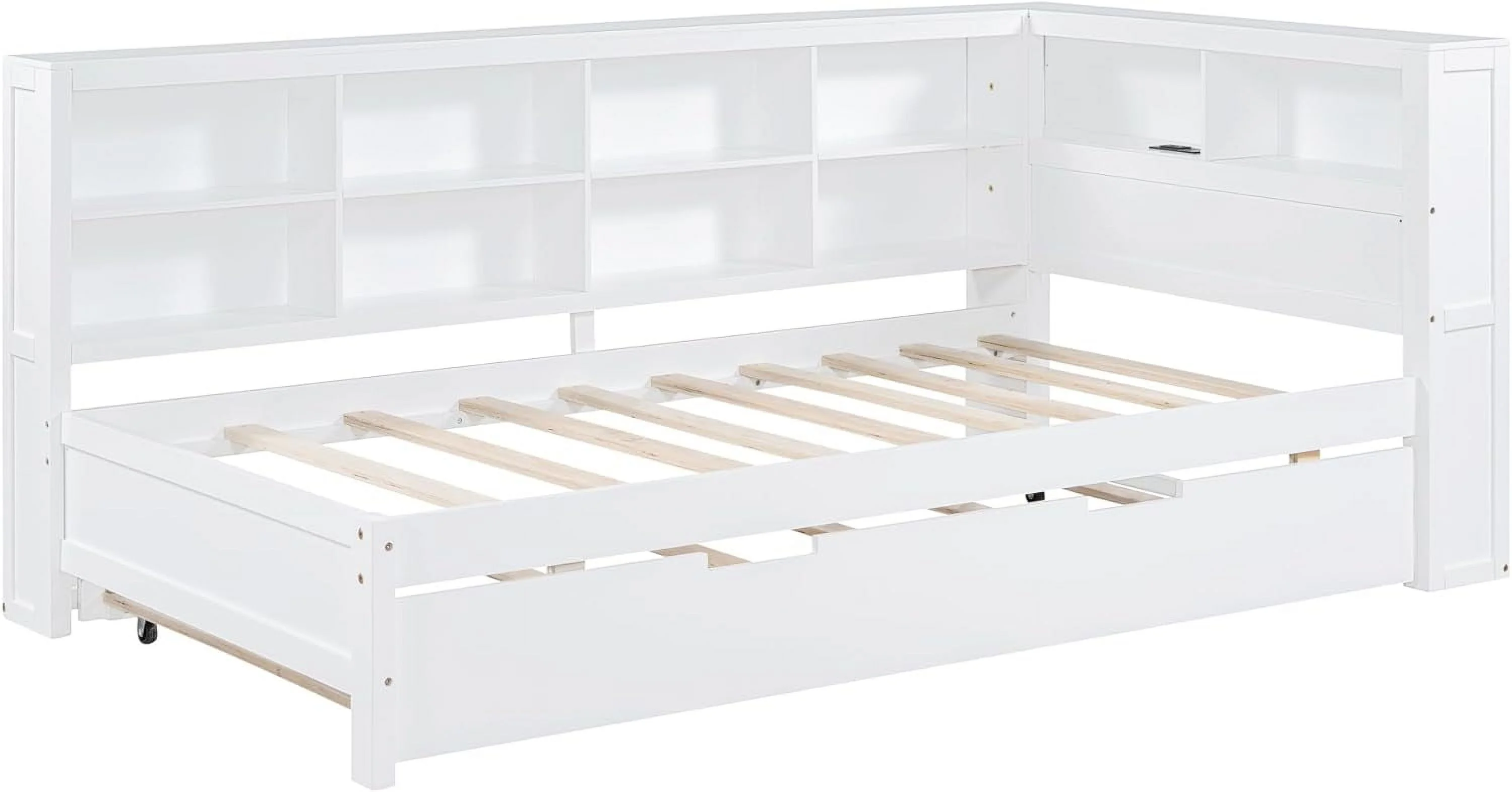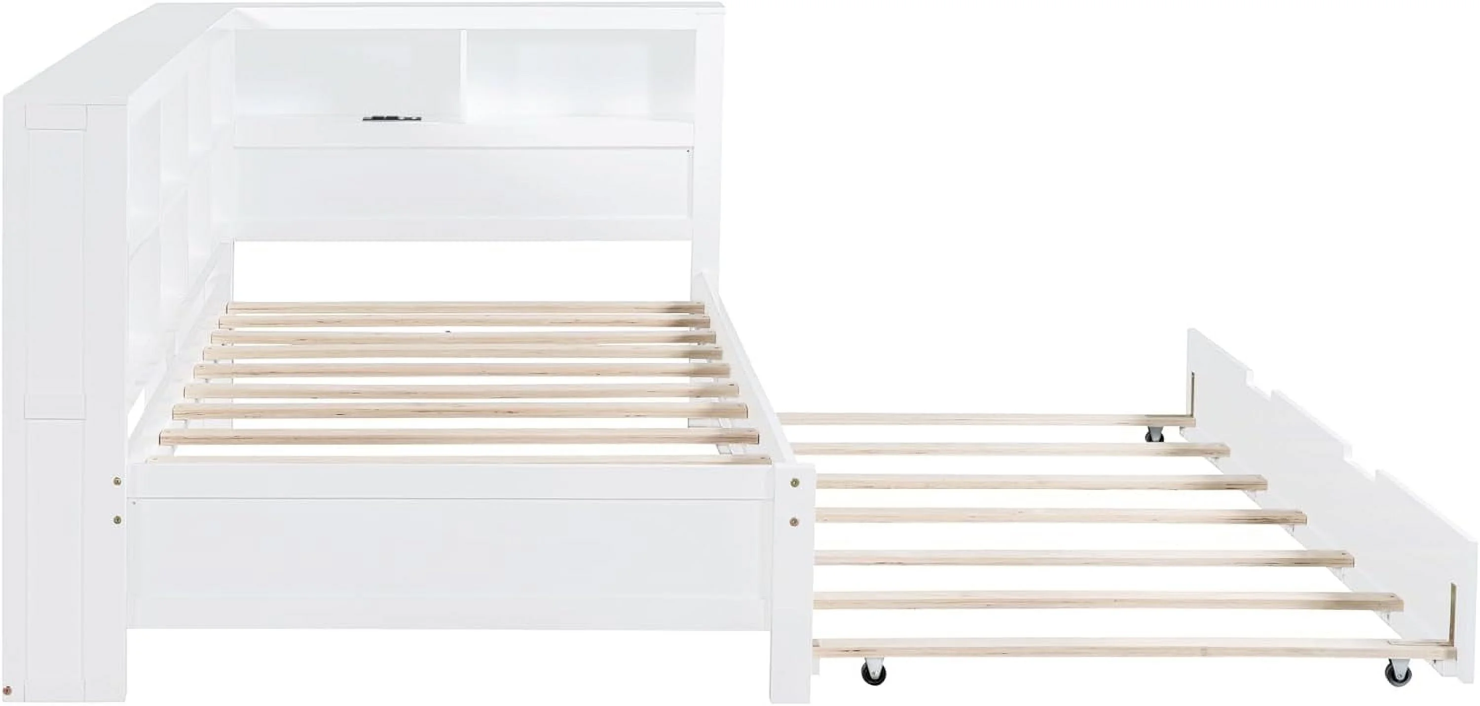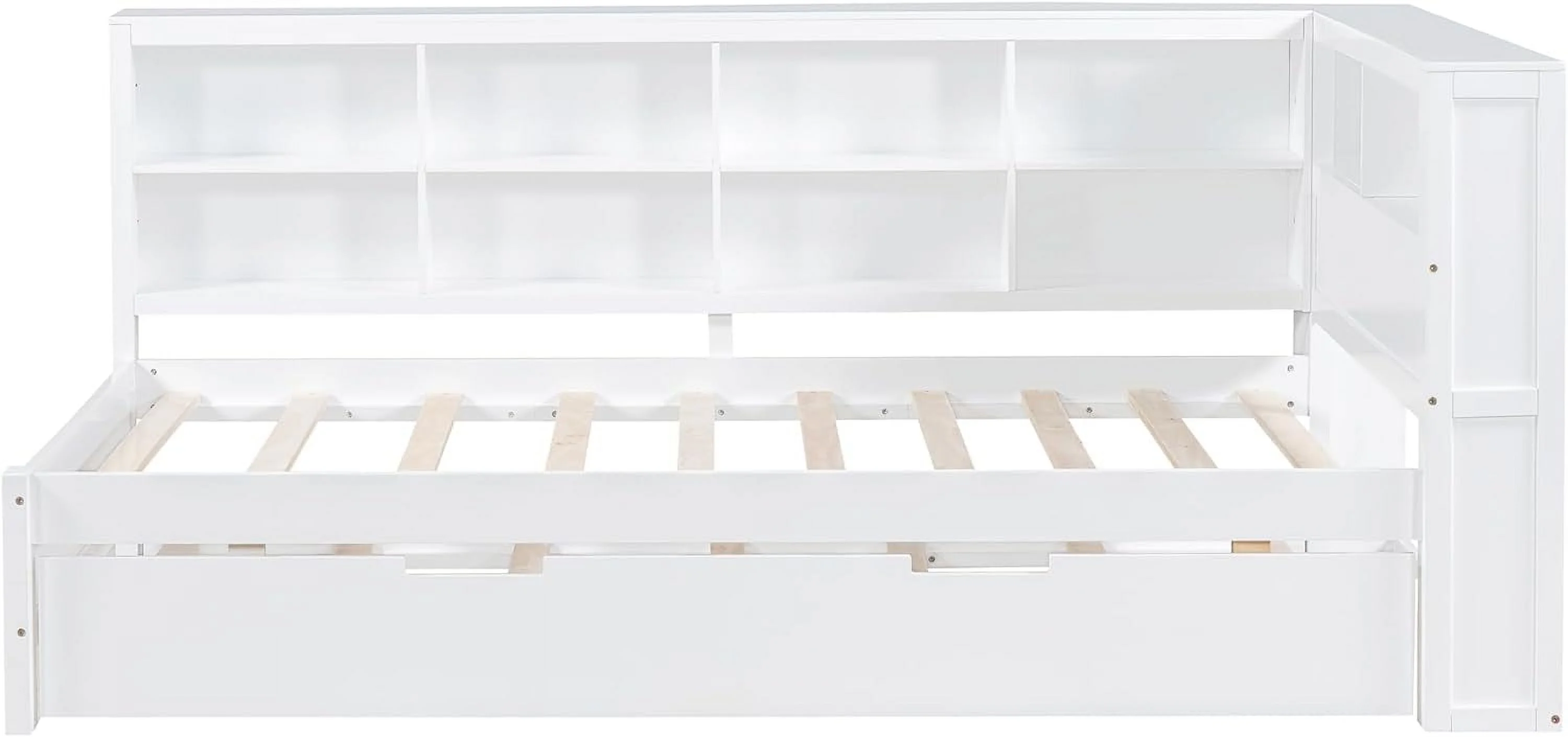 Daybed With Trundle, Solid Wood Captains Bed Size Sofa Bed Frame (White)