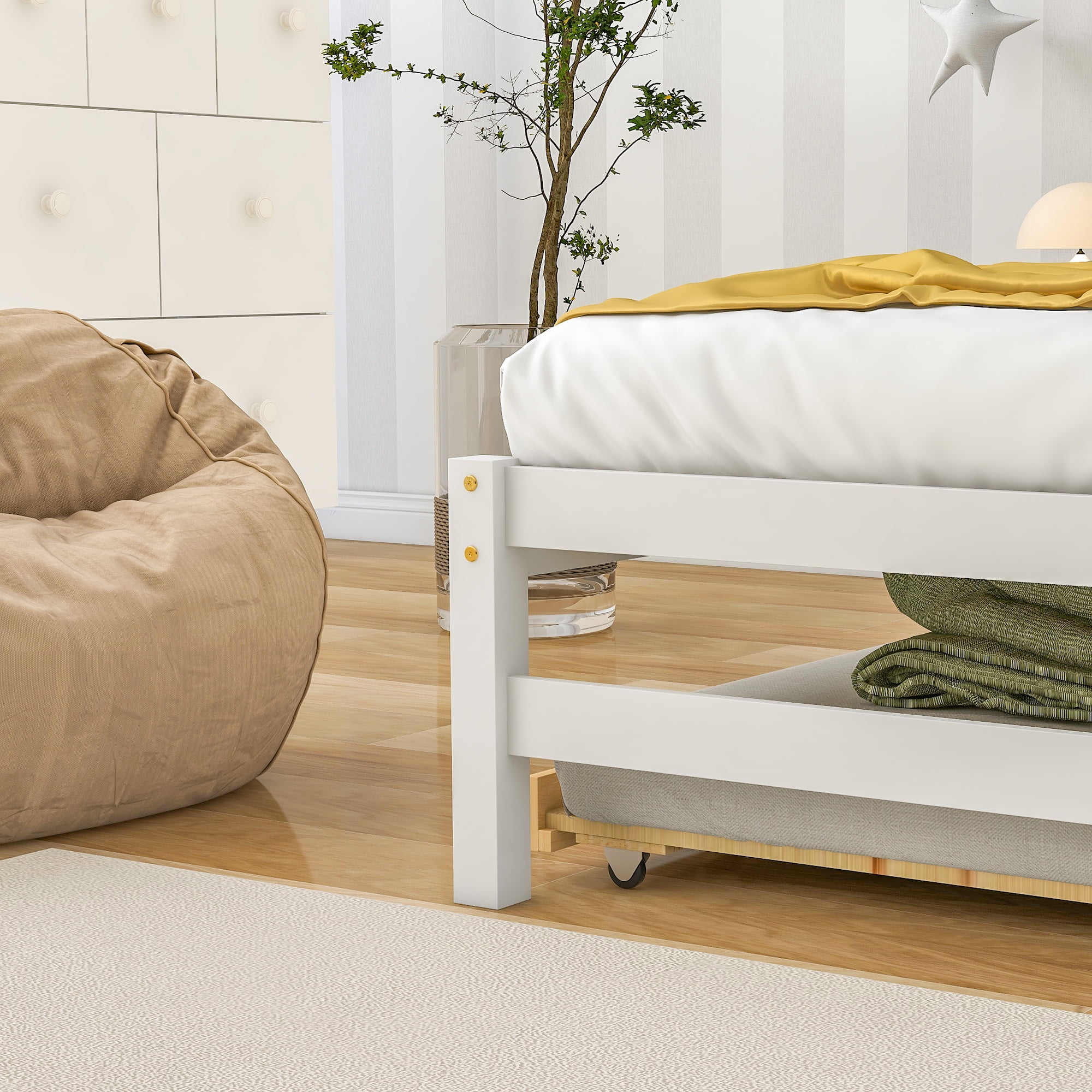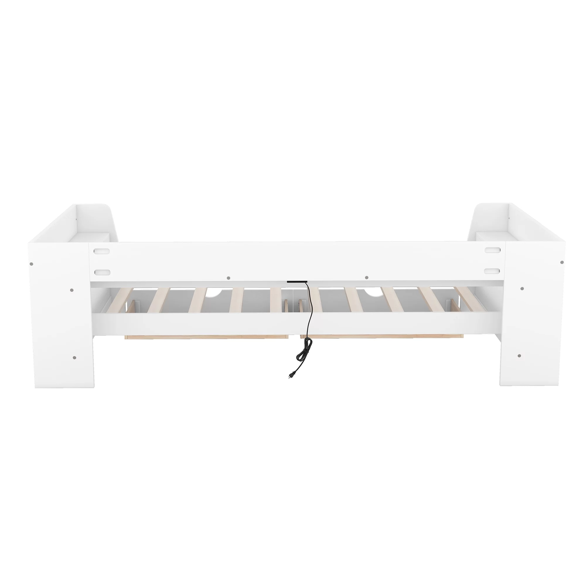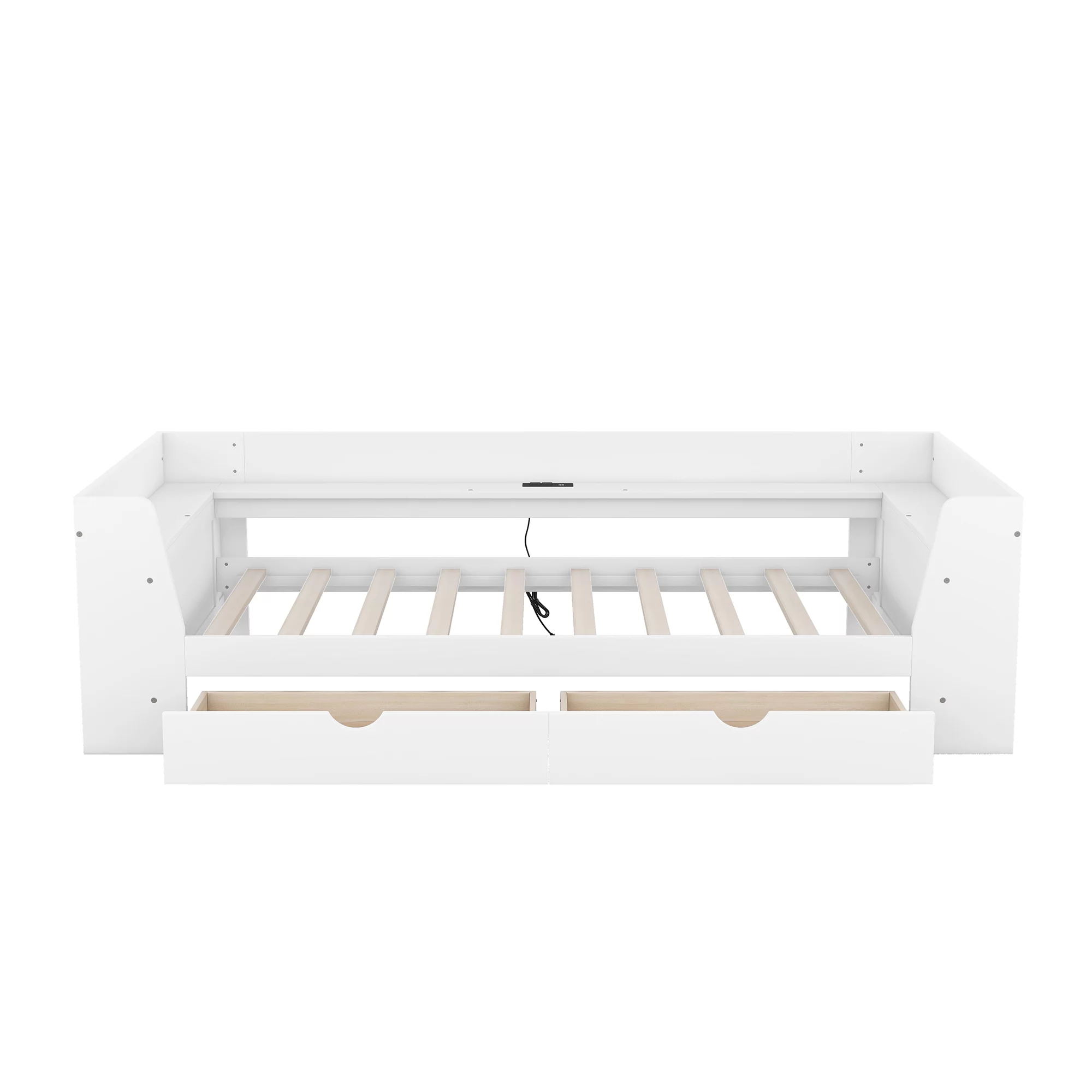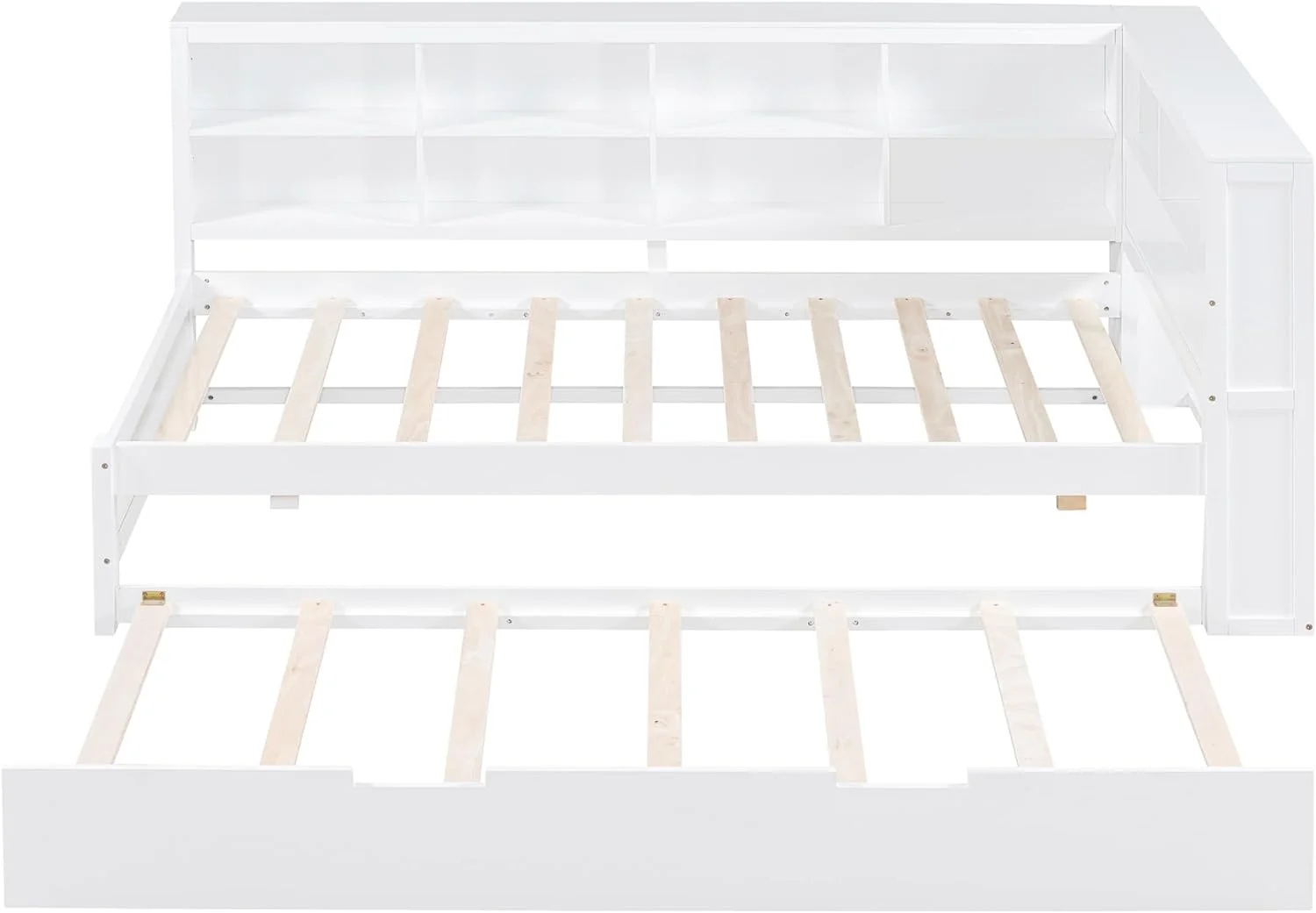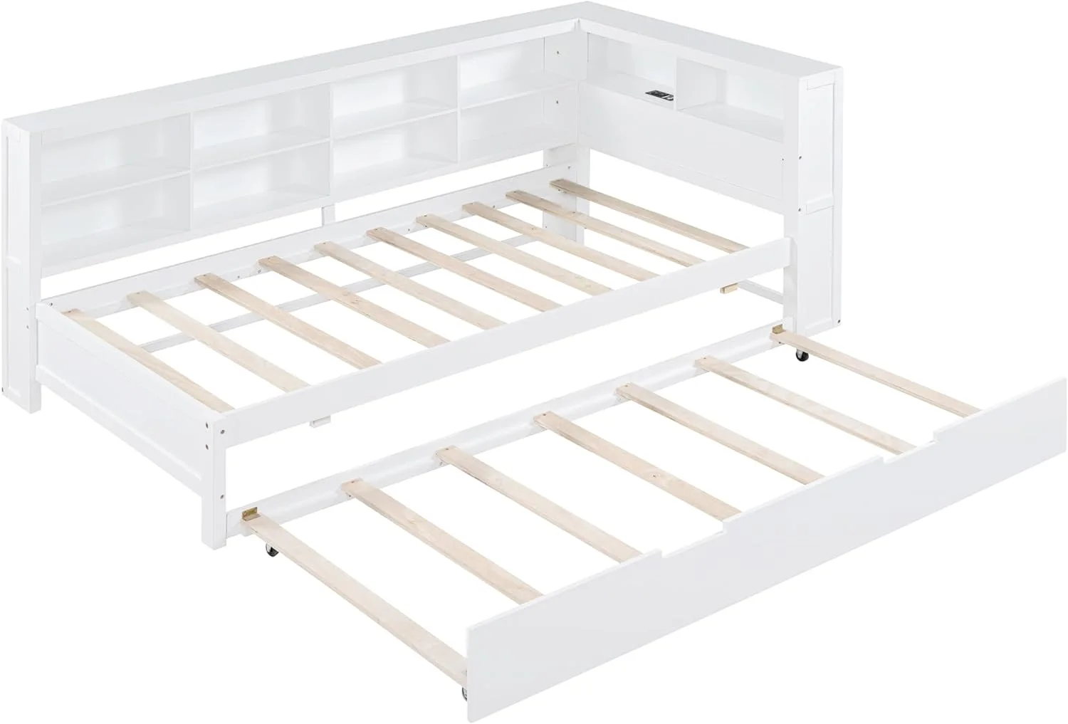 Daybed With Trundle, Solid Wood Captains Bed Size Sofa Bed Frame (White)