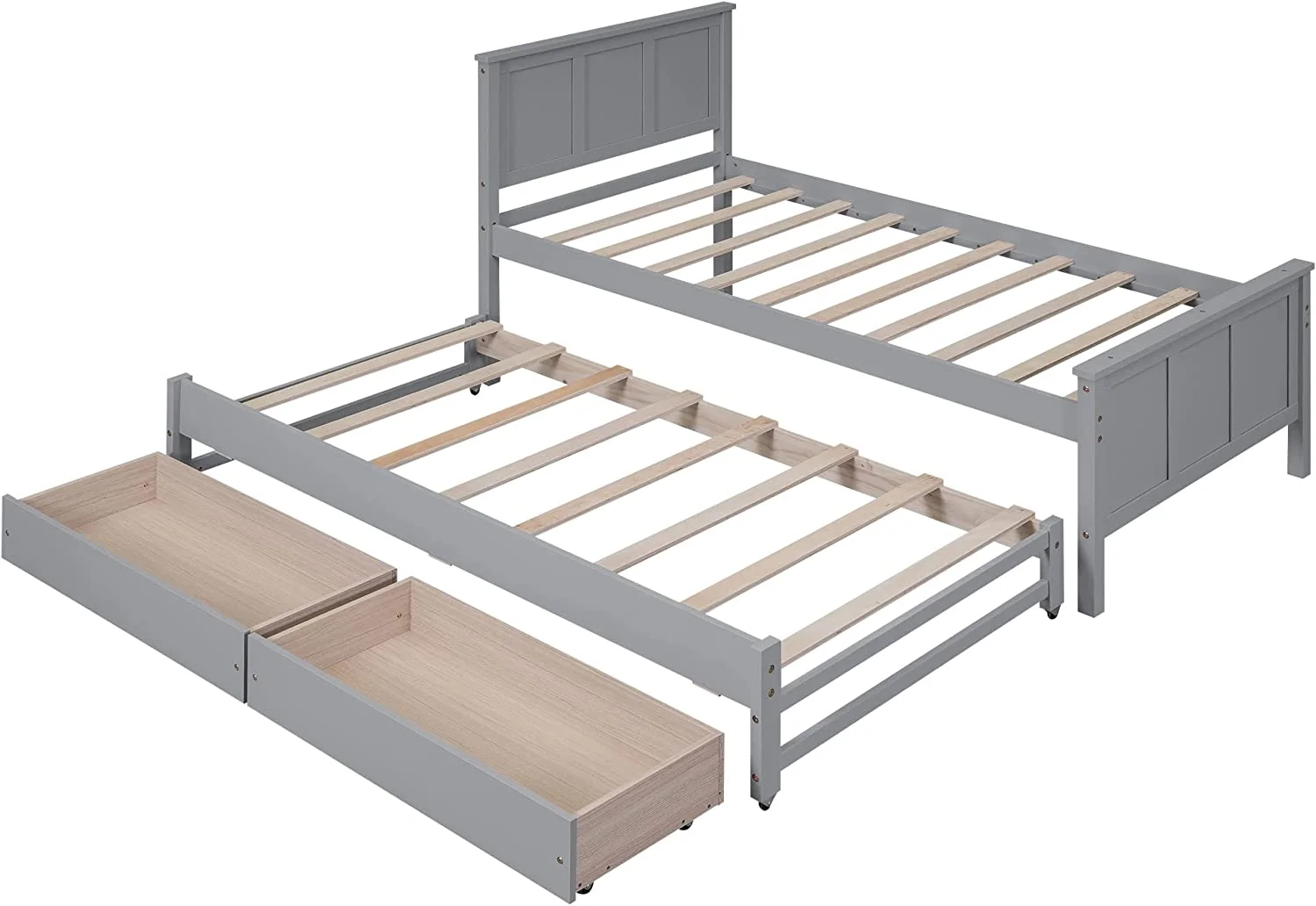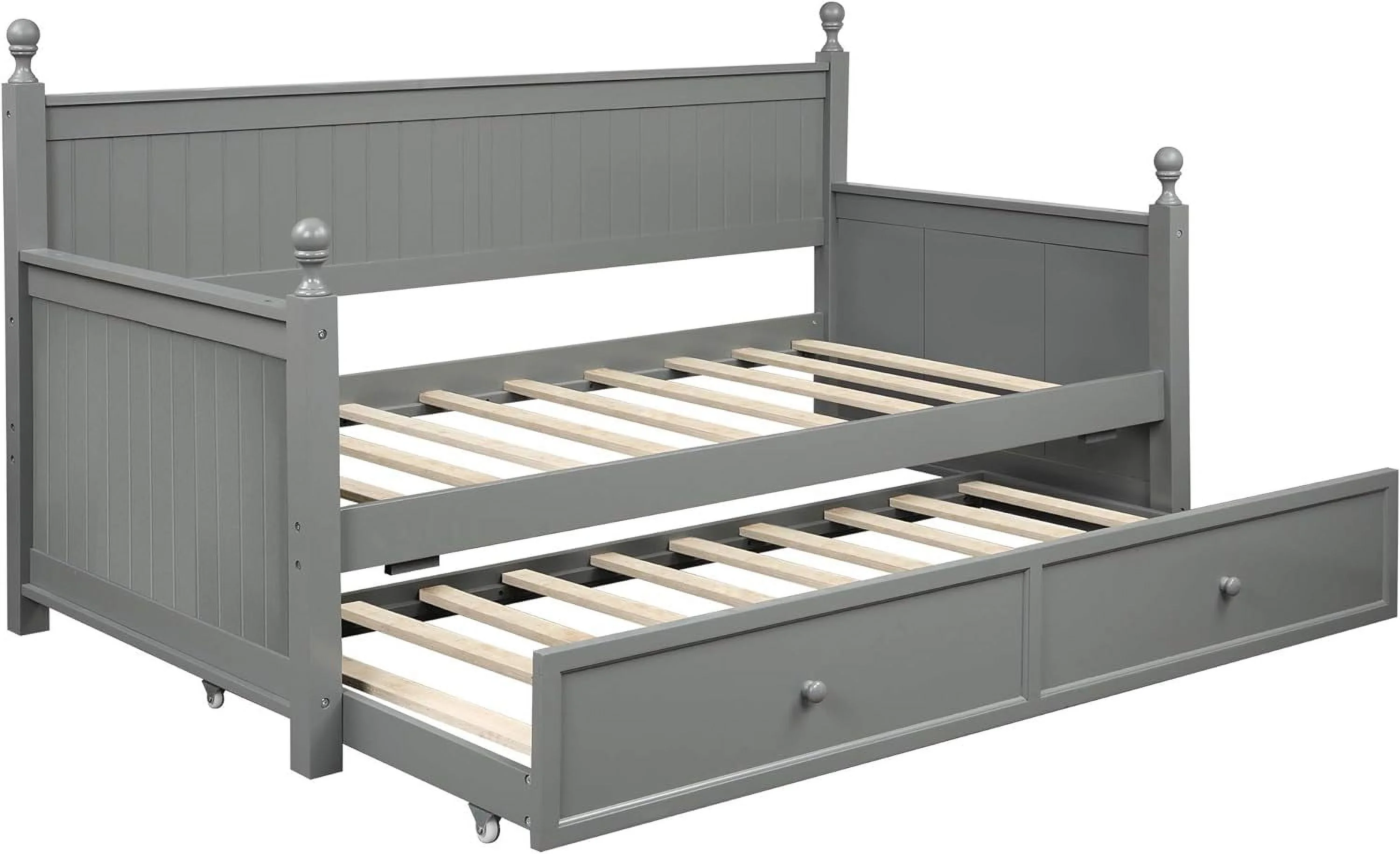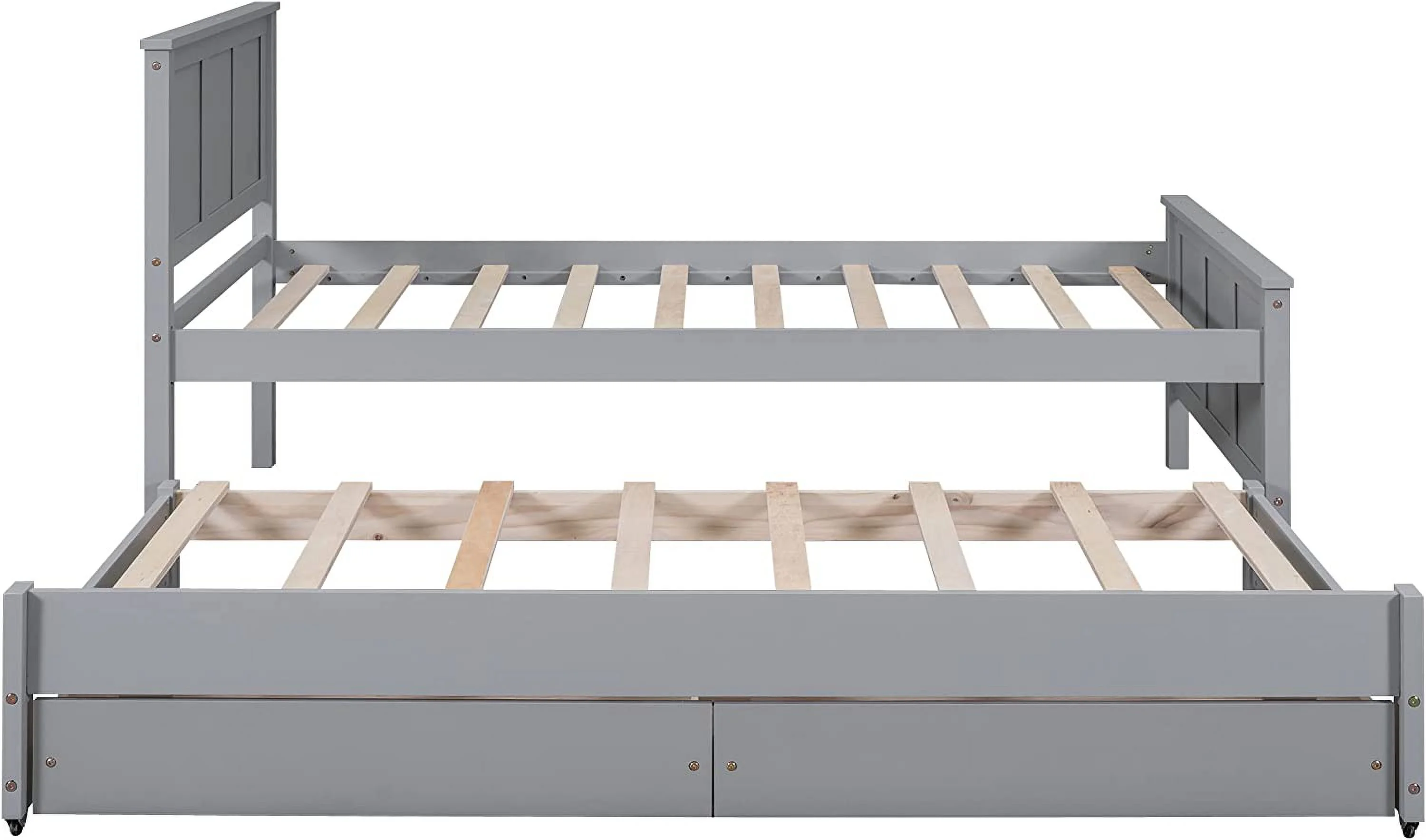 Wood Bed with Trundle and 2 Drawers Twin Daybed Frame for Kids Teens Adults/No Box Spring Needed Grey
