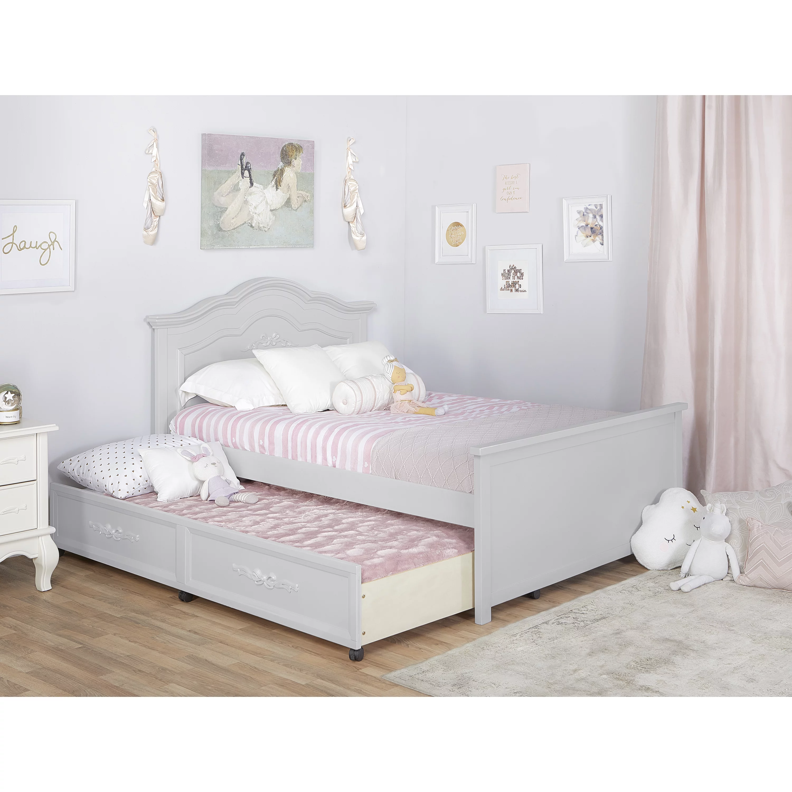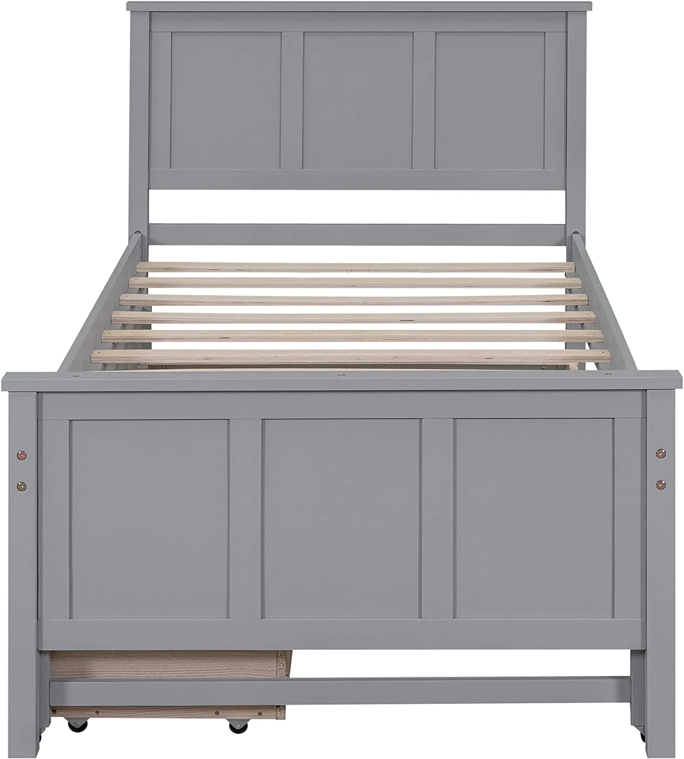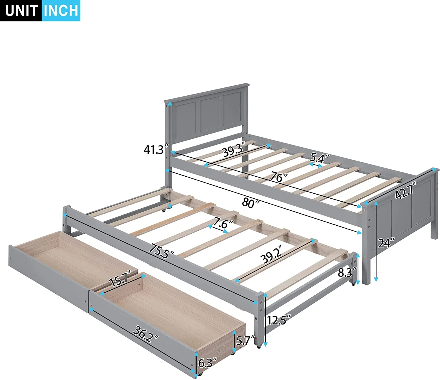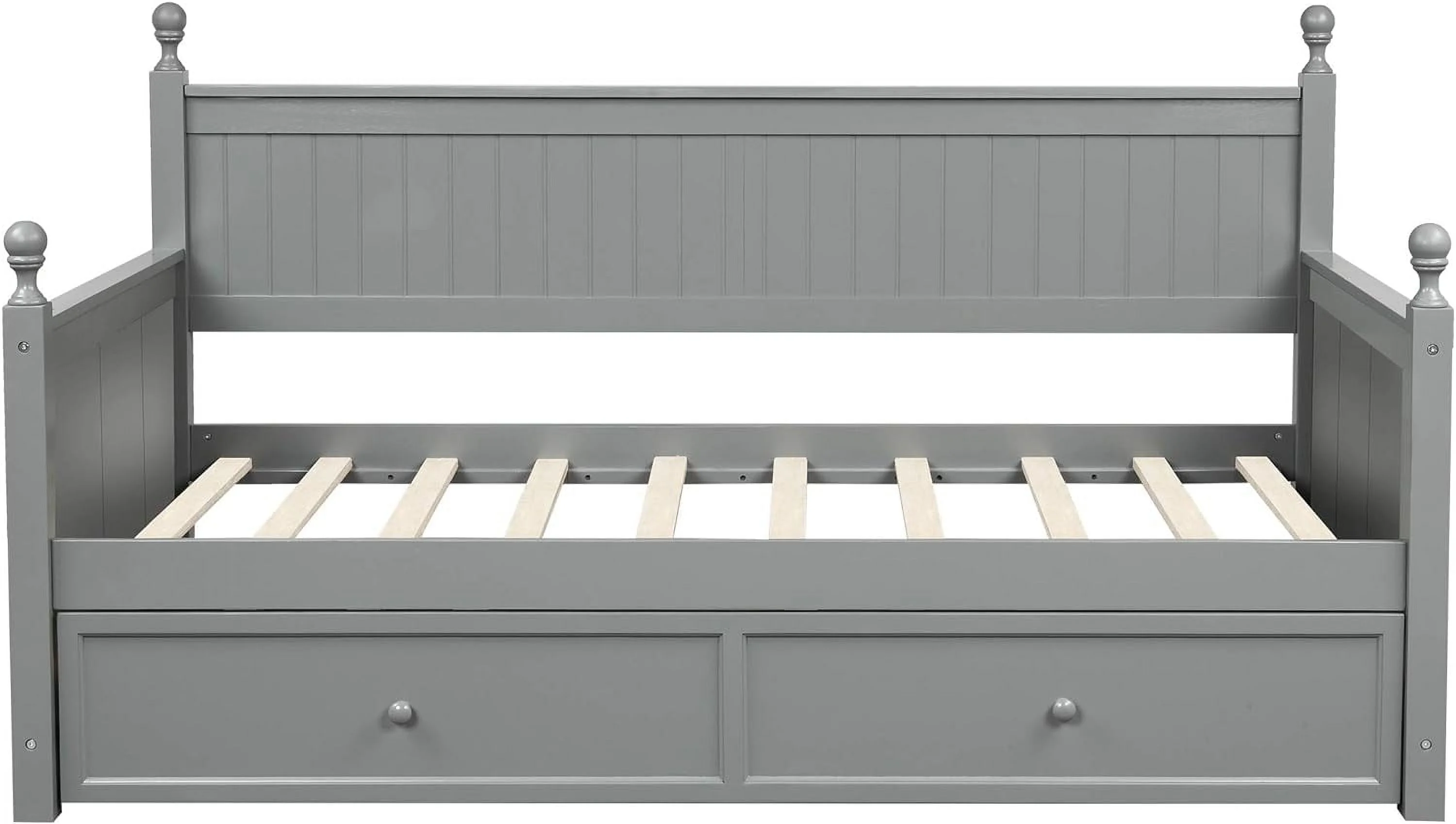 Wood Bed with Trundle and 2 Drawers Twin Daybed Frame for Kids Teens Adults/No Box Spring Needed Grey