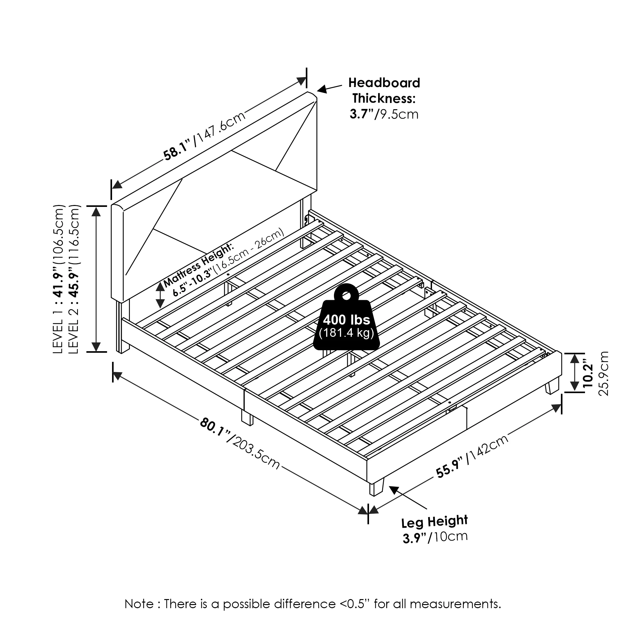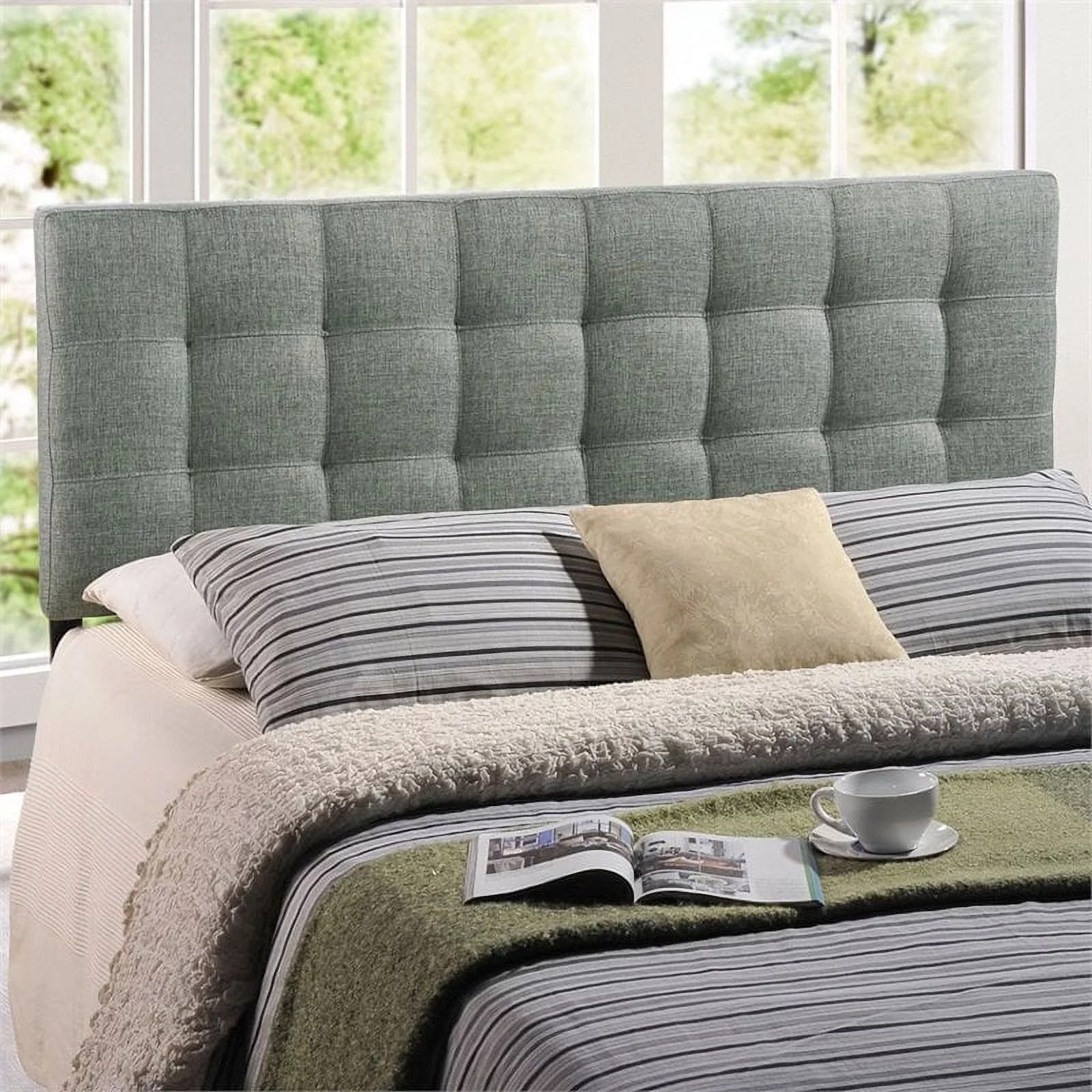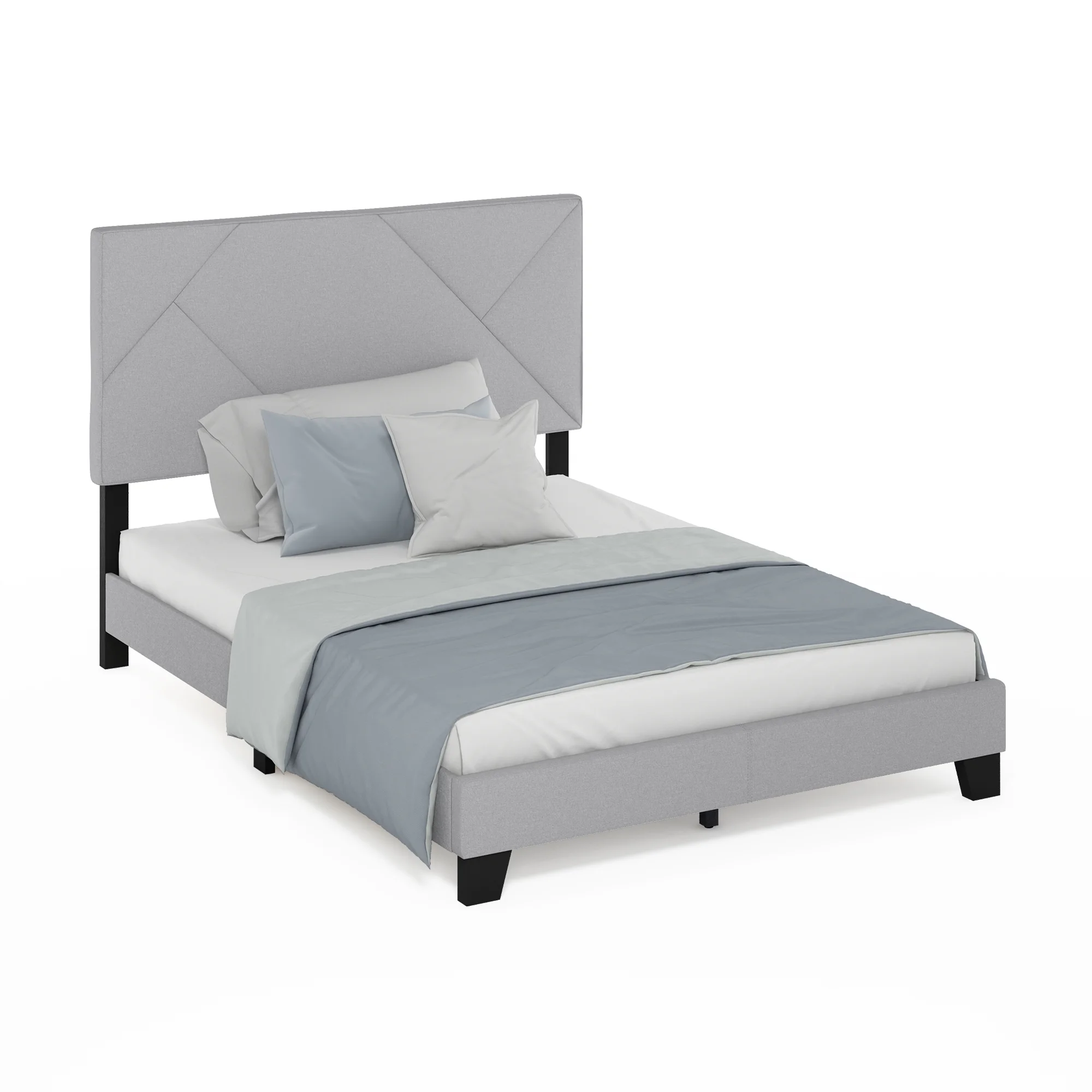 Furinno Skylar Geometric Design Headboard Bedframe, 12PC Slat Style, Glacier, Full