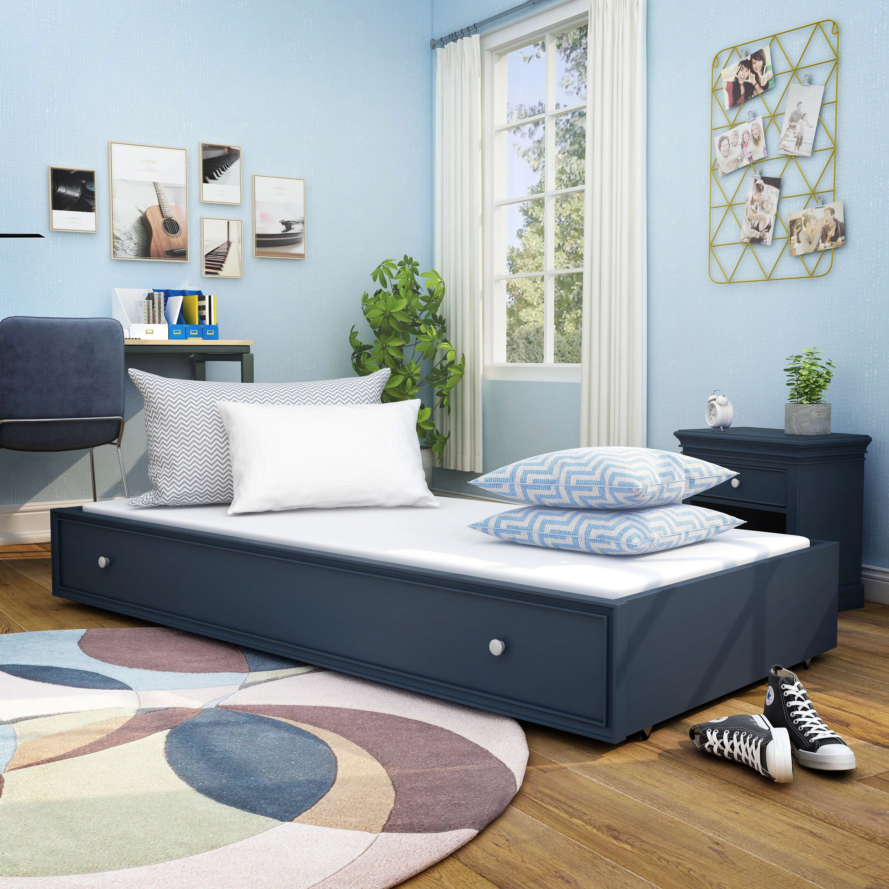 Furniture of America Taylor Transitional Wood Trundle, Blue and Gray