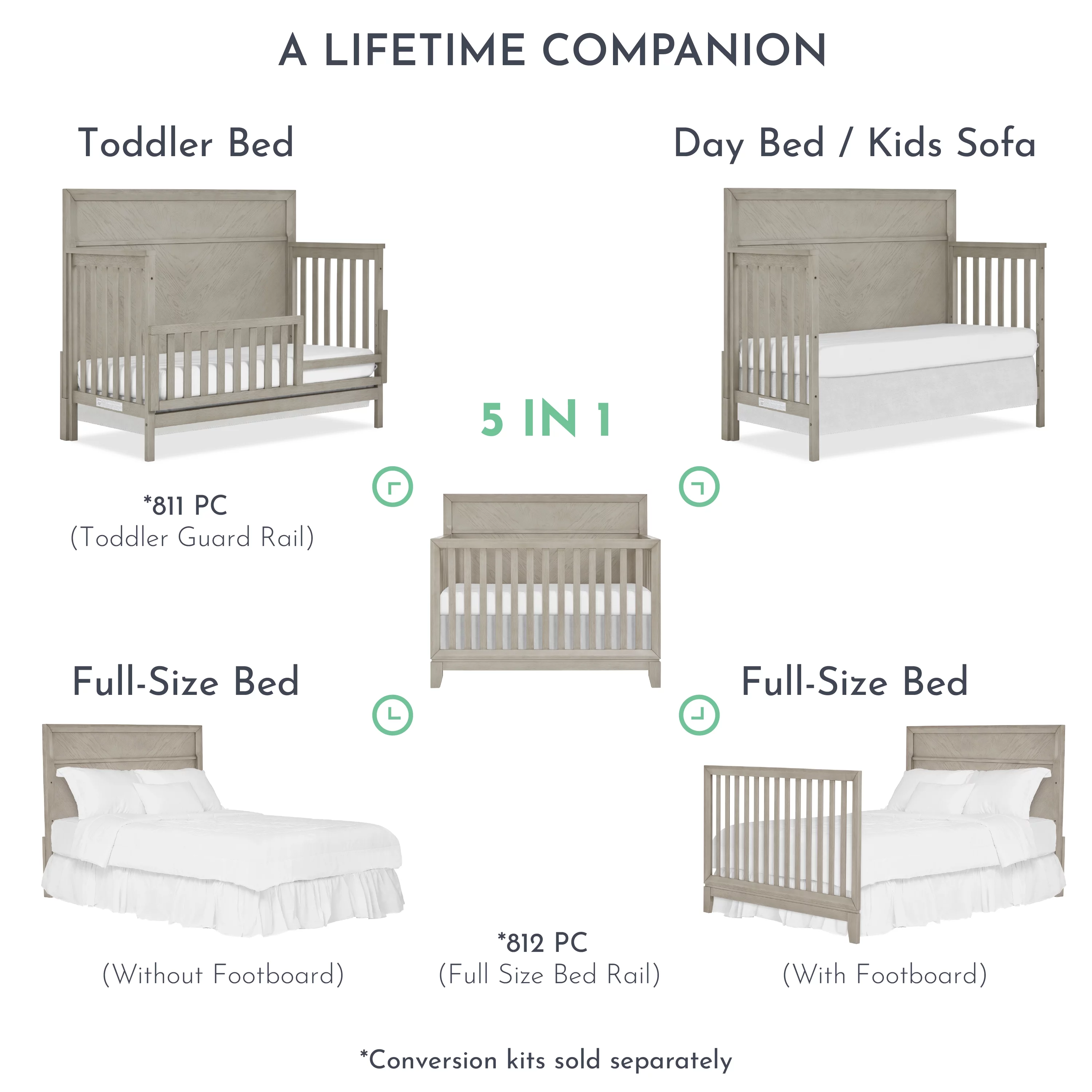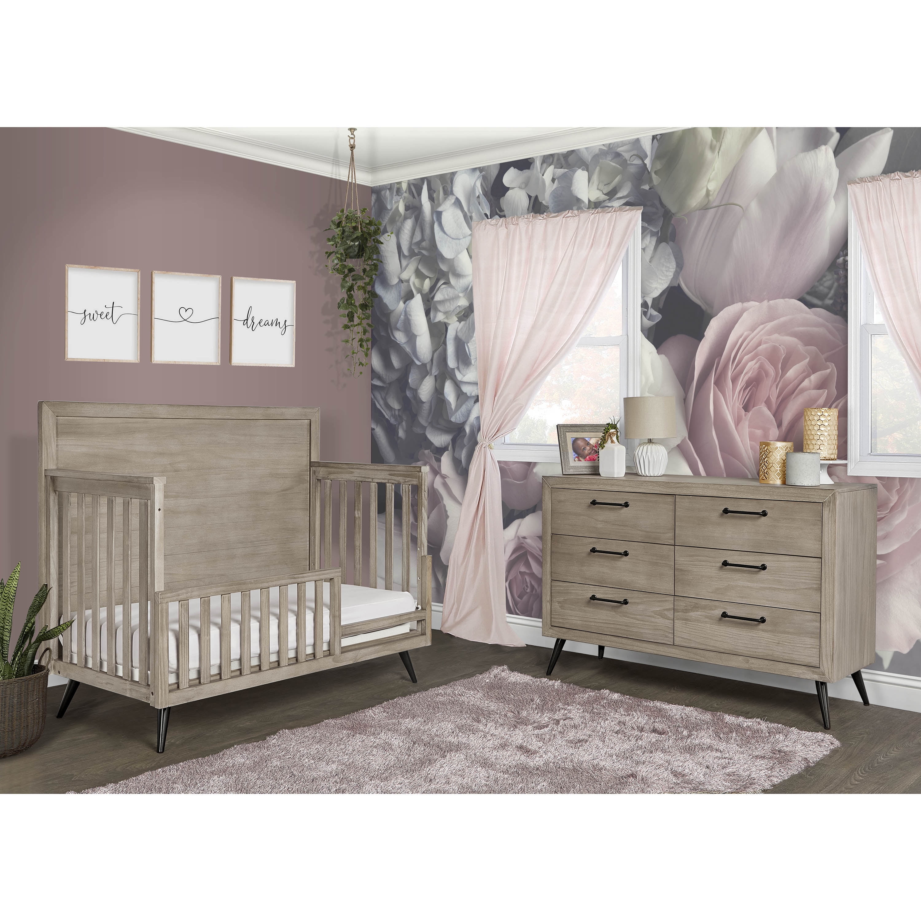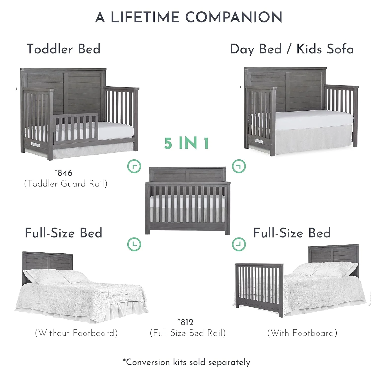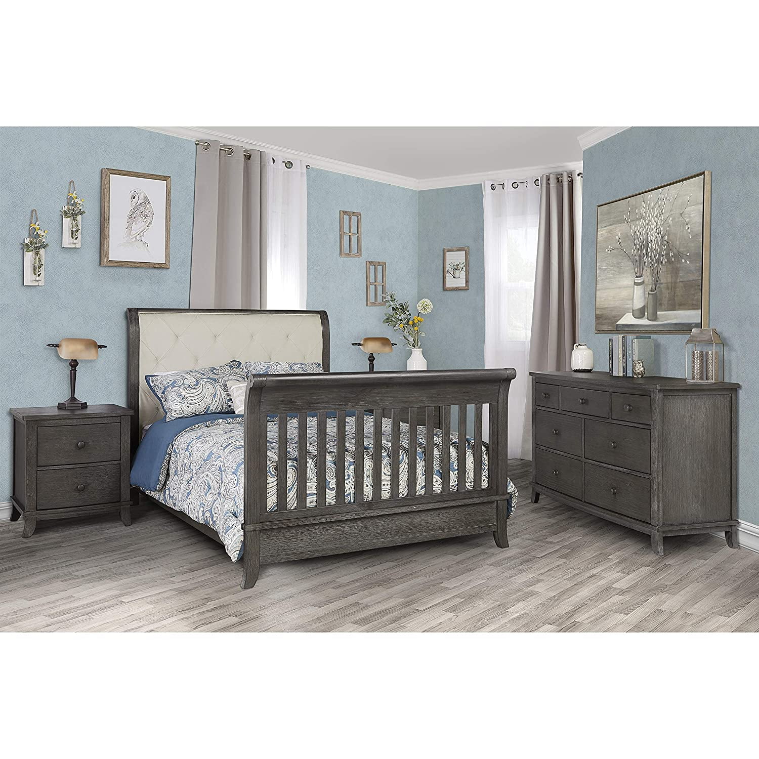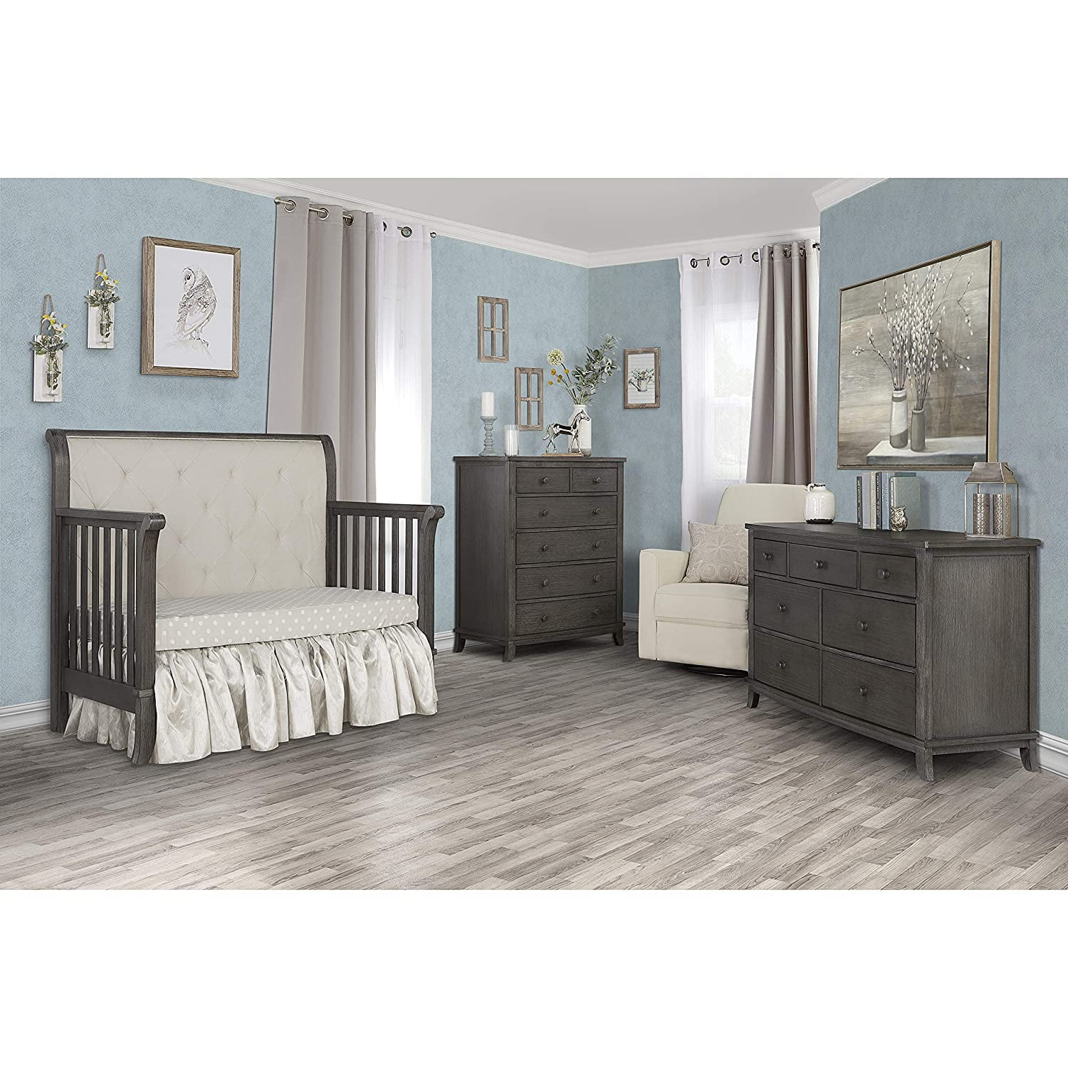 Evolur Signature Amsterdam 5-in-1 Convertible Crib, Smokey Brushed Grey