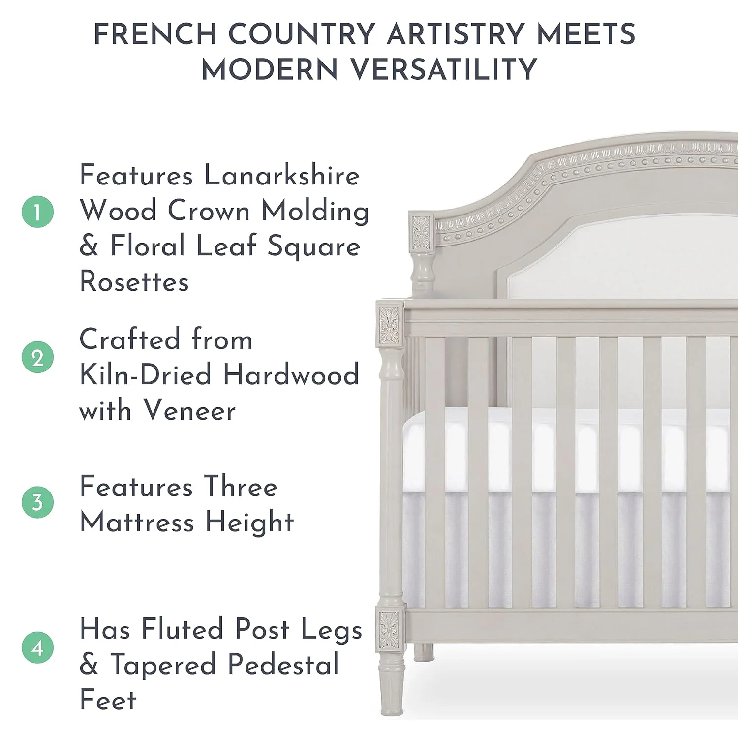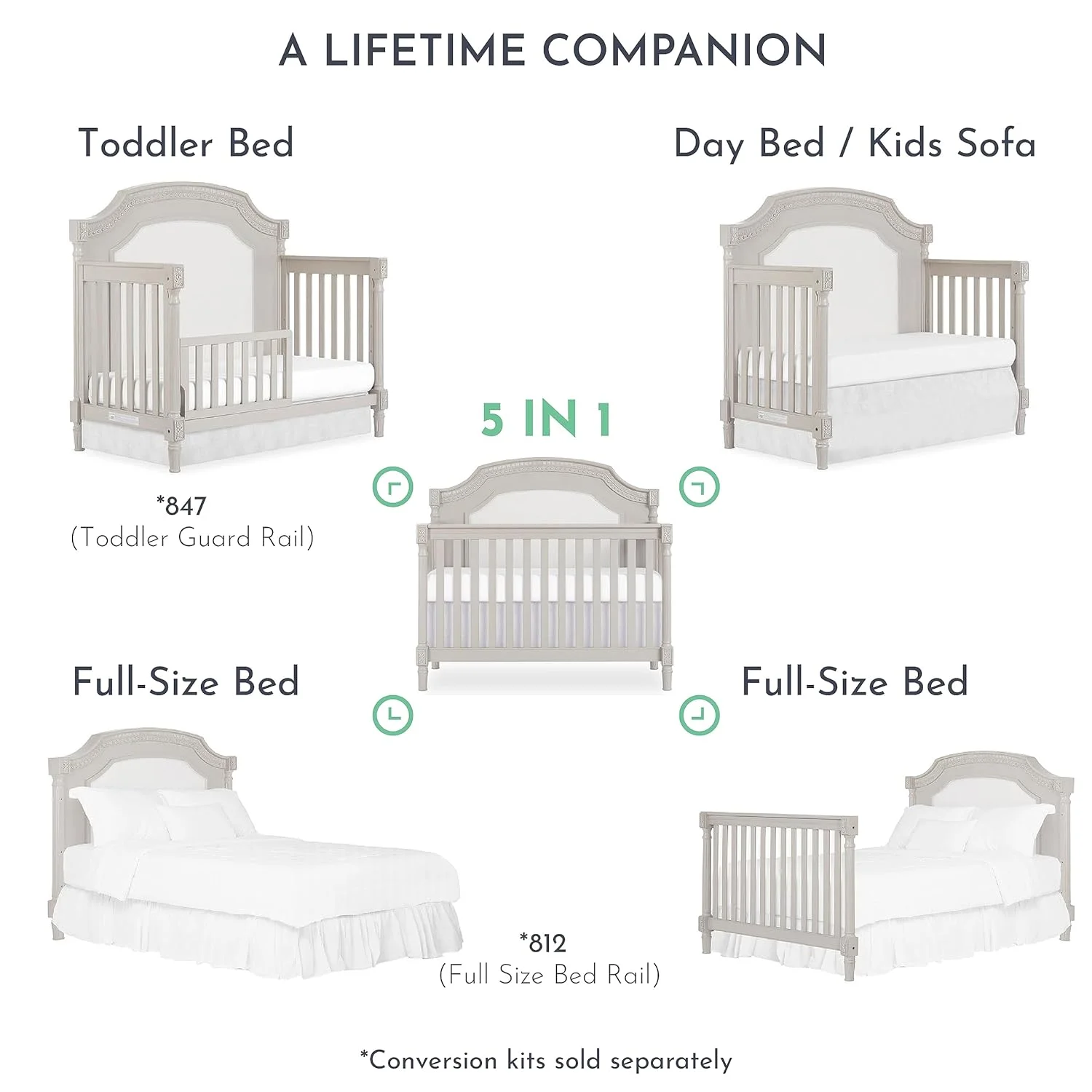 Evolur Julienne 5-in-1 Convertible Crib in Cloud, Greenguard Gold Certified , 55.5x31. Inch (Pack of 1)