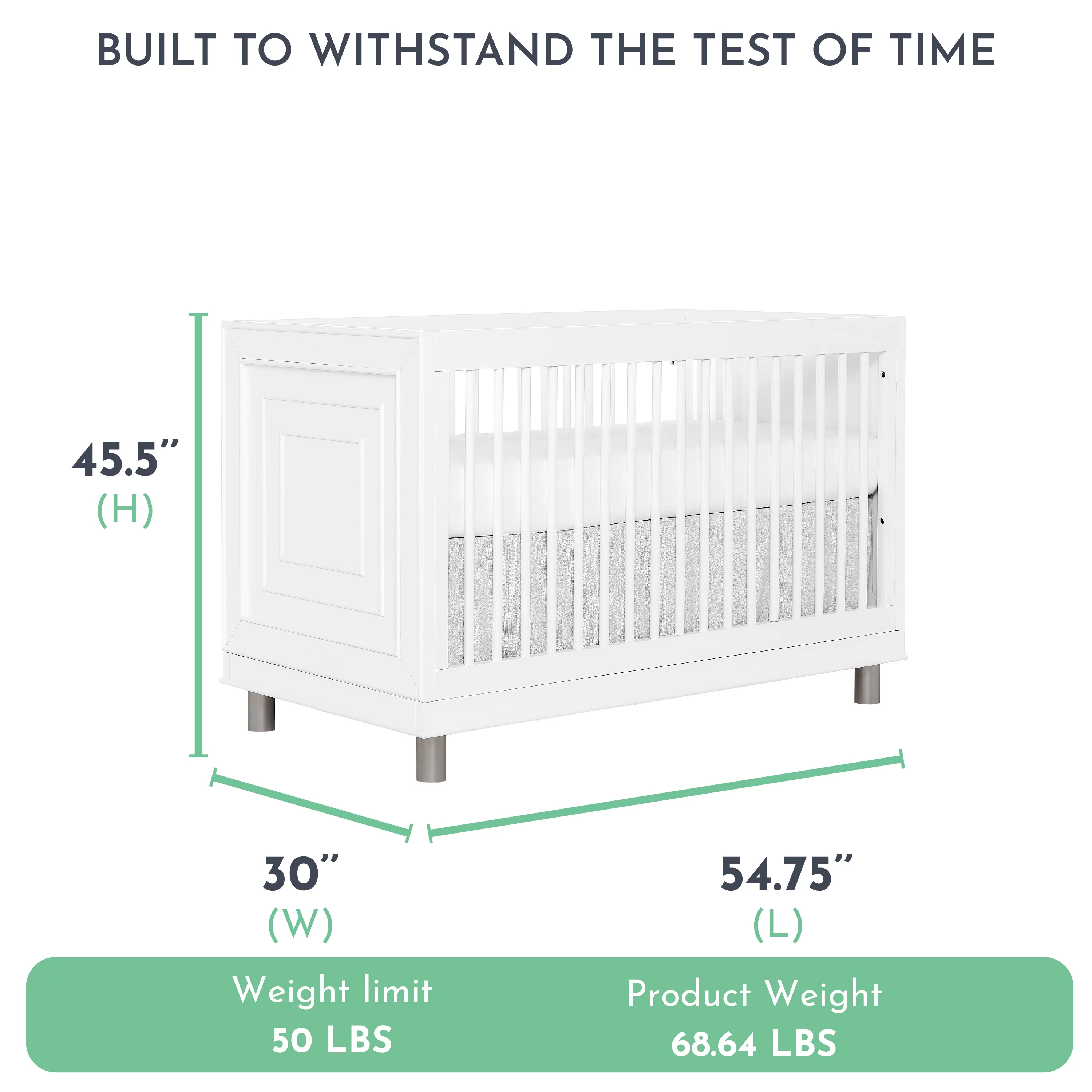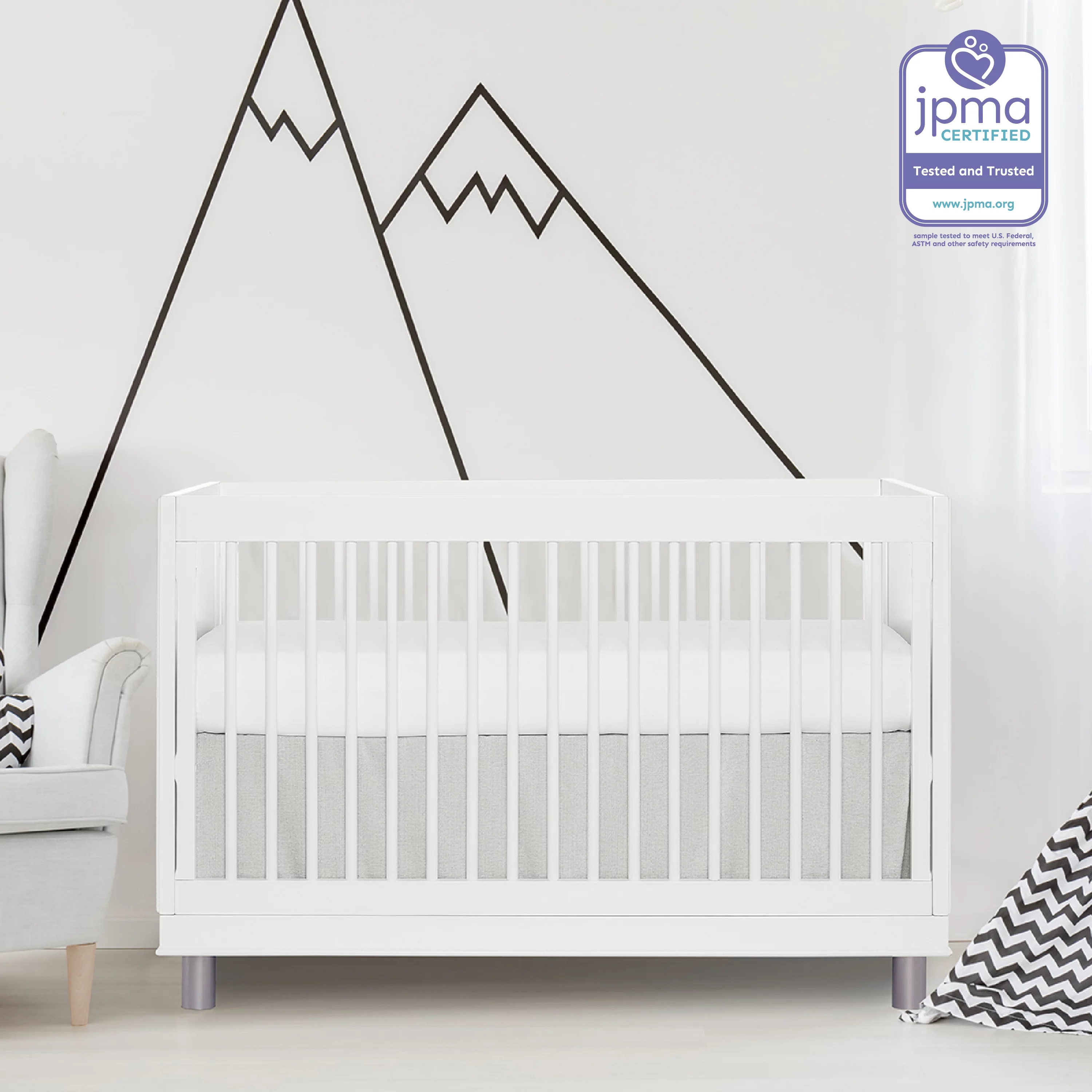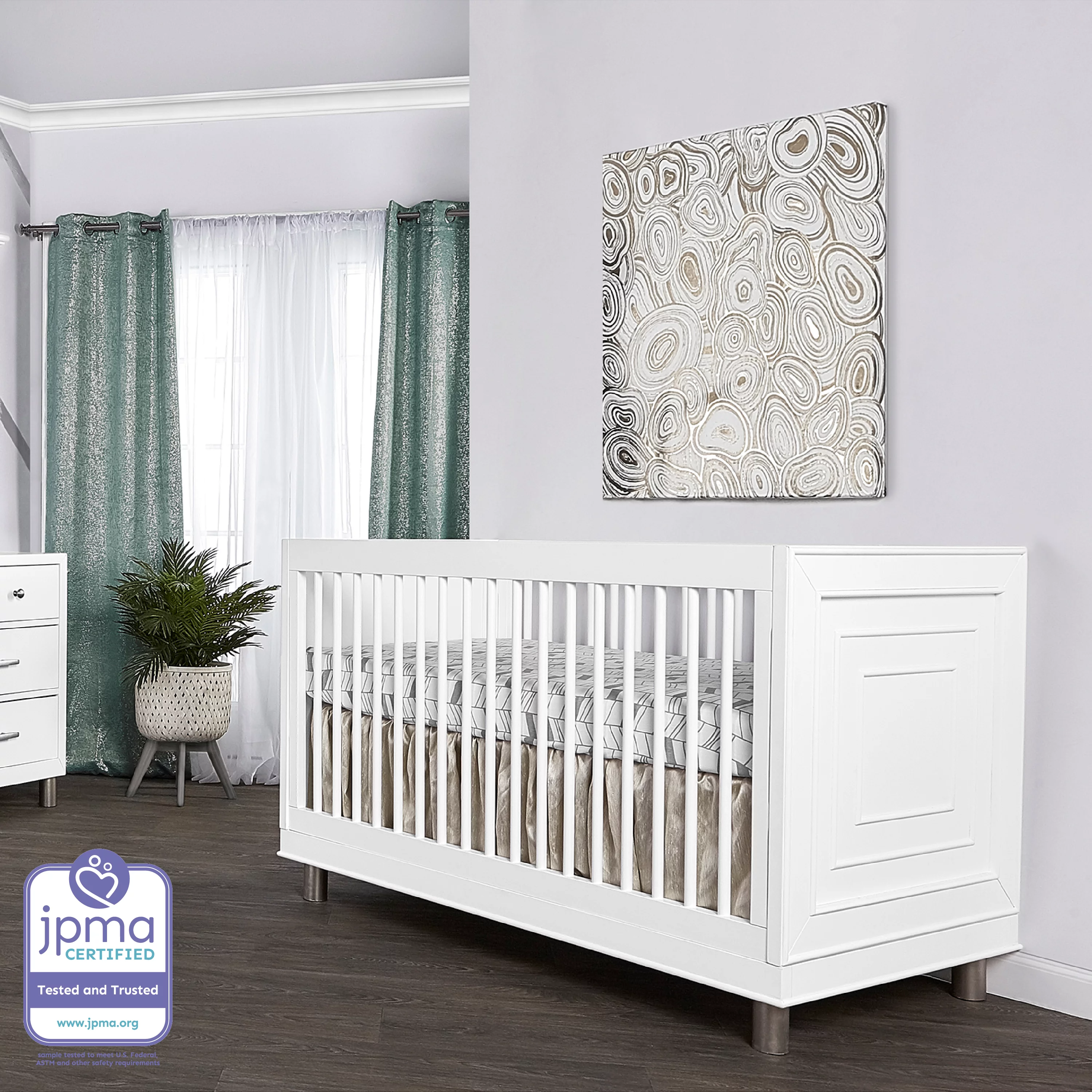 Evolur Loft Art Deco 3-In-1 Convertible Crib In White, Greenguard Gold Certified