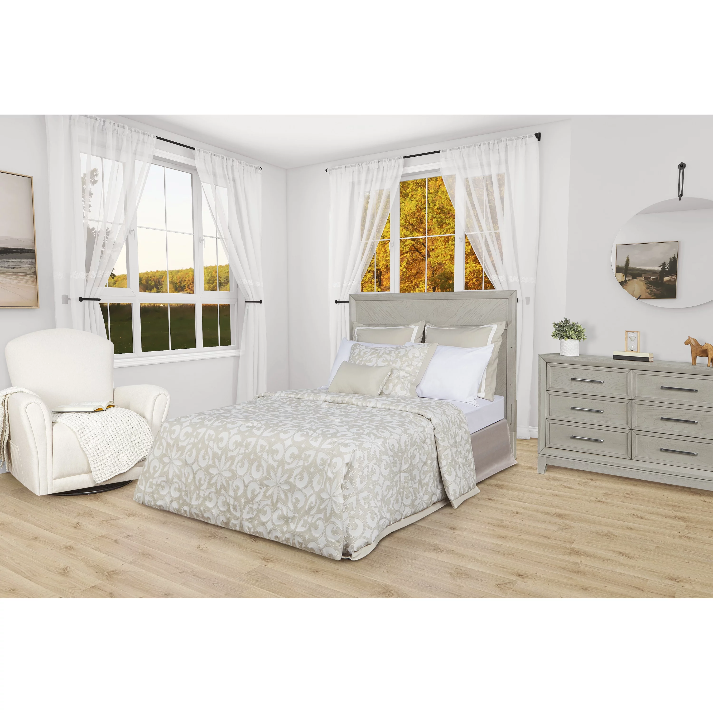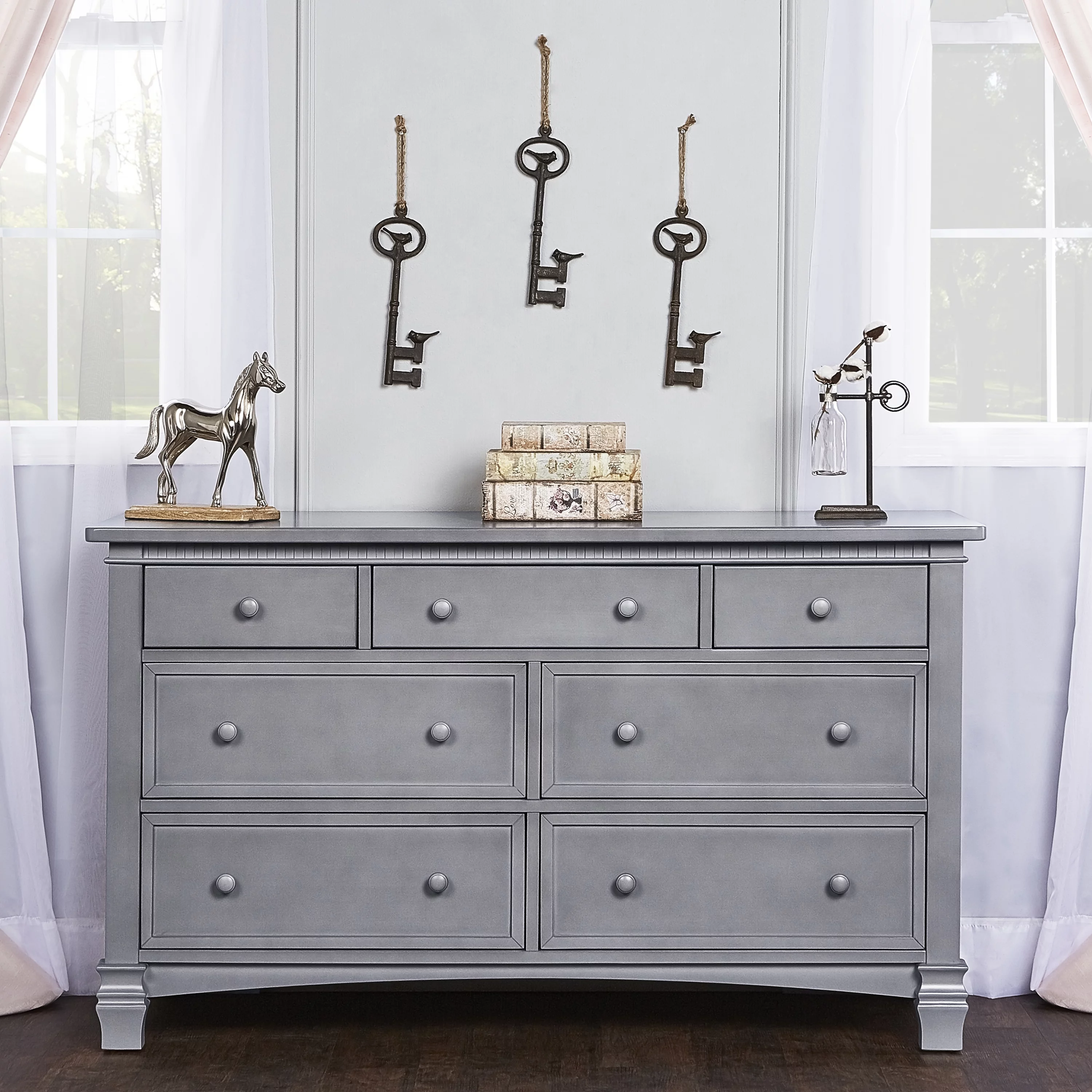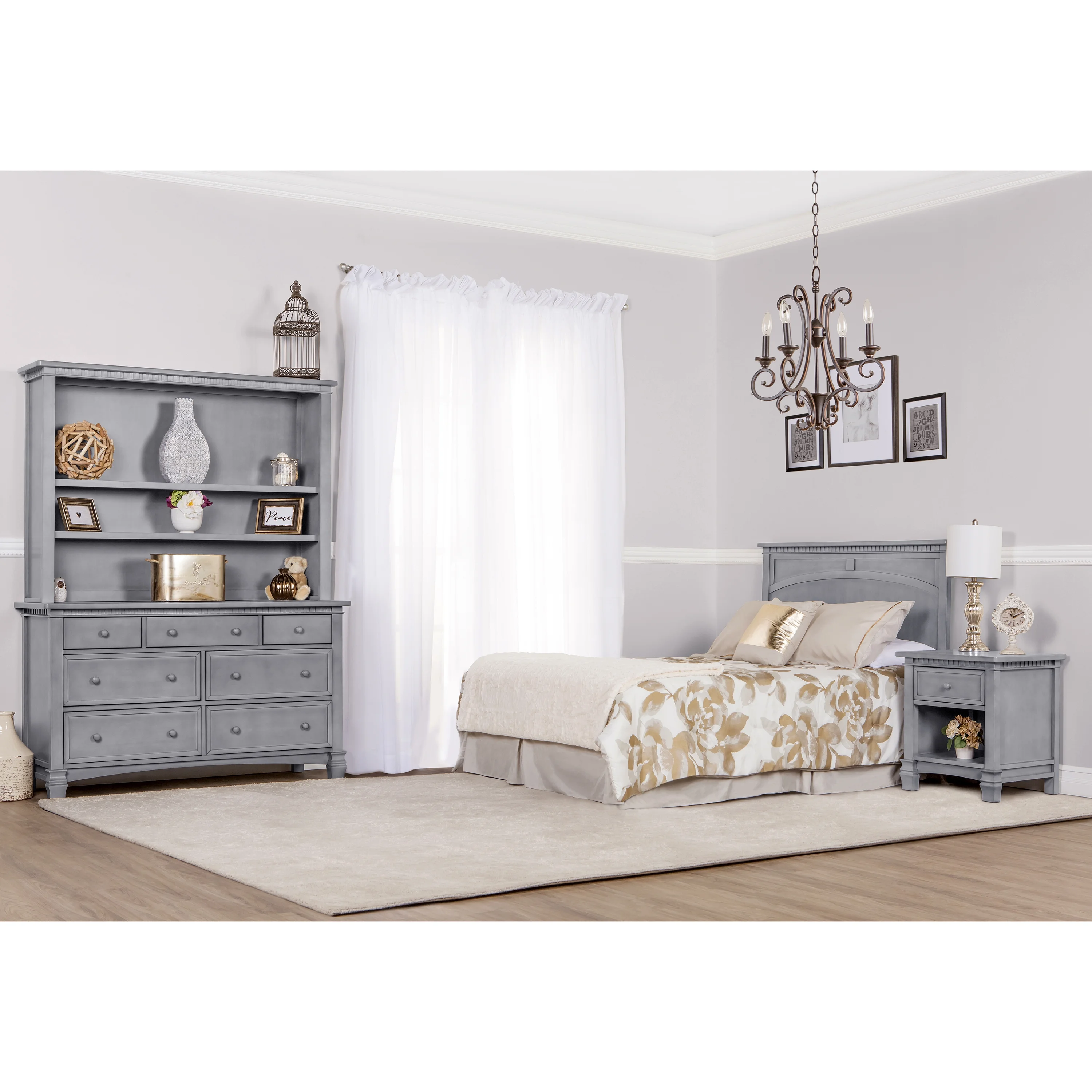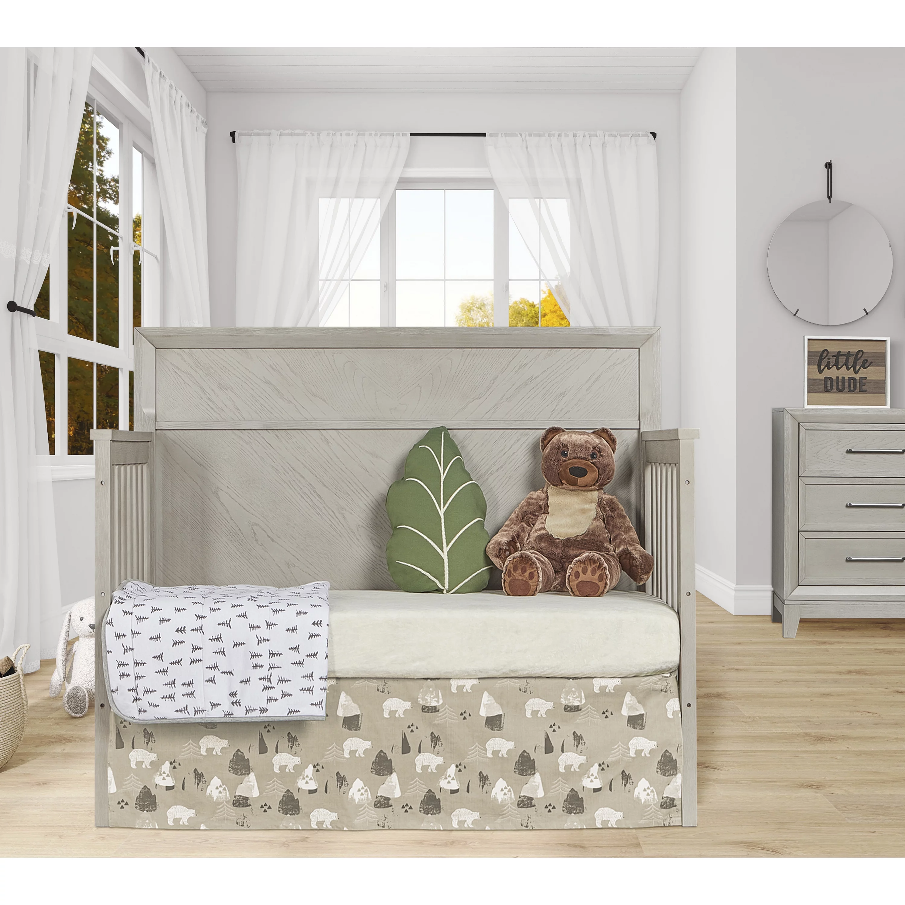 Evolur Santa Fe 5-in-1 Convertible Crib and Double Dresser in Storm Grey with Free 260 Coil Crib and Toddler Mattress