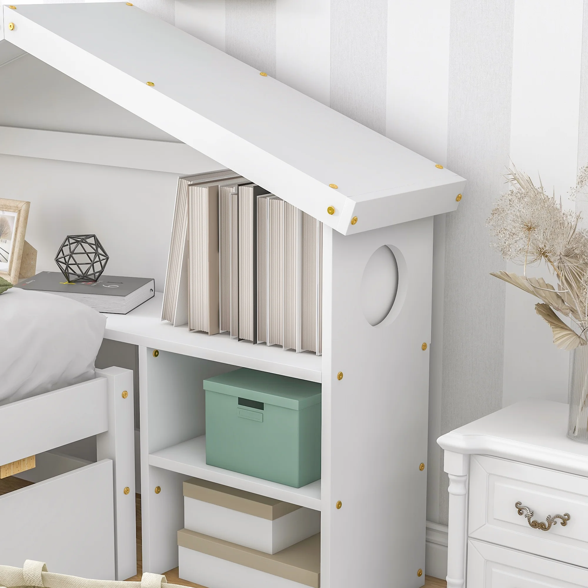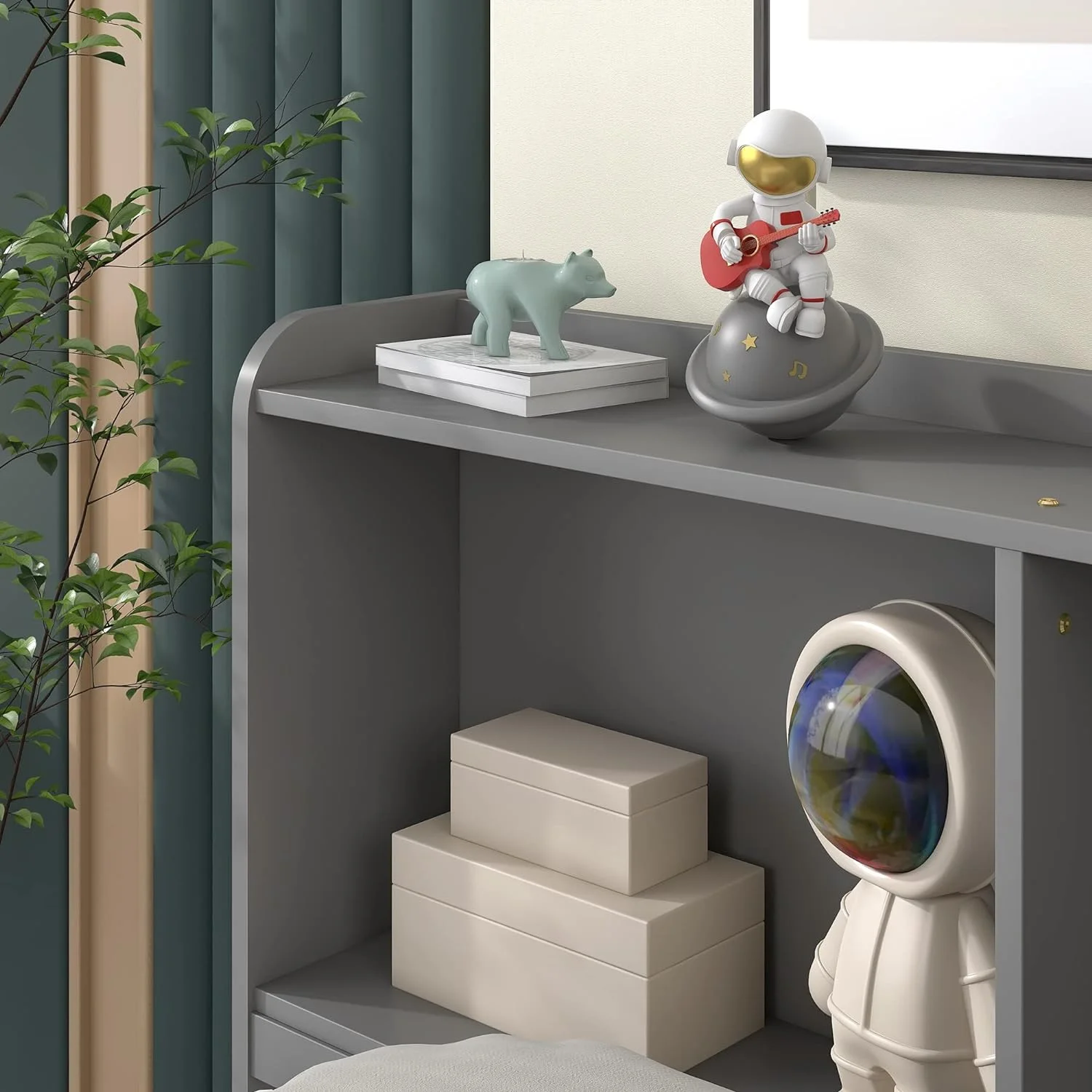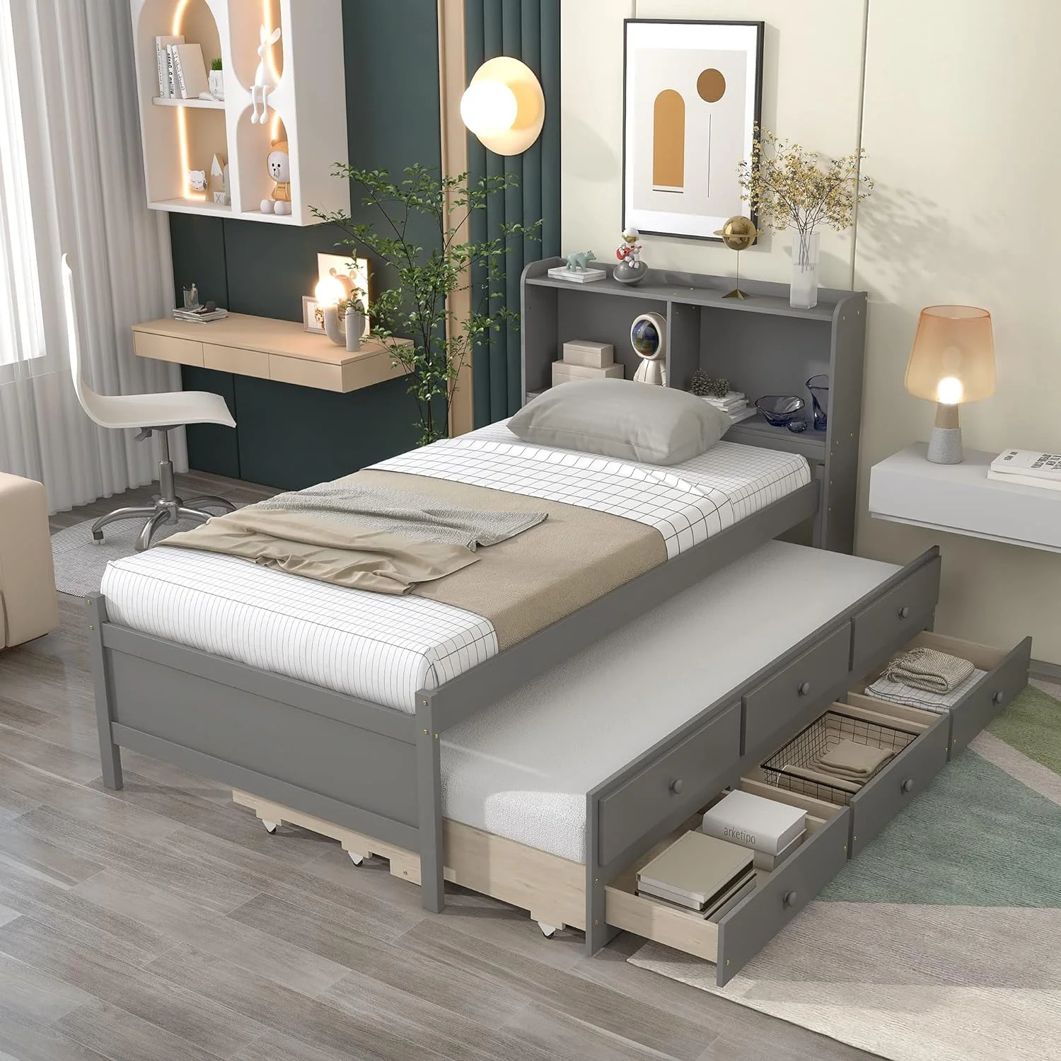 Bed With Size Trudle Ad Drawers, Solid Wood Platform Bed Frame With Bookcase Headboard For Kids Tees Adults ( Size, Gray)