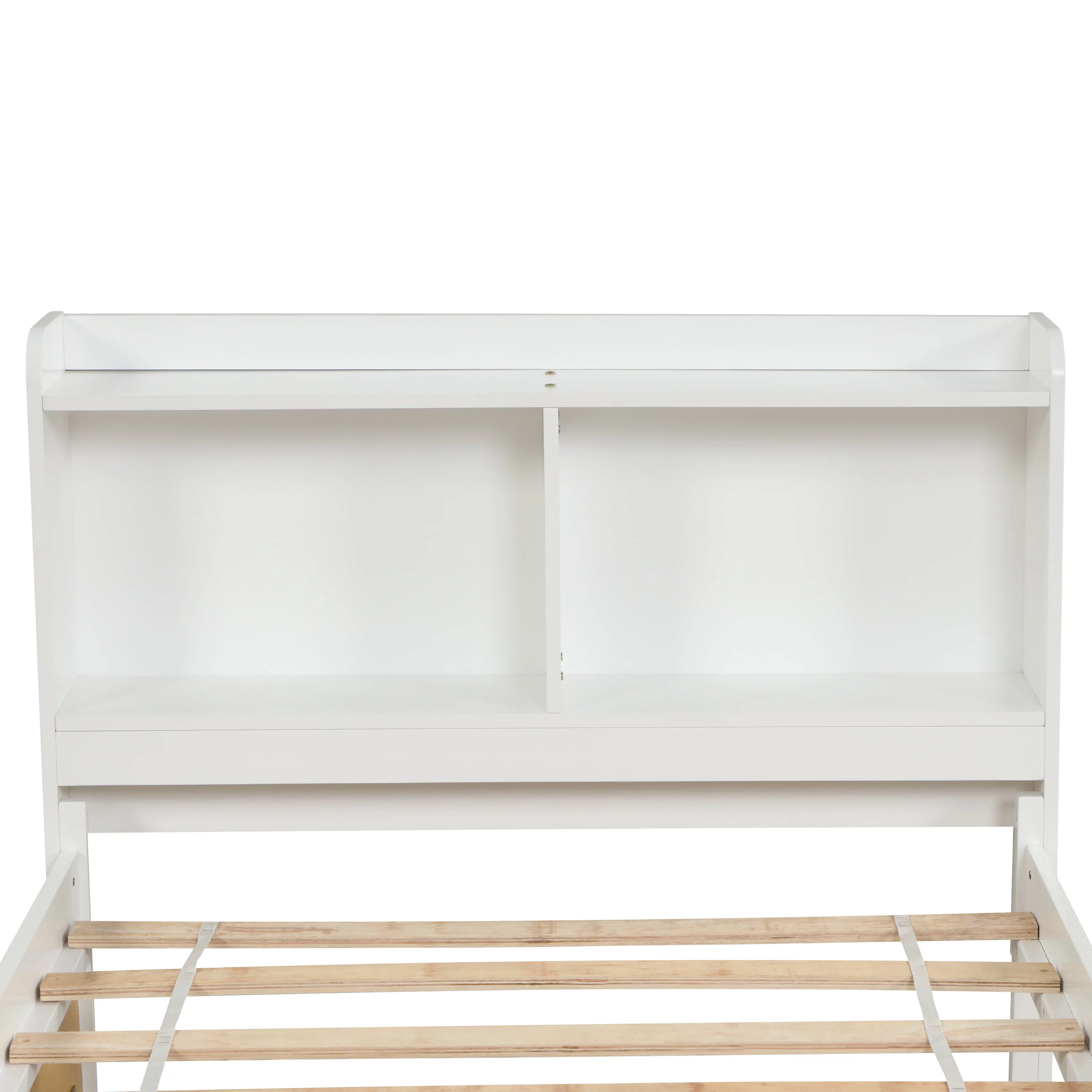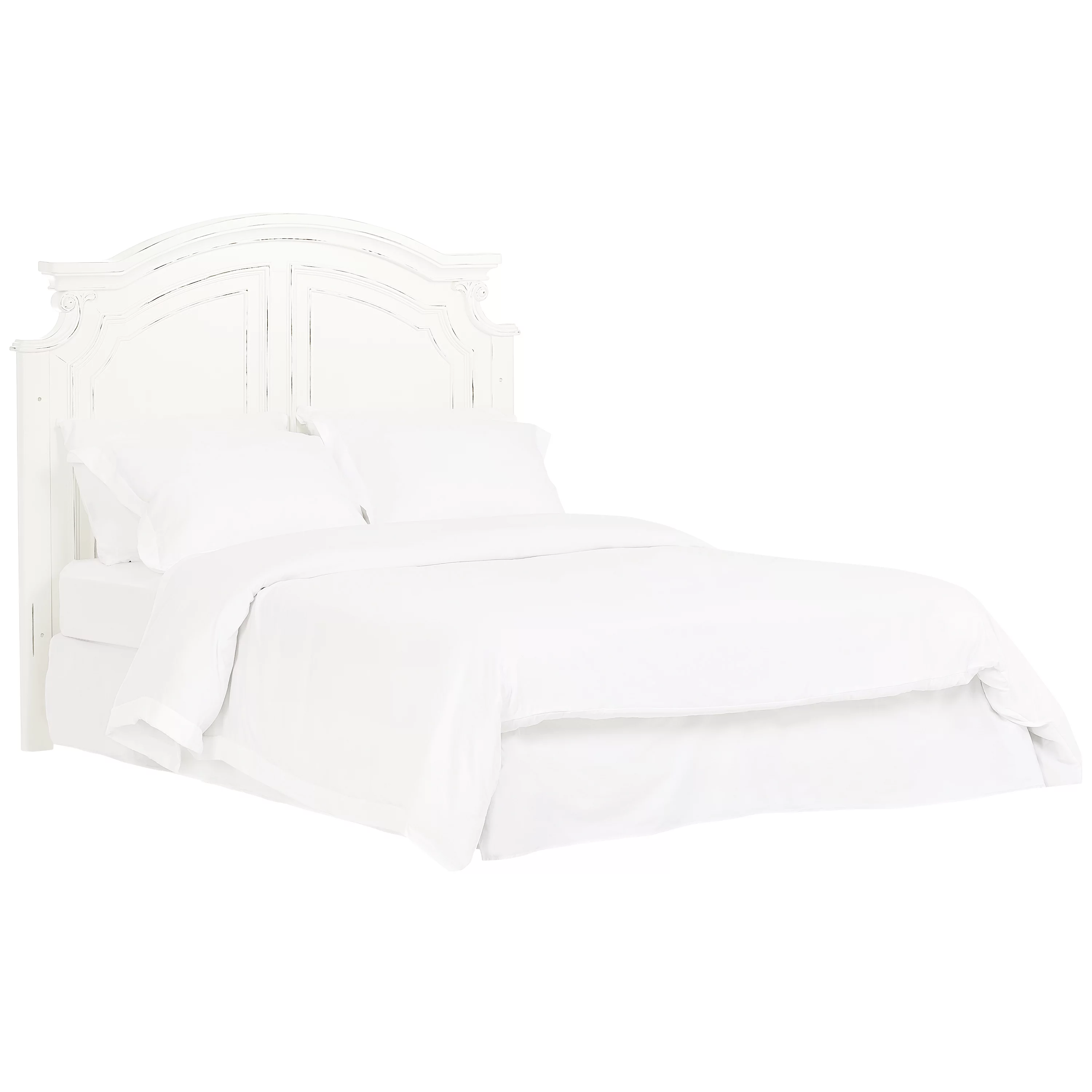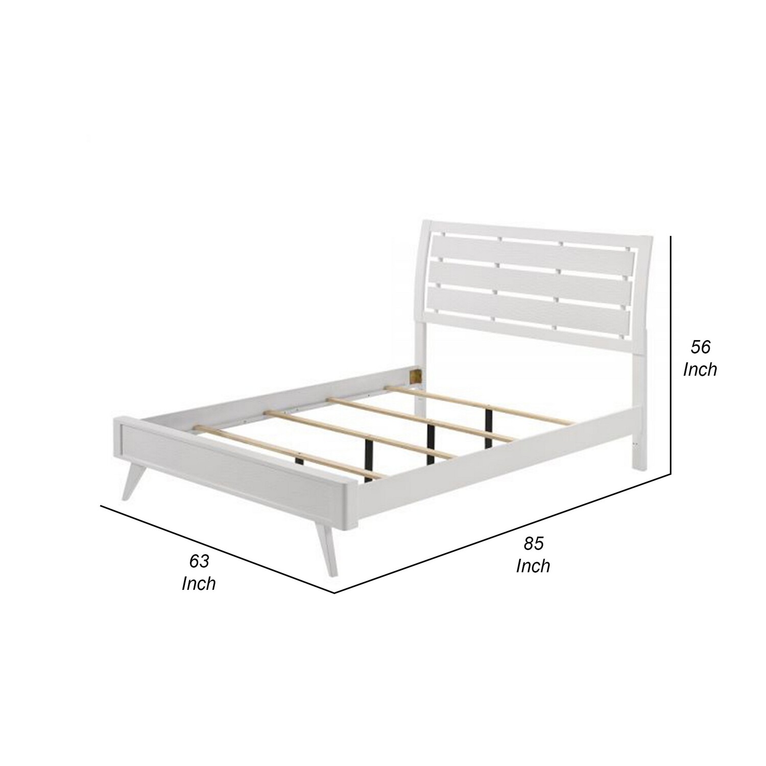 Benjara Siam Classic Rubberwood Slatted Panel Headboard Size Bed, White - Queen Size