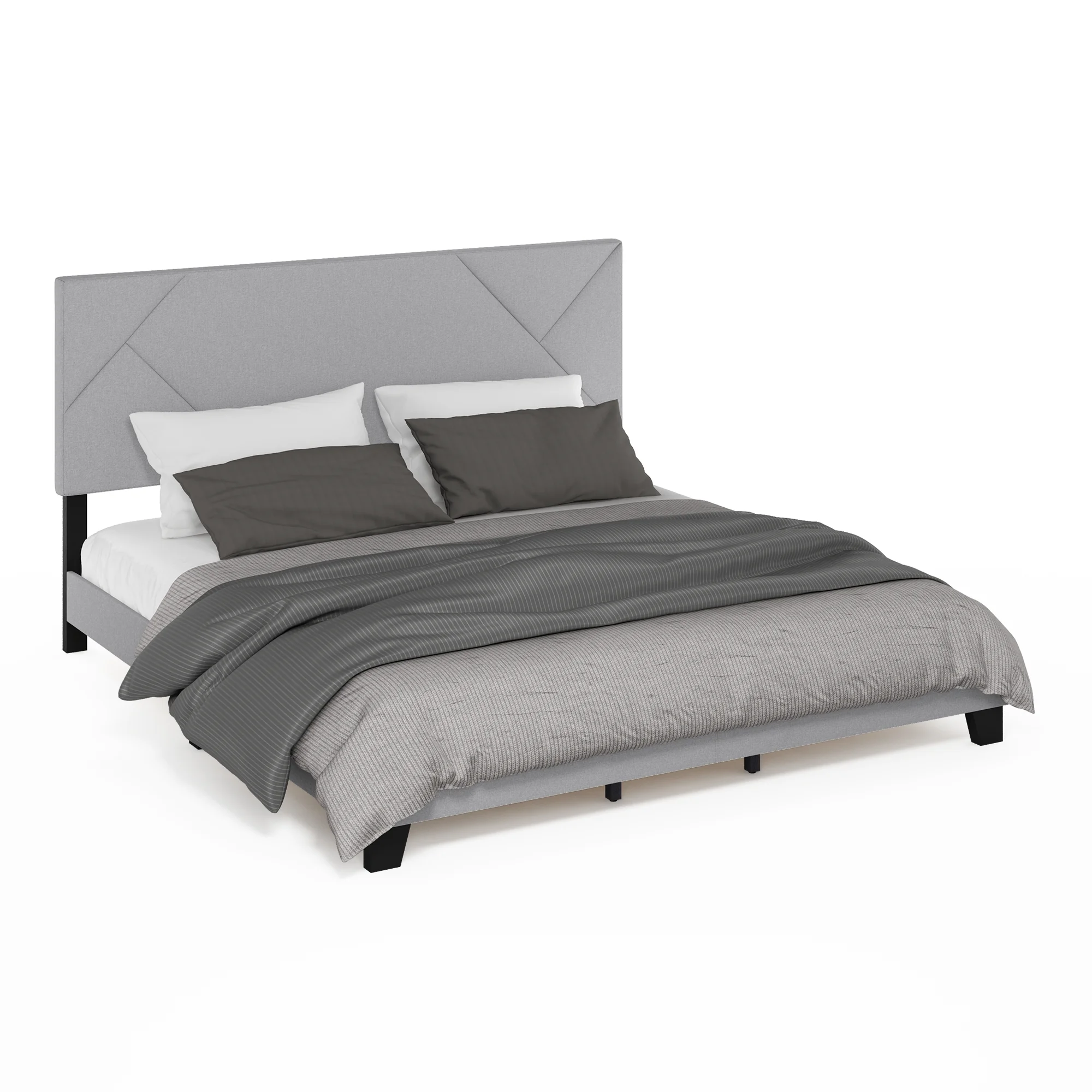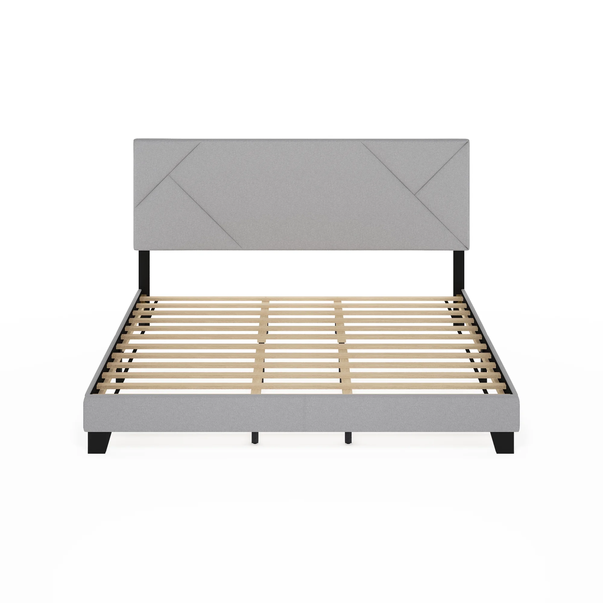Furinno Skylar Geometric Design Headboard Bedframe, 12PC Slat Style, Glacier, King