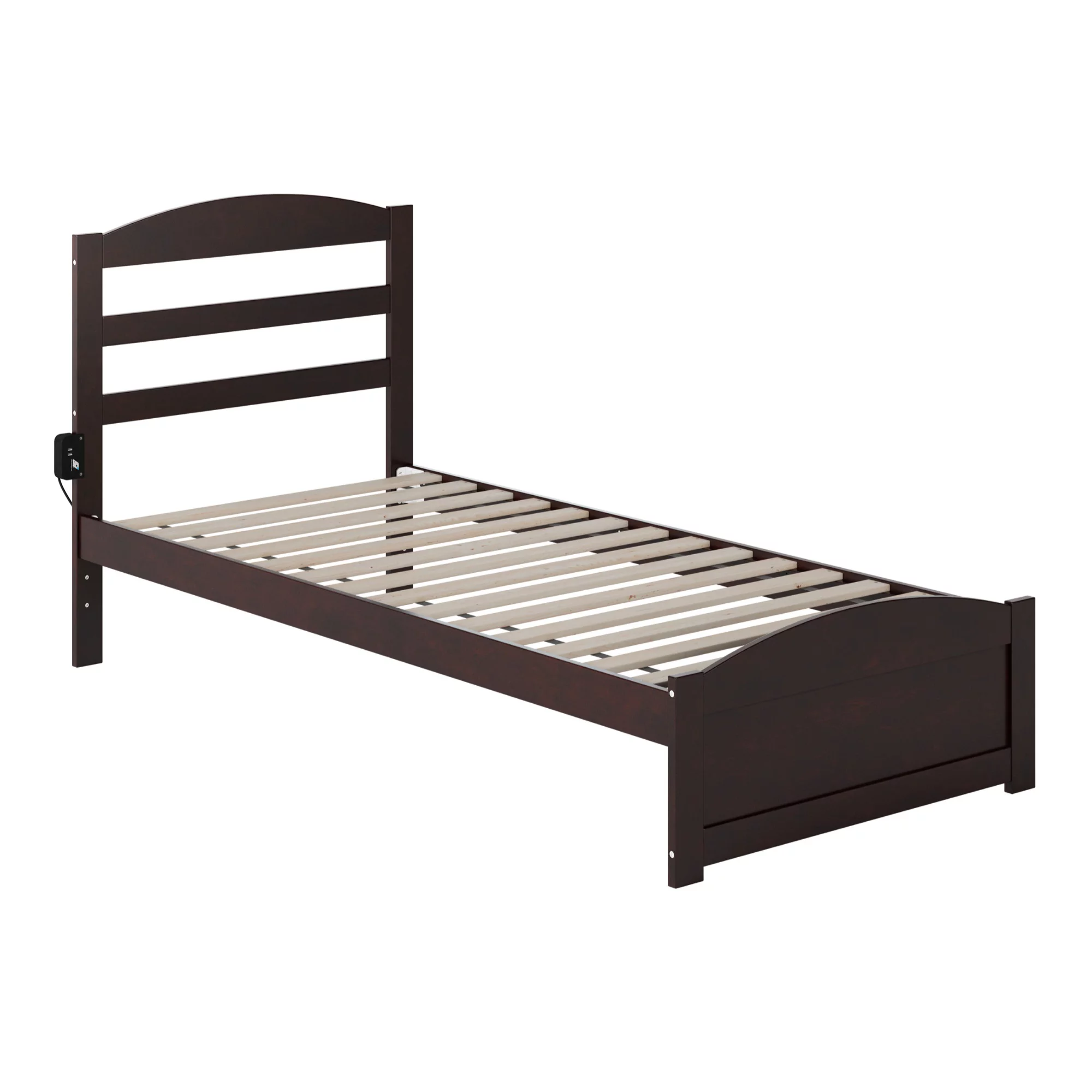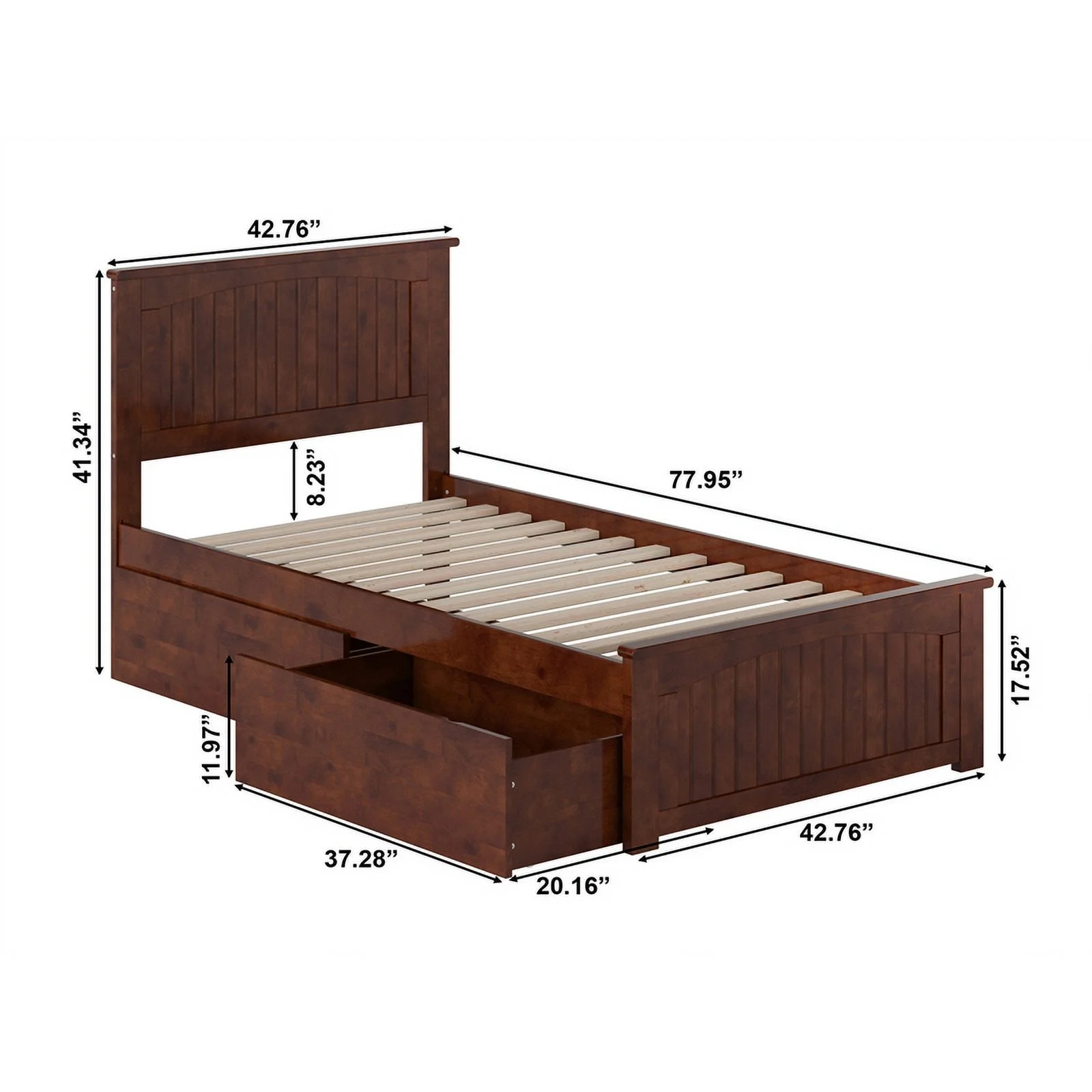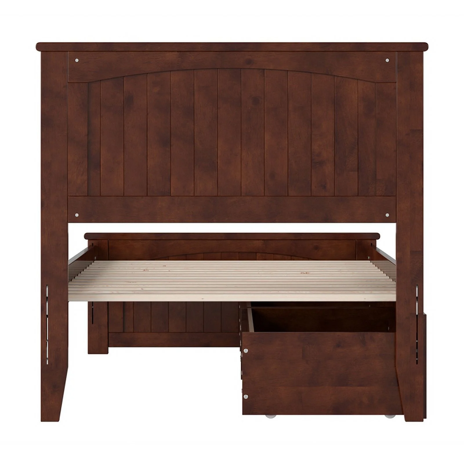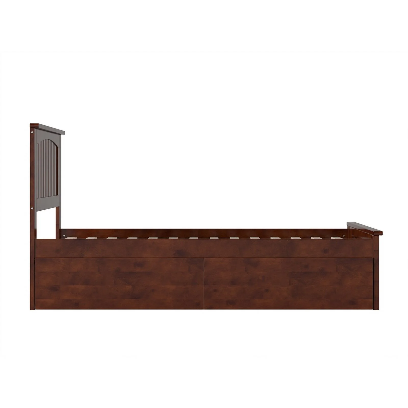 Nantucket Twin Wood Platform Bed with Matching Footboard and Drawers in Walnut