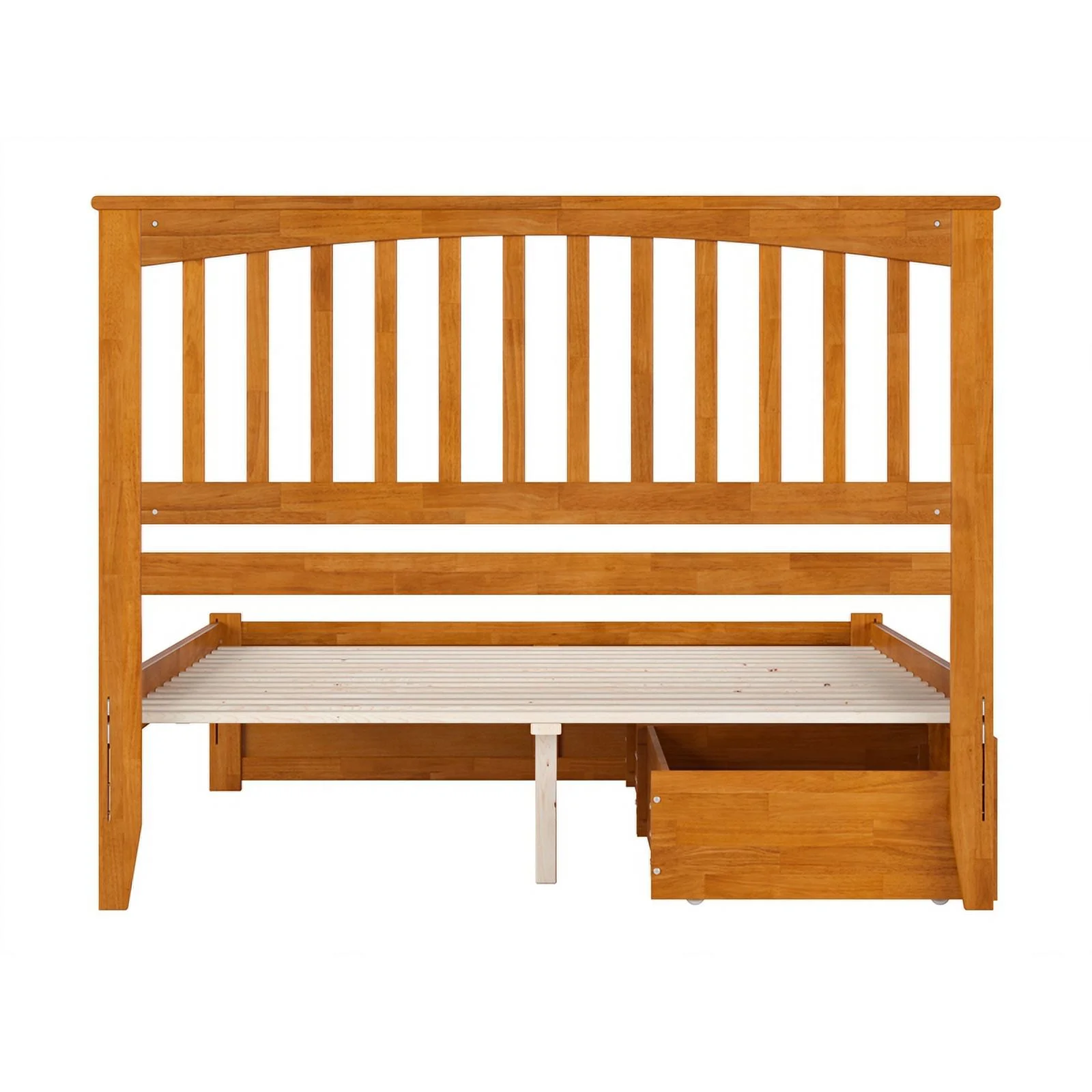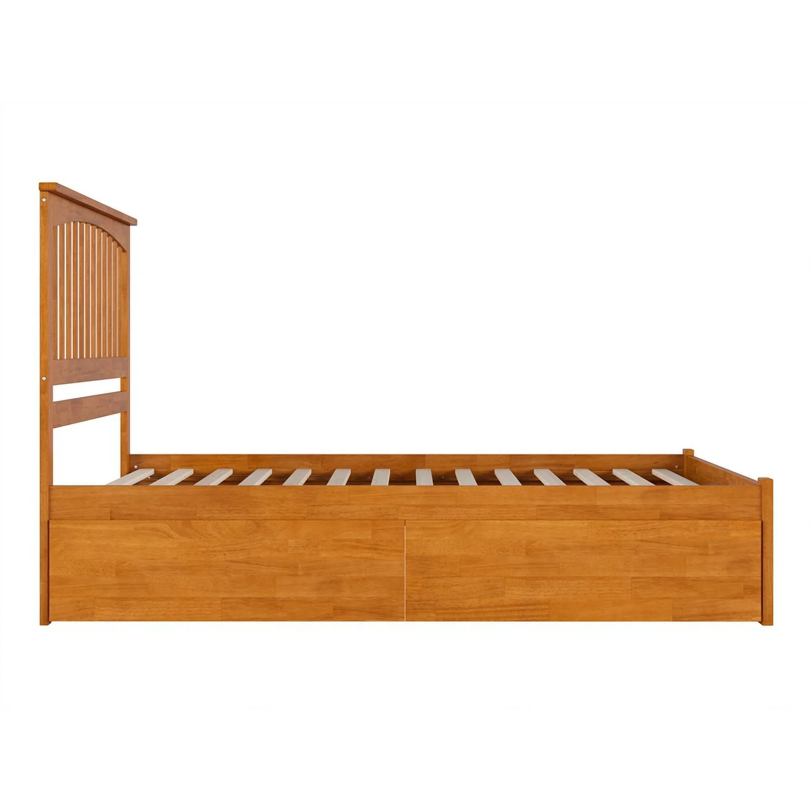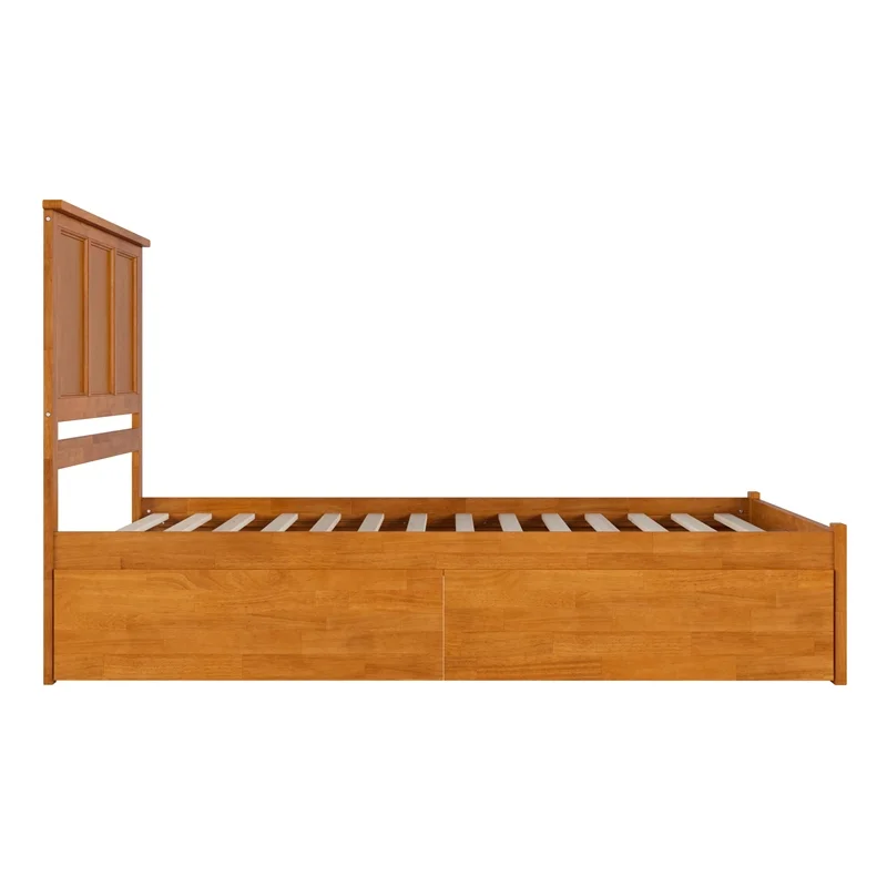 Mission Queen Wood Platform Bed with Footboard and Drawers in Light Toffee