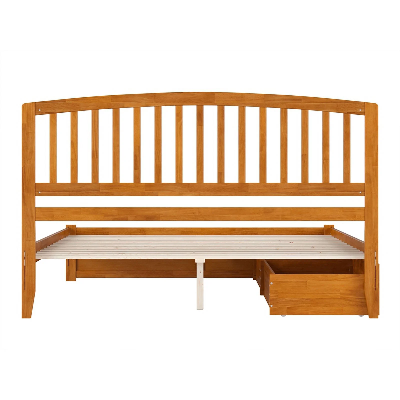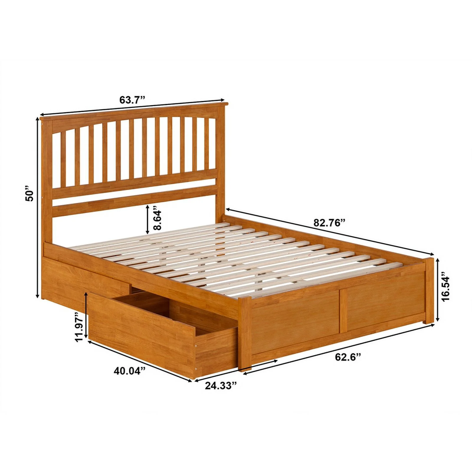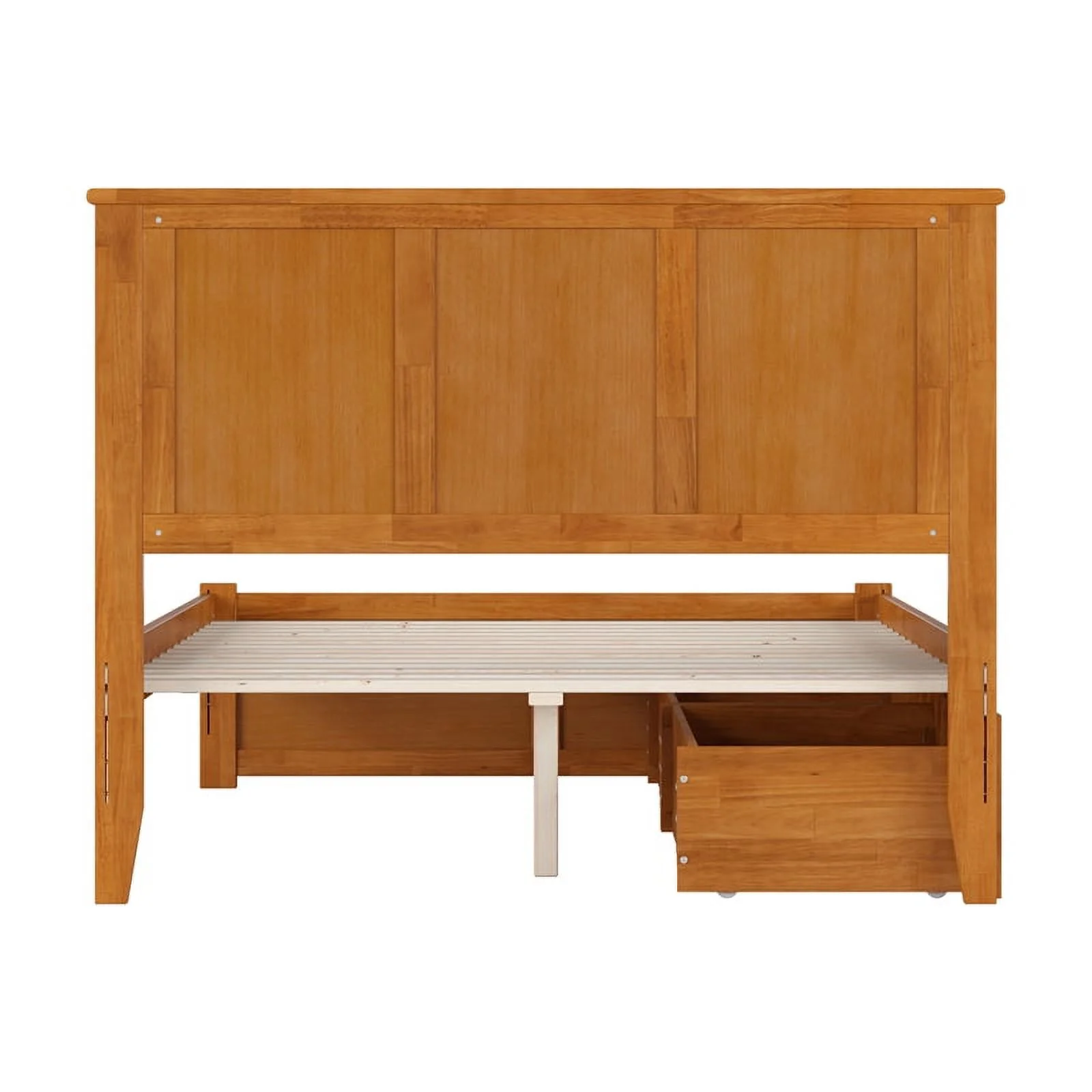 Mission Queen Wood Platform Bed with Footboard and Drawers in Light Toffee